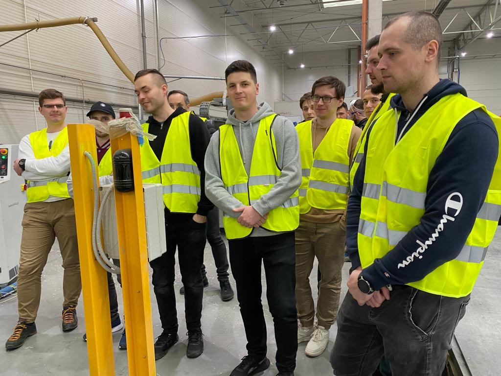 W trakcie wizyty studenci mieli okazję zobaczyć, jak wygląda proces produkcji urządzeń z przeznaczeniem na place zabaw – od projektu do realizacji, testowania gotowych już urządzeń oraz logistyki dostaw i montażu. Firma Buglo zaprezentowała studentom park maszynowy, halę produkcyjną, dział projektowy i magazyny. Wśród urządzeń znajduje się między innymi największa w Europie giętarka do rur.