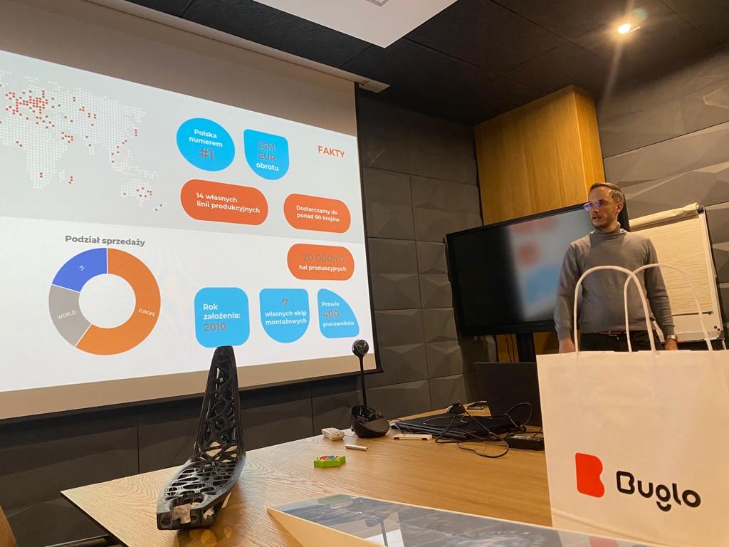 Koszalińską firmę Buglo odwiedzili w poniedziałek studenci Mechatroniki Wydziału Mechanicznego Politechniki Koszalińskiej, którym towarzyszył prorektor ds. studenckich dr. hab. inż. Tomasz Królikowski, prof. PK, kierownik Centrum Druku 3D Politechniki Koszalińskiej.