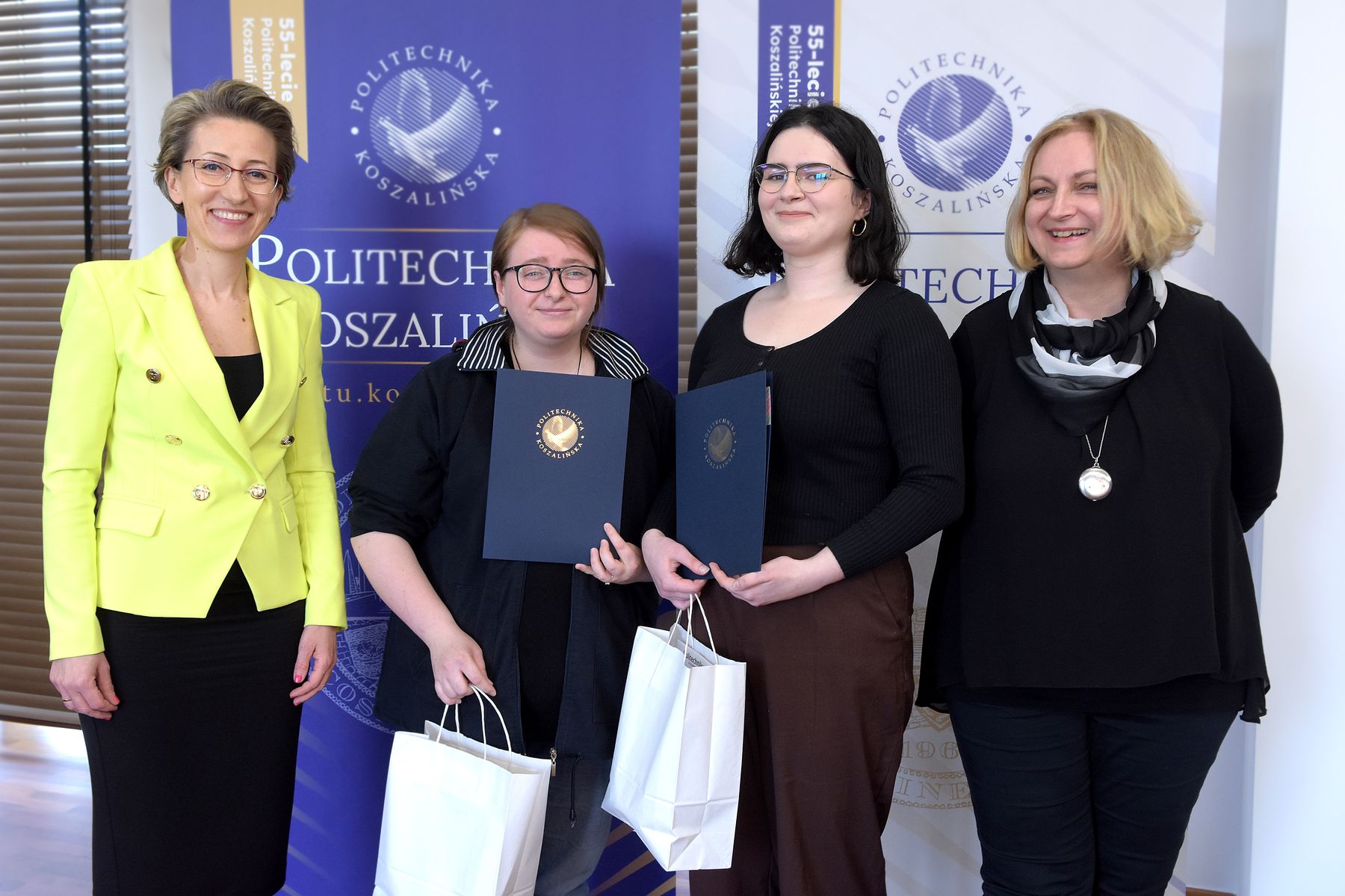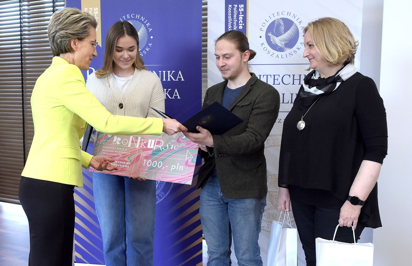 Studentki i studenci Wydziału Architektury i Wzornictwa Politechniki Koszalińskiej (WAiW) mogli sprawdzić swoje umiejętności twórcze. Zadaniem konkursowym „Zmontuj reels’a!” było stworzenie krótkiego filmu promocyjnego typu reels (rolka) o WAiW. Przy ocenie prac jury konkursu brało pod uwagę walory estetyczne, oryginalność oraz pomysłowość. 17 maja br. poznaliśmy laureatki i lauretaów konkursu. Nagrody wręczyły: rektor Politechniki Koszalińskiej dr hab. Danuta Zawadzka, prof. PK, dziekan Wydziału Architektury i Wzornictwa dr hab. Katarzyna Radecka, prof. PK i prodziekan ds. kształcenia dr Aleksandra Gołdyn-Witkowska.