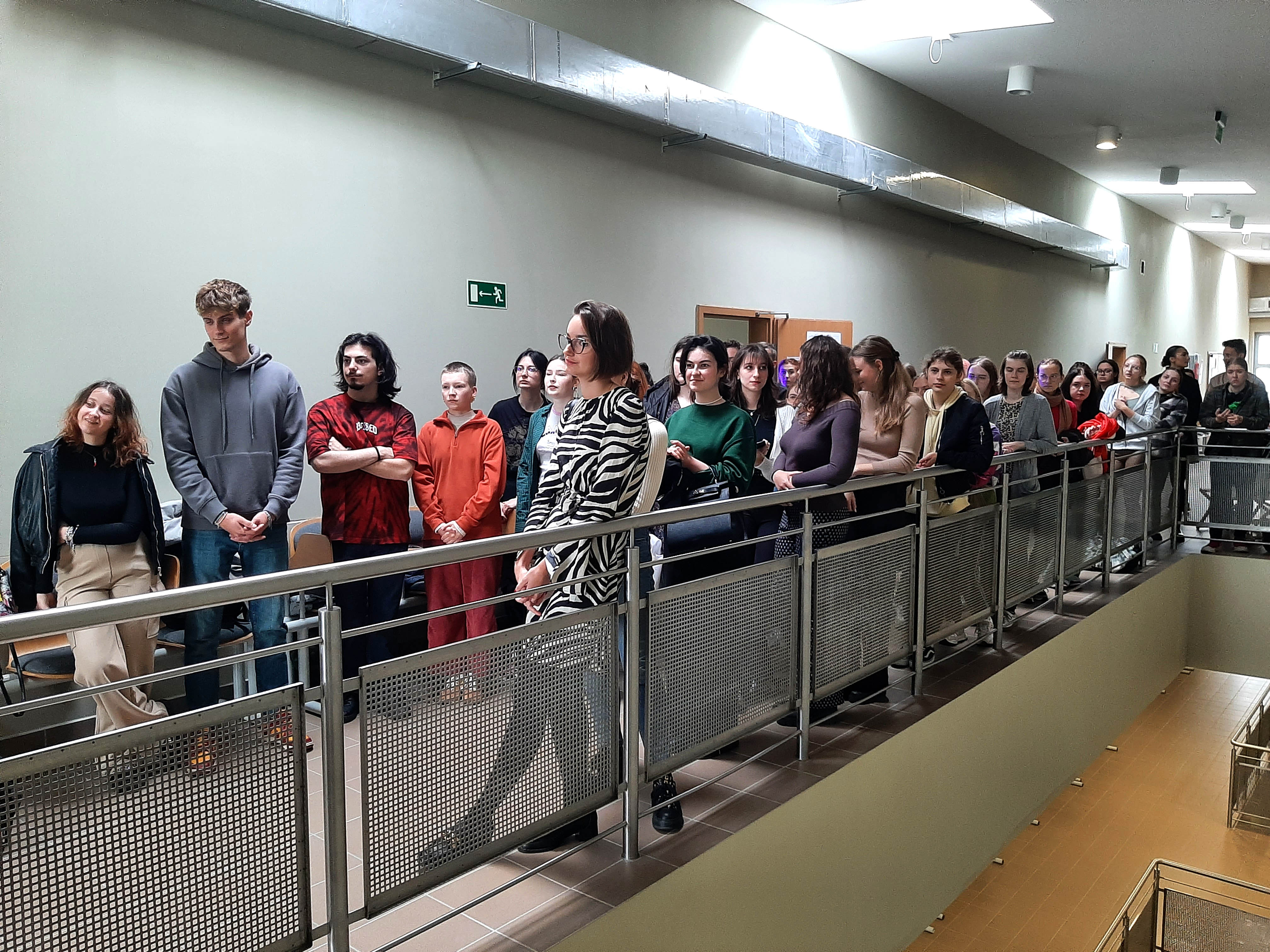 – Spotkaliśmy się, aby przywitać nowo przyjętych studentów i oswoić wejście w życie akademickie – podkreśliła prof. Katarzyna Radecka. – Dla nas wszystkich jest to szczególna chwila, ponieważ spotkanie odbywa się w naszej nowej siedzibie. Nowo przyjęci studenci mieli okazję obejrzeć specjalnie przygotowany na tę okazję film autorstwa Jolanty Kwarciak – Osiak, asystentki w Katedrze Architektury Wnętrz.