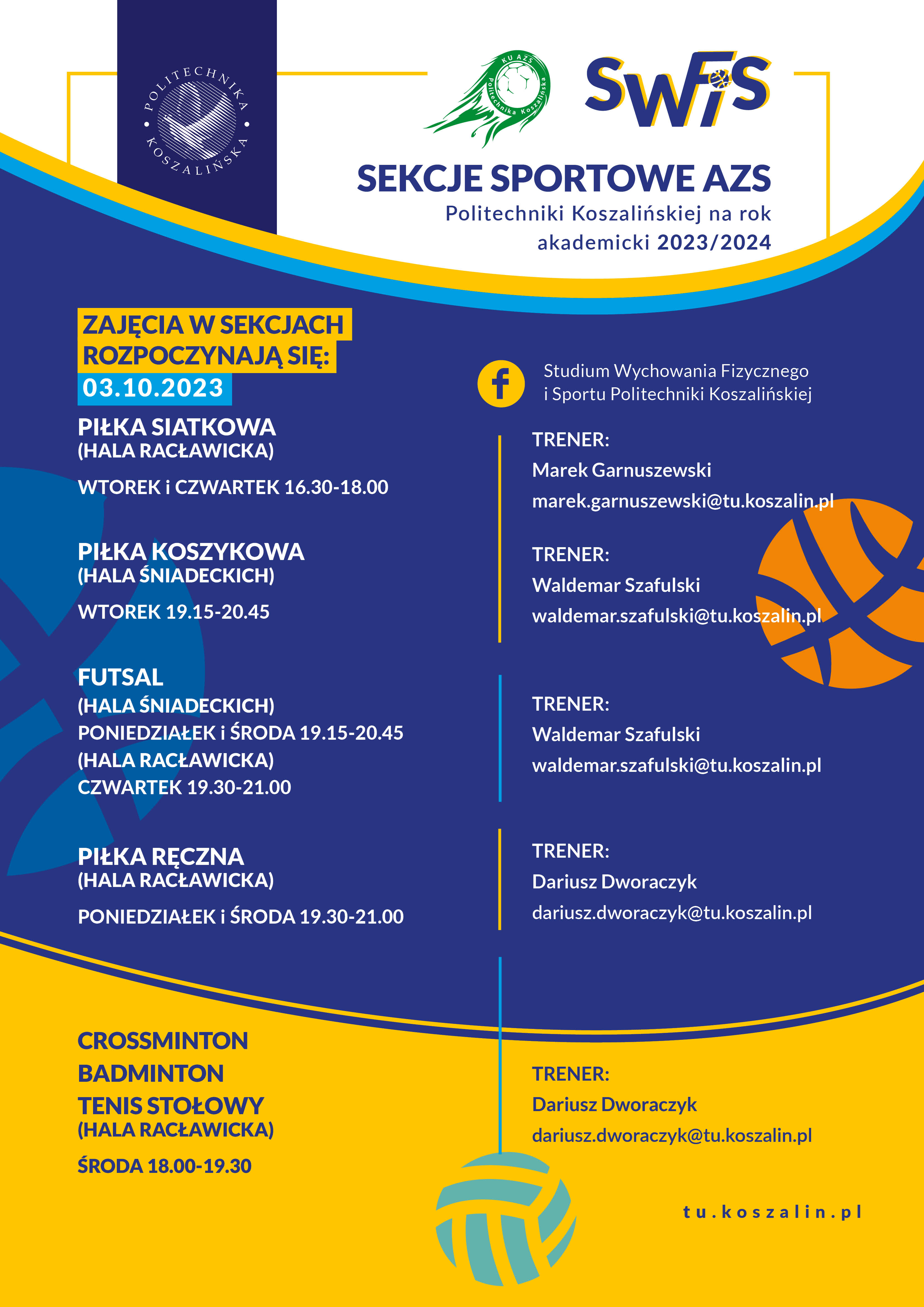 Sekcje sportowe KU AZS PK i Studium Wychowania Fizycznego i Sportu