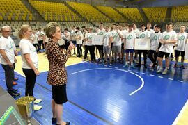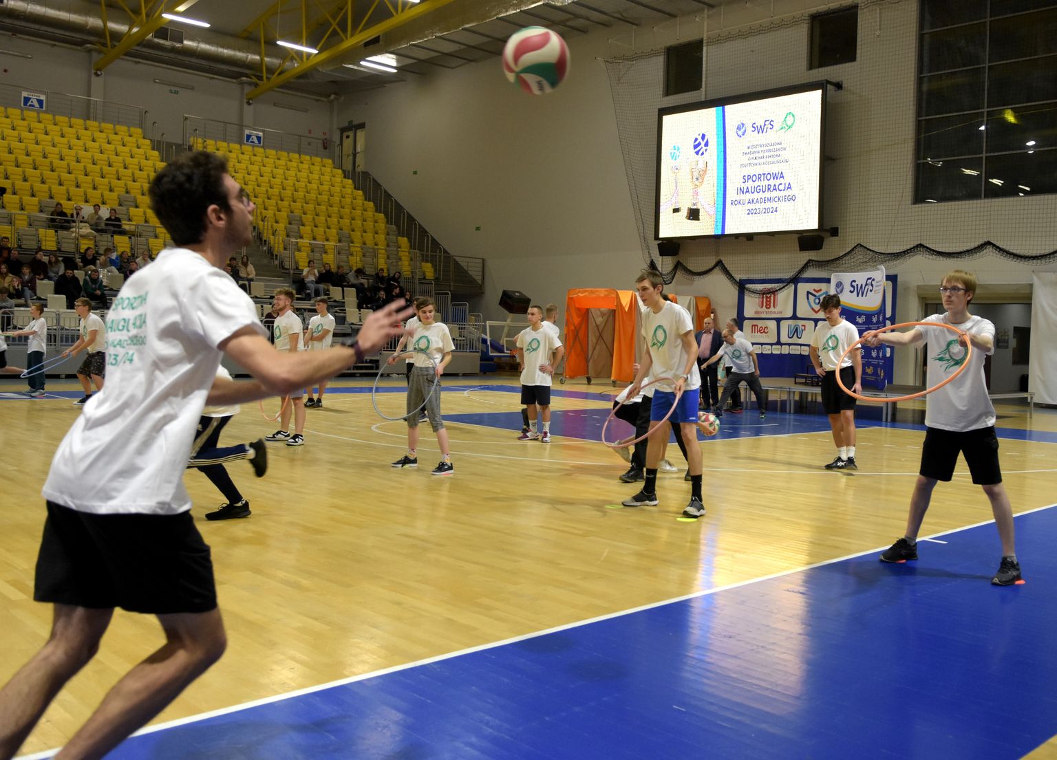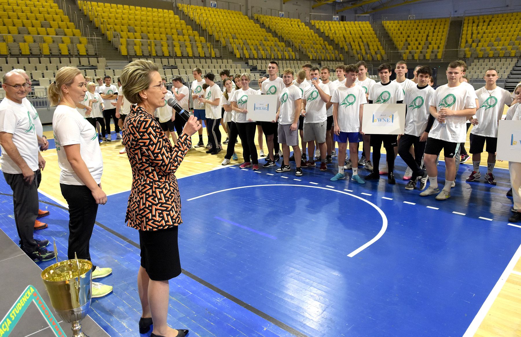 Tradycyjna Sportowa Inauguracja Roku Akademickiego 2023/2024, czyli międzywydziałowe zmagania o Przechodni Puchar Rektora, zorganizowano dzisiaj (15 listopada br.) w Hali Widowiskowo-Sportowej w Koszalinie. Zgromadzonych na sali uczestników i kibiców powitali: rektor dr hab. Danuta Zawadzka, prof. PK oraz prorektor ds. studenckich dr hab. inż. Tomasz Królikowski, prof. PK.
