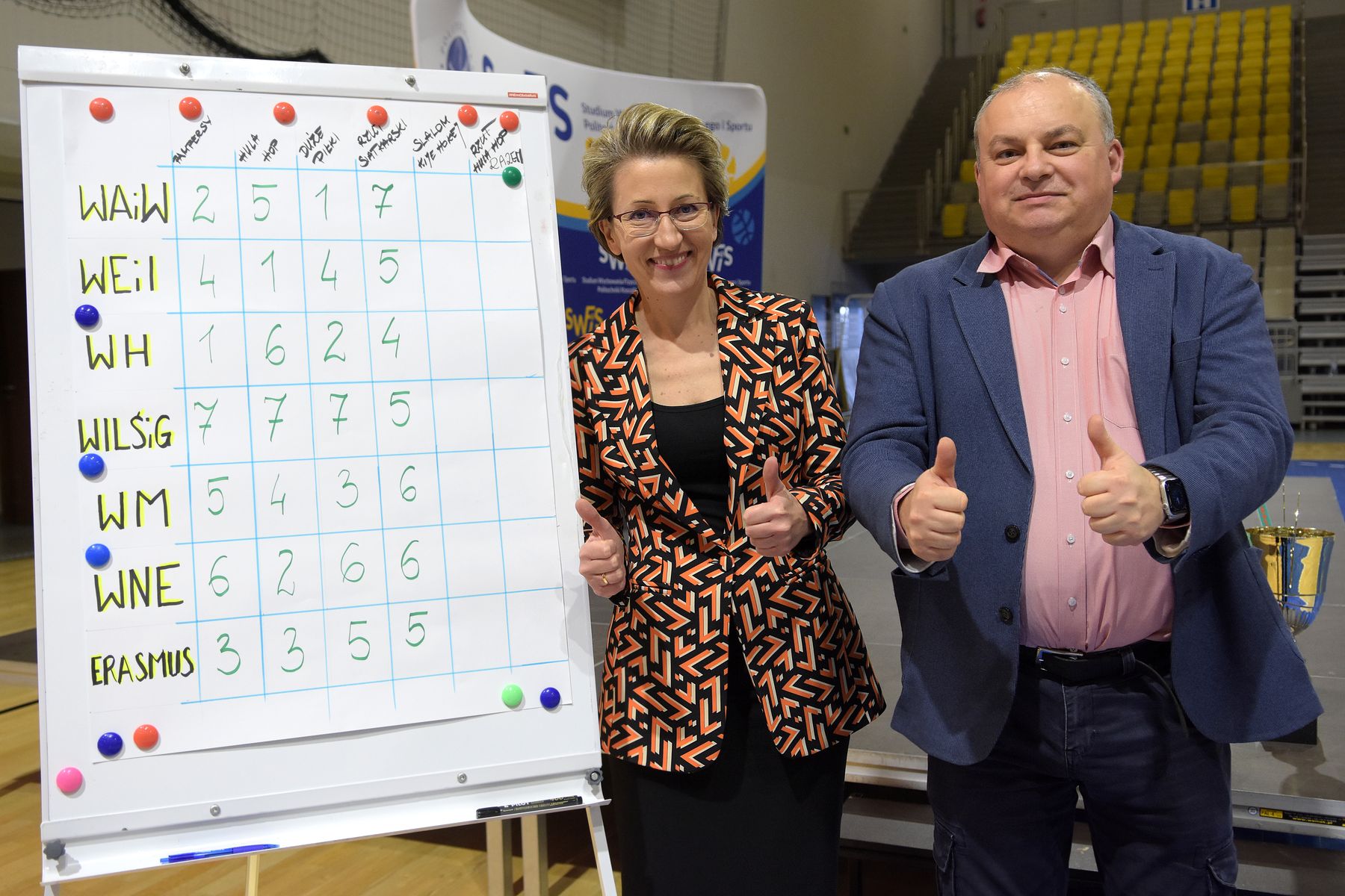 Ostatecznie puchar otrzymała reprezentacja Wydziału Inżynierii Lądowej, Środowiska i Geodezji. Zwycięzcy zebrali w sumie 32 punkty. – To była prawdziwa sportowa rywalizacja w duchu integracji – podkreśliła prof. Danuta Zawadzka. – Zmagania były bardzo trudne, więc dla mnie wszyscy jesteście wygranymi. W sporcie chodzi także dobrą zabawę i pozytywne emocje, a tego tutaj nie zabrakło.