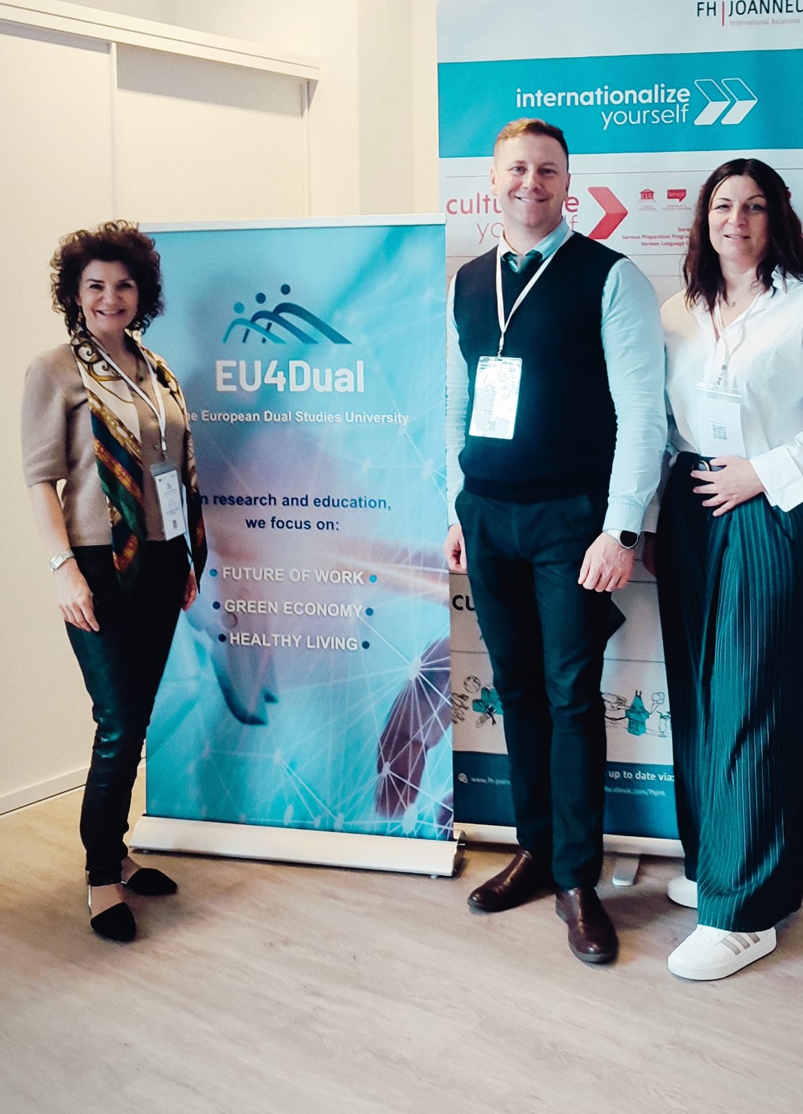 W ostatnich dniach kampus FH JOANNEUM tętnił życiem za sprawą EU4Dual Staff Week, które zgromadziło uczestników z różnych uczelni partnerskich, w ramach międzynarodowej współpracy. Wydarzenie odbyło się pod hasłem ,,Sustainability and Well- Being in the Workplace”. Spotkanie było okazją do pogłębionej refleksji nad tematami zrównoważonego rozwoju, zdrowia i dobrostanu w środowisku akademickim. Program obfitował w inspirujące wykłady, warsztaty, wizyty studyjne i przestrzeń do wymiany najlepszych praktyk.