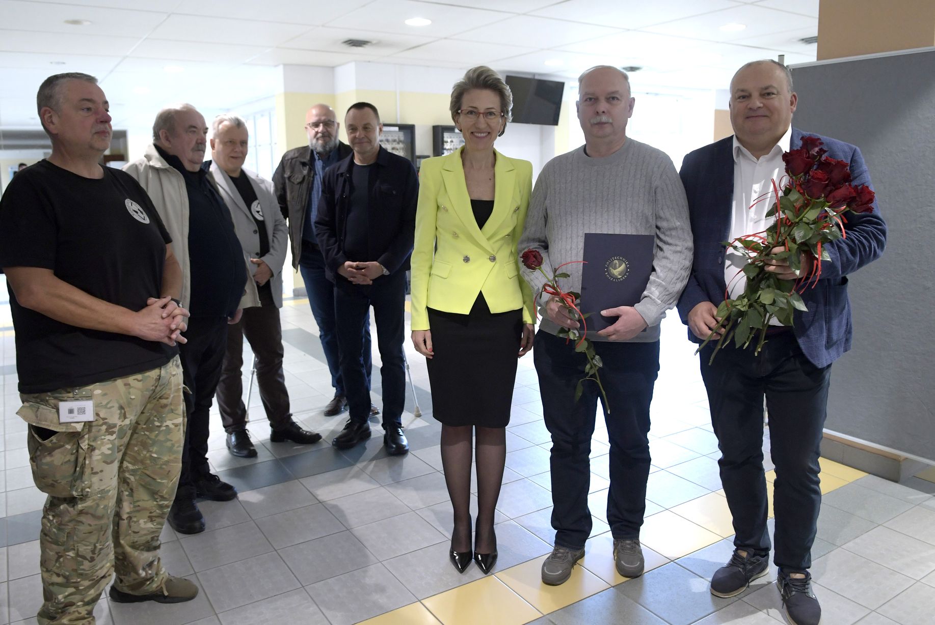 Pani Rektor, z wyrazami uznania podziękowała autorom modeli, wręczając im kwiaty jako symbol wdzięczności za pasję i wkład w przygotowanie wystawy. Podczas wernisażu skierowała także słowa podziękowania do przedstawicieli Stowarzyszenia „Perun”, doceniając owocną współpracę i zaangażowanie w kultywowanie pamięci historycznej.