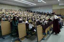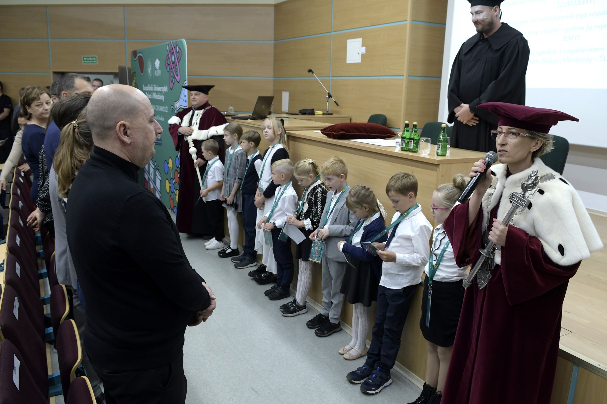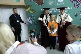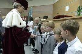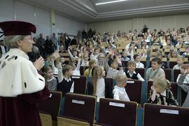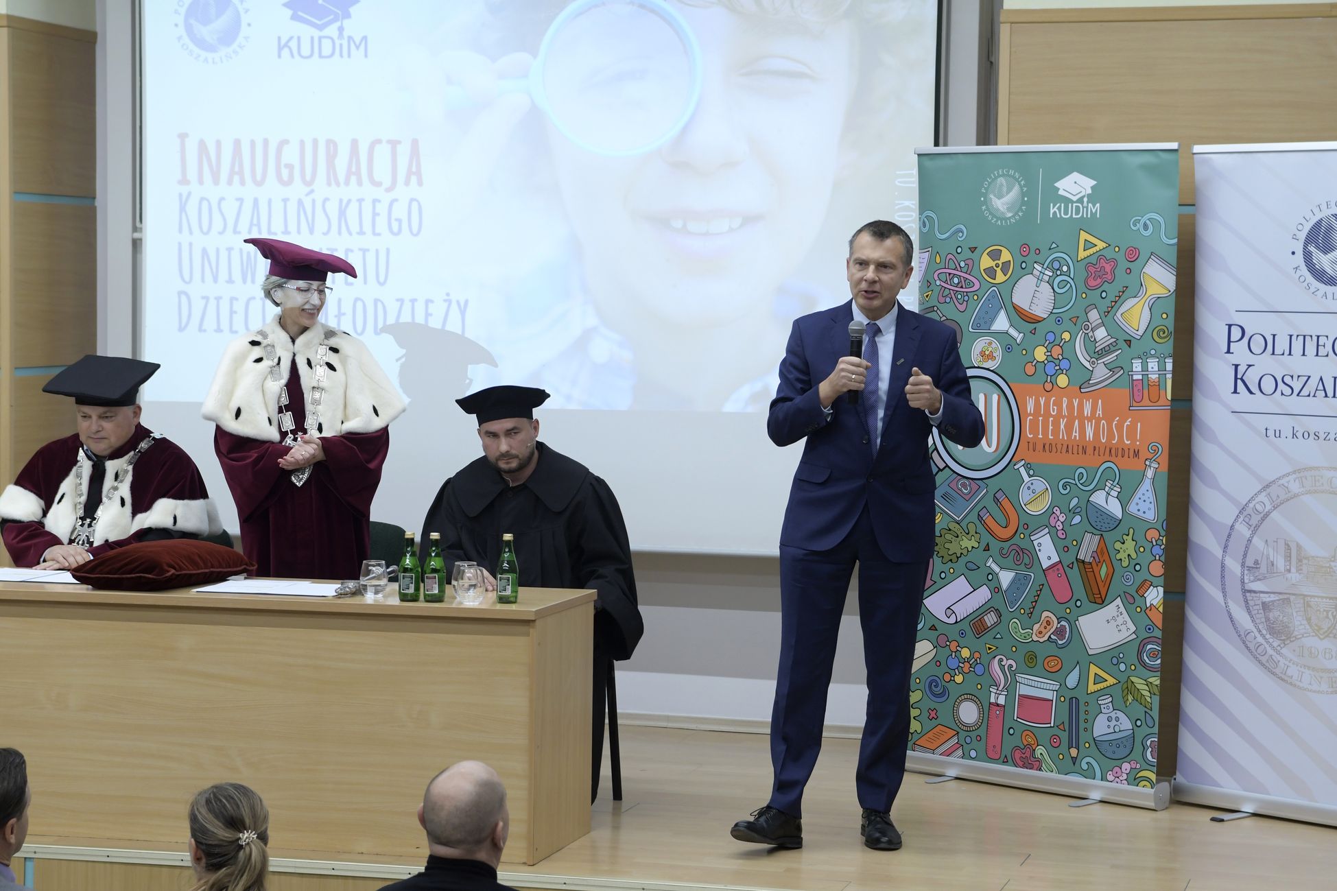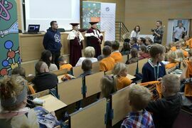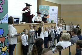 W sobotę, 4 października odbyła się inauguracja Koszalińskiego Uniwersytetu Dzieci i Młodzieży Politechniki Koszalińskiej. Dzieci w auli kampusu przy ulicy Śniadeckich przywitała dr hab. Danuta Zawadzka, prof. PK, rektor Politechniki Koszalińskiej i dr hab. inż. Tomasz Królikowski, prof. PK, prorektor ds. studenckich. Młodzież w społeczność akademicką wprowadził także dr hab. Grzegorz Przekota, prof. PK, dziekan Wydziału Nauk Ekonomicznych. Wykład na temat sportowych talentów i możliwości jakie drzemią w młodym pokoleniu przedstawił trener reprezentacji Politechniki Koszalińskiej w koszykówce, mgr Michał Sugier, podczas którego ogłosił powołanie nowego klubu koszykarskiego Politechniki Koszalińskiej TU Polibasket. Uroczystość uświetnił występ Dziecięcej Akademii Chóralnej Pomerania Cantat w Koszalinie. Chór po immatrykulacji odśpiewał hymn studencki, Gaudeamus igitur. Głównym celem Uniwersytetu jest inspirowanie młodych umysłów do odkrywania świata i rozwijania pasji w różnych dziedzinach – od nauk ścisłych, przez technikę i przyrodę, aż po sztukę i sport. Uczelnia prowadzi zajęcia w dwóch grupach wiekowych: w grupie dziecięcej (klasa I-V) i młodzieżowej (klasa VI-VIII). W roku akademickim 2025/2026 w zajęciach KUDiM-u bierze udział około 250 dzieci w wieku od 6 do 15 lat. Młodzi studenci uczestniczą w wykładach z różnych dziedzin – od biologii i chemii, przez fizykę i mechanikę. Są spotkania z ciekawymi ludźmi, warsztaty i zajęcia w laboratoriach. Od 2016 roku, dzięki wsparciu firmy Kronospan, oddział Koszalińskiego Uniwersytetu Dzieci i Młodzieży Politechniki Koszalińskiej funkcjonuje także w Szczecinku.