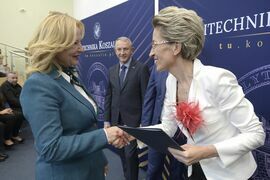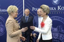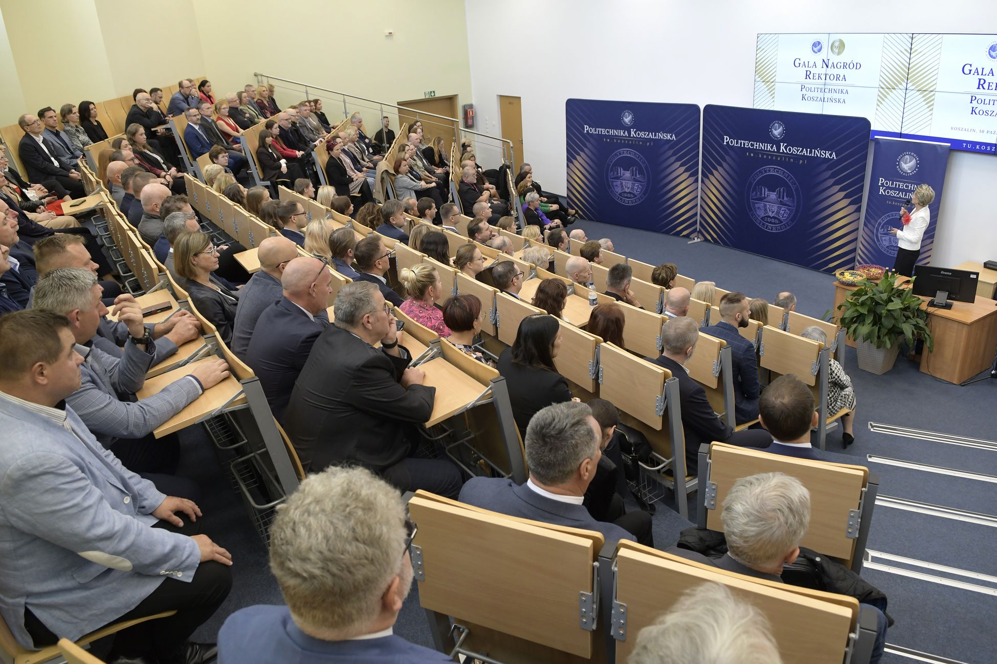 Z okazji zbliżającego się Dnia Edukacji Narodowej, w auli Politechniki Koszalińskiej na terenie kampusu przy ul. Śniadeckich obyła się Gala Nagród Rektora. Dr hab. Danuta Zawadzka, prof. PK, postanowiła uhonorować 245 pracowników Uczelni, w tym 120 nauczycieli i 125 pracowników administracji. Przyznano 99 nagród indywidualnych za tytuł, stopień, i dorobek naukowy, za wypromowanie doktorów i organizacyjne oraz 48 nagród zespołowych za, działalność dydaktyczną i osiągnięcia organizacyjne. Nagrody przyznawane w kilku kategoriach i stopniach, otrzymali wyróżniający się pracownicy. Łącznie 37,8% zatrudnionych na Politechnice Koszalińskiej. Nagrody i dyplomy w towarzystwie prorektora ds. nauki, dr hab. inż. Błażeja Bałasza, prof. PK; prorektora ds. studenckich, dr hab. inż. Tomasza Królikowskiego, prof. PK i prorektora ds. kształcenia Politechniki Koszalińskiej, dr hab. Krzysztofa Wasilewskiego, prof. PK wręczała prof. Danuta Zawadzka dziękując za wkład pracy, inicjatywy i zaangażowanie na rzecz i rozwój Politechniki Koszalińskiej.