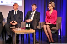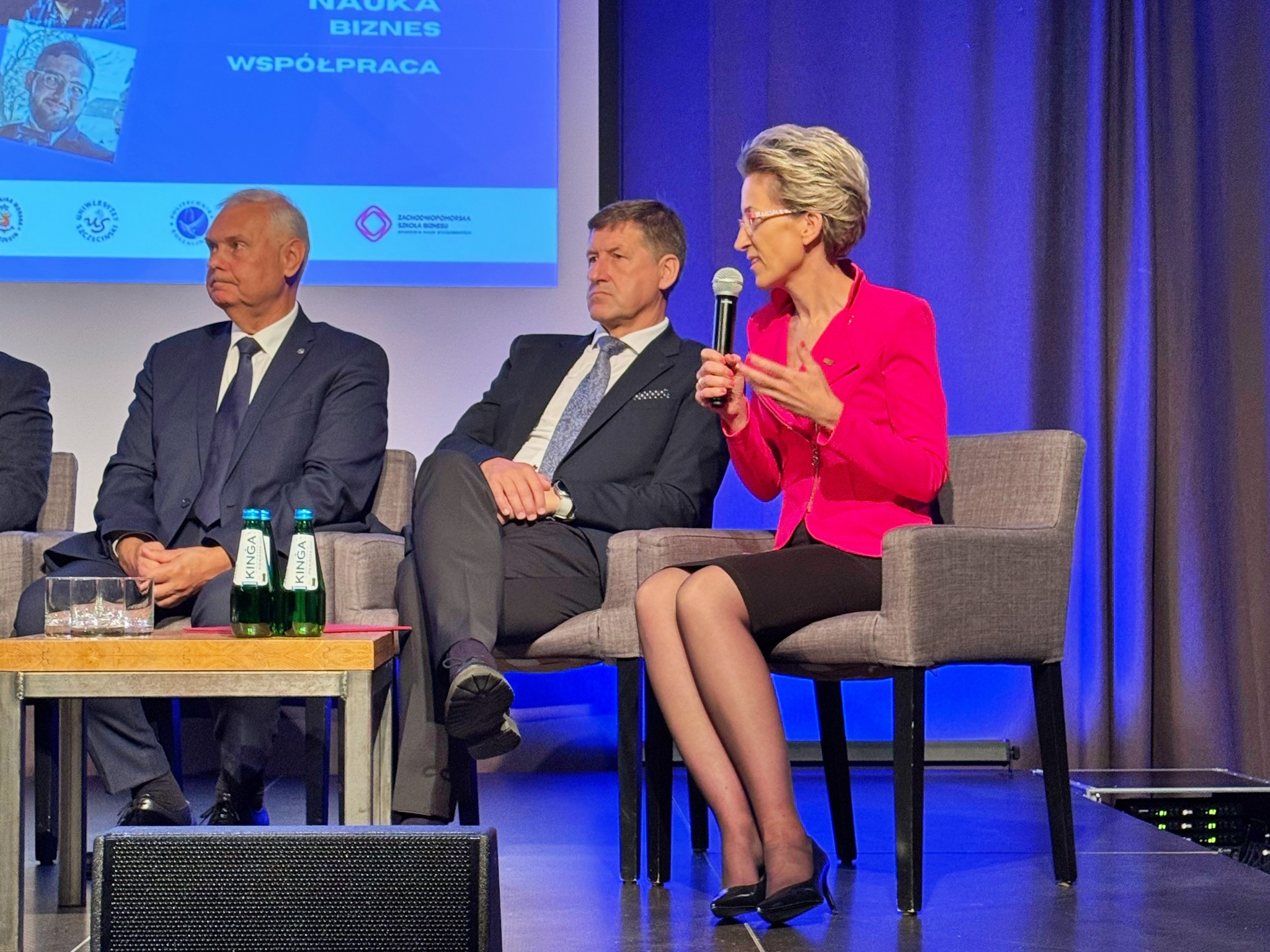 Rektor Politechniki Koszalińskiej, dr hab. Danuta Zawadzka, prof. PK wzięła udział w spotkaniu zorganizowanym przez Północną Izbę Gospodarczą na temat "Współpracy Nauki z Biznesem”. Celem wydarzenia było stworzenie przestrzeni do dialogu pomiędzy środowiskiem naukowym a przedstawicielami biznesu, by wspólnie wypracować mechanizmy skutecznej współpracy na rzecz innowacji i rozwoju Pomorza Zachodniego. Spotkanie w Szczecinie połączone było z debatą rektorska, w której uczestniczył Marcin Kulasek, minister Nauki i Szkolnictwa Wyższego i Dariusz Wieczorek - Poseł na Sejm RP. Dyskutowano m.in.: o konieczności zmian w polityce podatkowej, mających na celu zachęcenie przedsiębiorców do współpracy z uczelniami, o potrzebie rozwijania ekosystemu przedsiębiorczości i kształceniu innowatorów, o sposobach przyciągnięcia młodych do Województwa Zachodniopomorskiego i zmianach regulacji prawnych nakierowanych na wzmacnianie potencjału kształcenia poprzez budowanie interdyscyplinarnej oferty kierunków studiów kilku uczelni. W spotkaniu uczestniczył również Przewodniczący Polskiej Komisji Akredytacyjnej - Prof. Janusz Uriasz