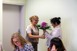 W wydarzeniu uczestniczyło liczne grono osób, które chciały wspólnie celebrować ten moment. W spotkaniu udział wzięła rektor Politechniki Koszalińskiej, dr hab. Danuta Zawadzka, prof. PK, która złożyła pani Halinie najlepsze życzenia.