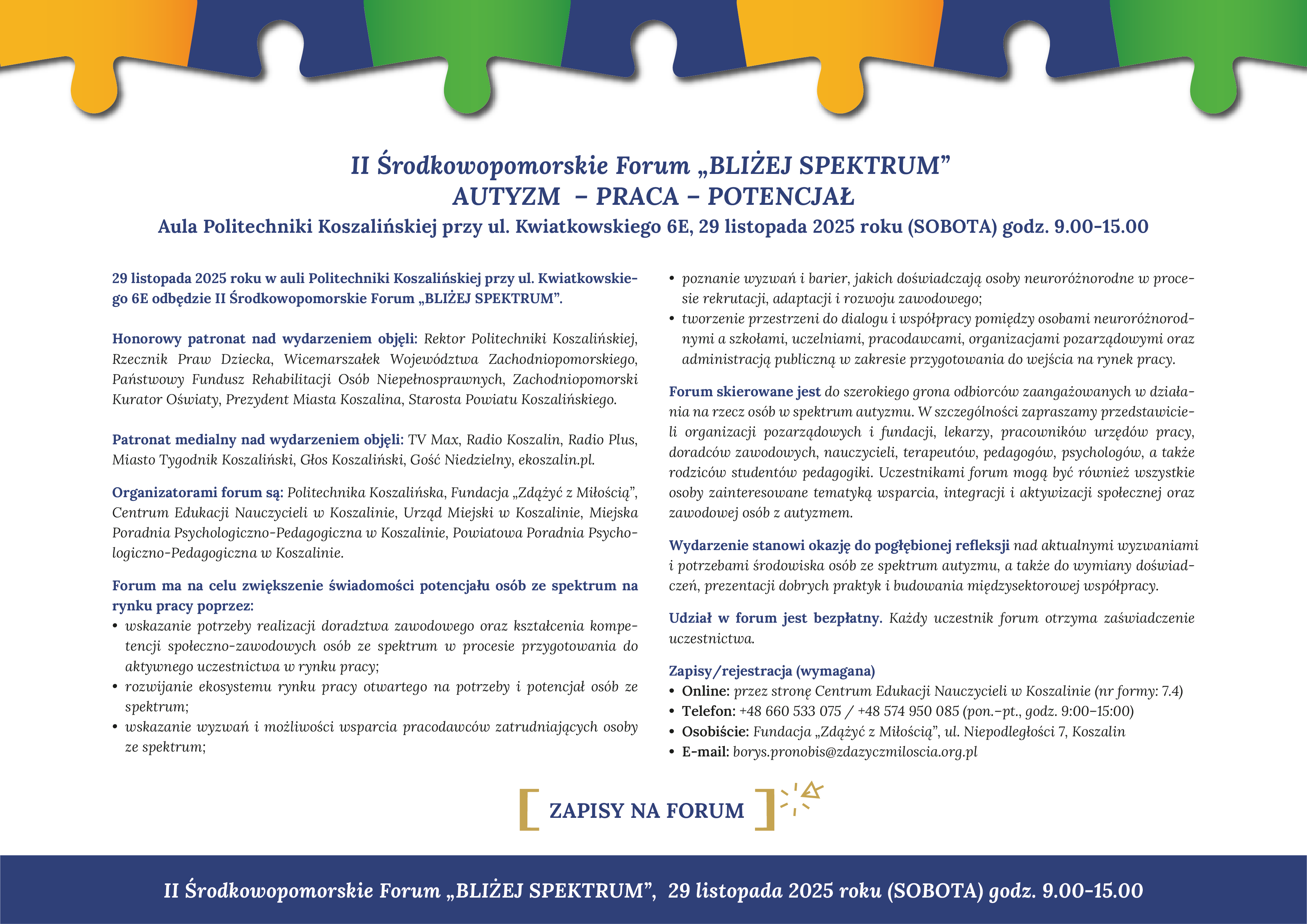 II Środkowopomorskie Forum "BLIŻEJ SPEKTRUM" - AUTYZM - PRACA - POTENCJAŁ