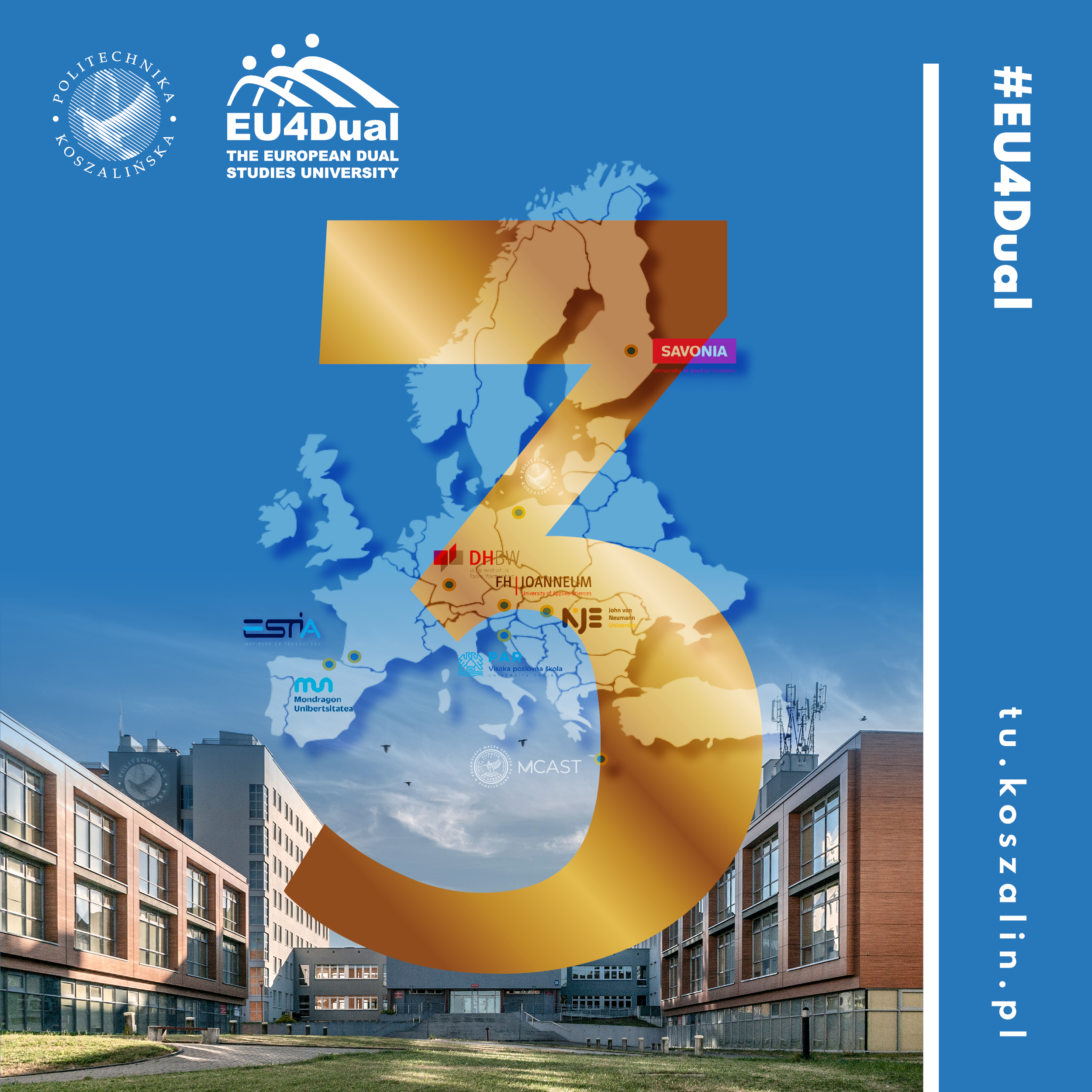 EU4Dual stawia na ścisłą współpracę środowiska akademickiego z przemysłem, wykorzystanie najnowszych technologii oraz rozwój zrównoważonej gospodarki. Politechnika Koszalińska, jako członek konsorcjum, współtworzy programy studiów, prowadzi badania i wymienia doświadczenia z uczelniami partnerskimi z takich krajów jak Hiszpania, Francja, Niemcy, Austria, Węgry, Chorwacja, Finlandia czy Malta.