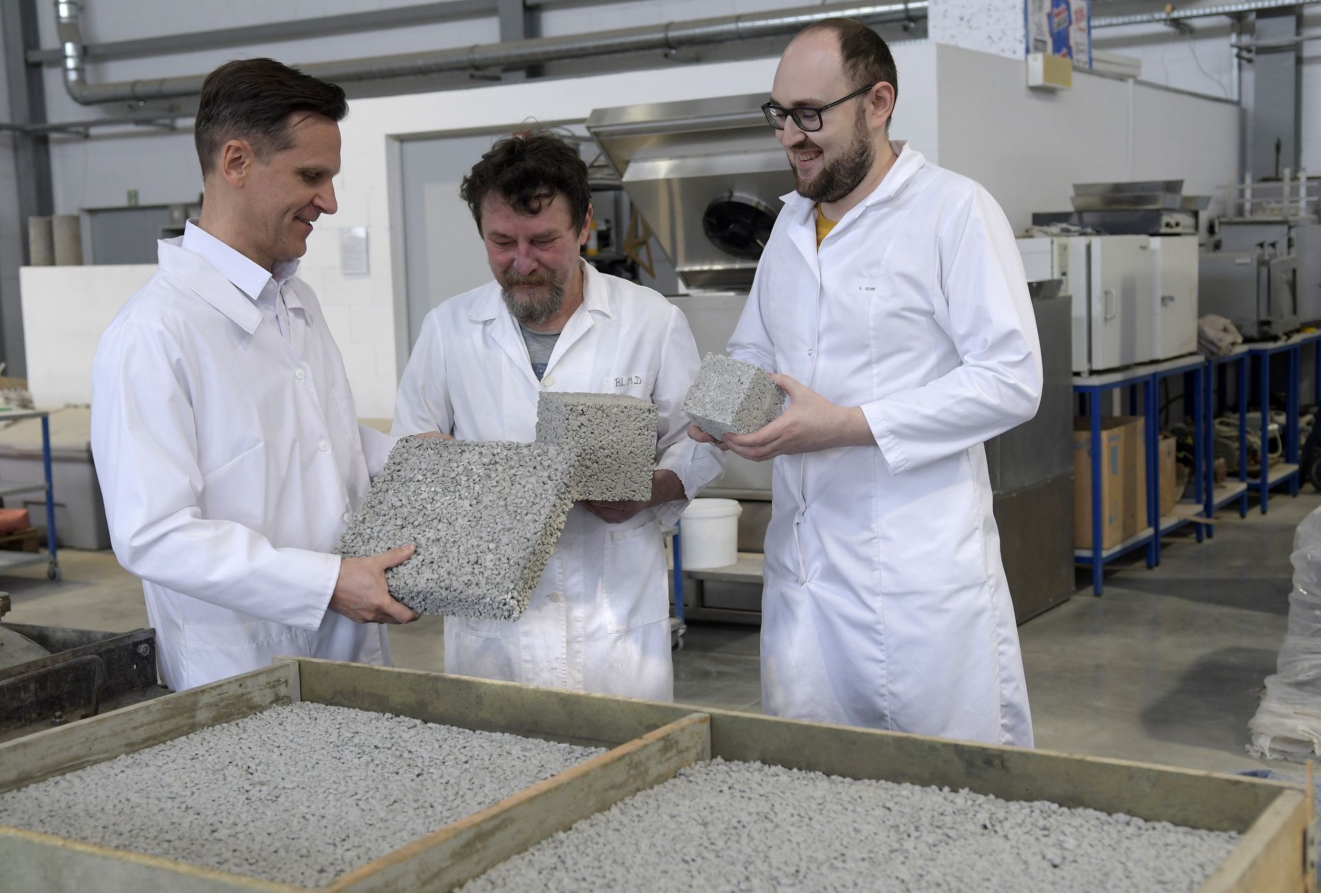 Przypomnijmy, że prace badawcze są prowadzone dwutorowo. W ramach realizowanego od początku października 2025 r. projektu badawczego opracowywane są receptury kompozytu cementowego, który będzie używany do produkcji lekkich posadzek budowlanych. W przypadku tego materiału ważne są właściwości izolacyjne i wytrzymałość na obciążenia statyczne i dynamiczne.