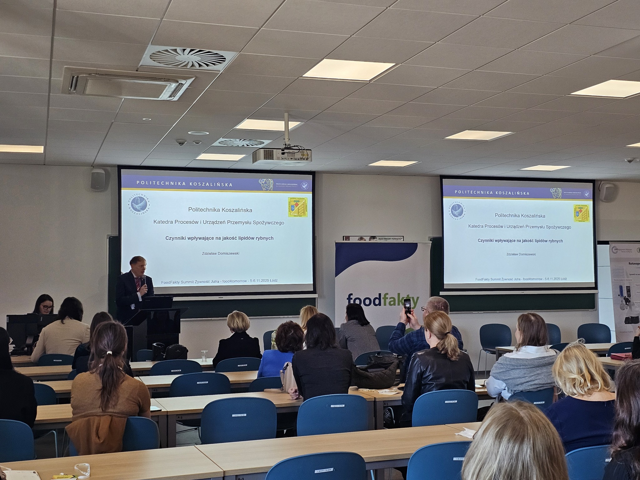 Listopad jest aktywnym miesiącem dla kierunku Technologia Żywności i Żywienie Człowieka. W dniach 5-6 listopada 2025 roku, pracownicy Katedry Procesów i Urządzeń Przemysłu Spożywczego Wydziału Inżynierii Mechanicznej i Energetyki Politechniki Koszalińskiej w osobach: dr hab. inż. Joanna Piepiórka-Stepuk, prof. PK, dr hab. inż. Iwona Michalska-Pożoga, prof. PK, dr hab. inż. Zdzisław Domiszewski, prof. PK, dr inż. Sylwia Mierzejewska oraz dr inż. Monika Sterczyńska, uczestniczyli w konferencji łączącej biznes z nauką, FoodFakty SUMMIT Żywność Jutra – Food4Tomorrow w Alchemium na Politechnice Łódzkiej.