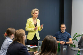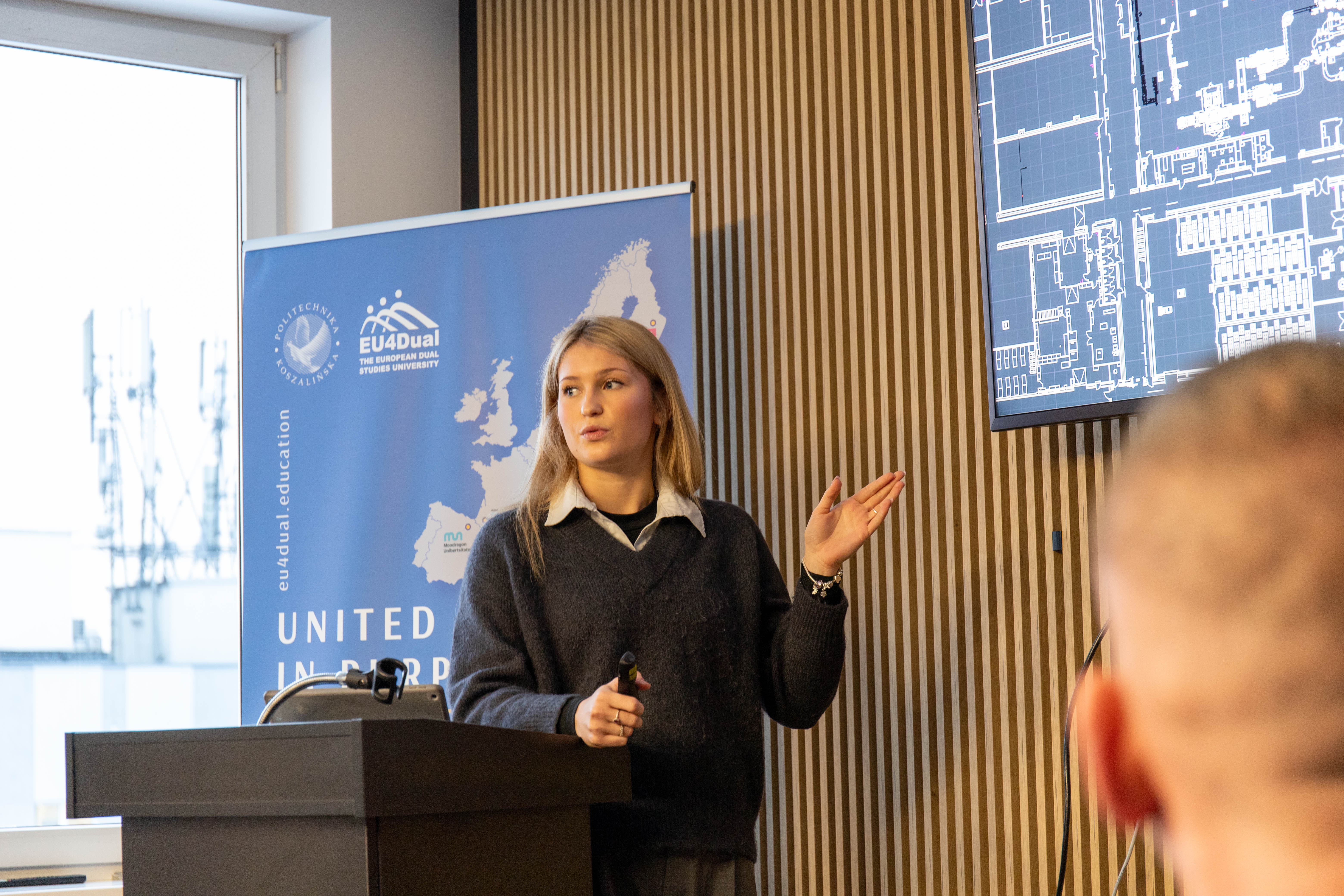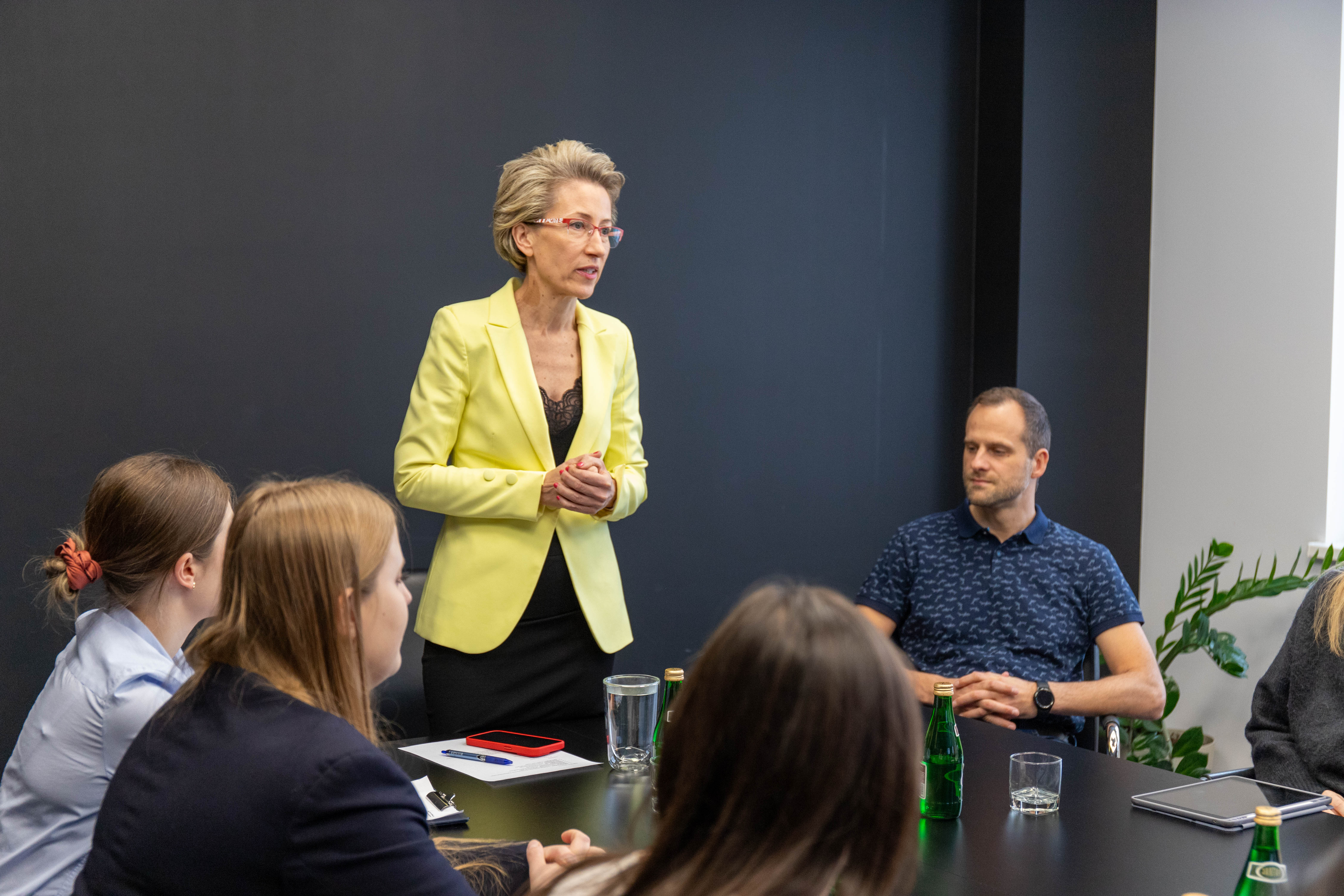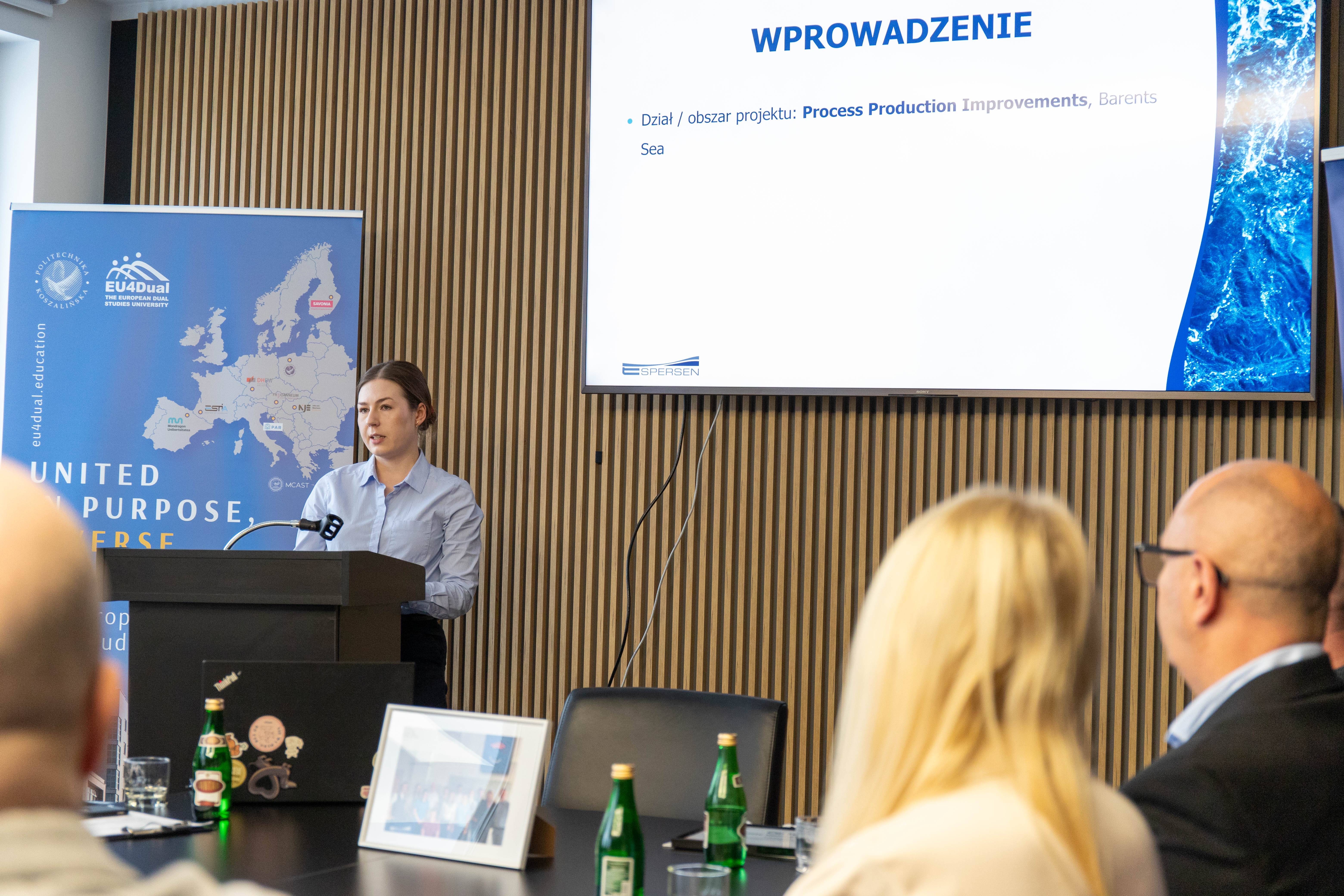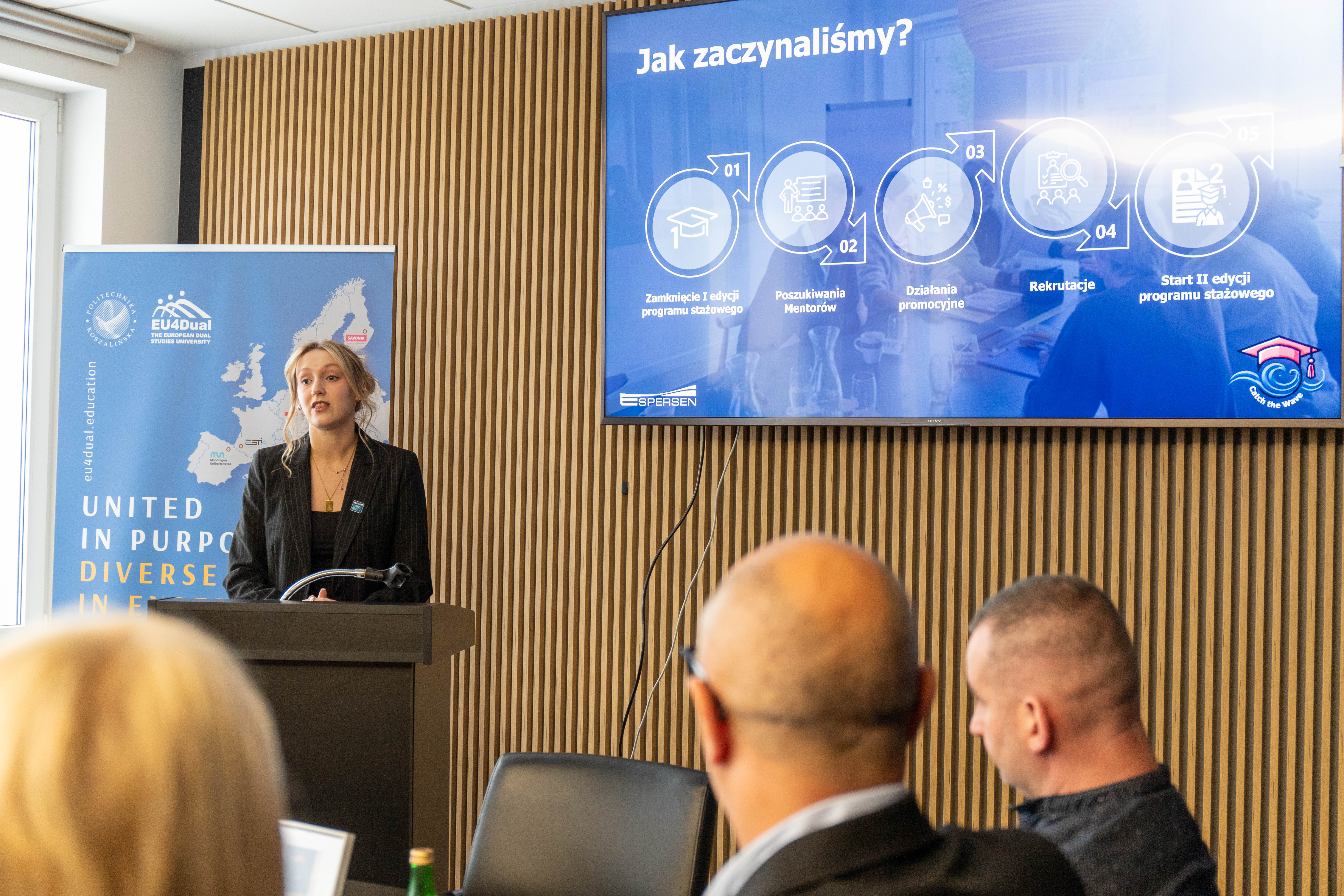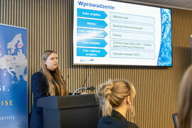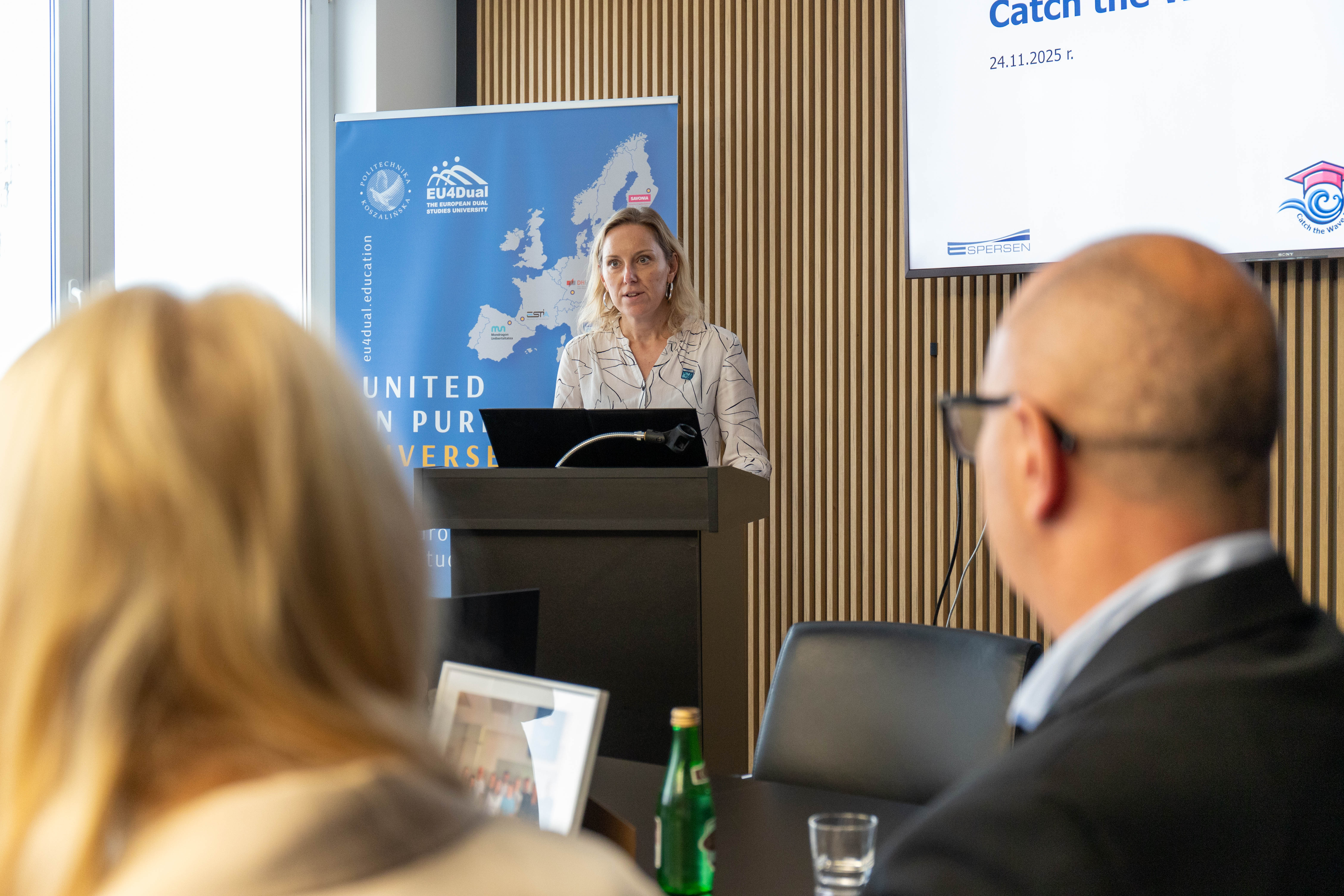 Prof. Danuta Zawadzka pogratulowała studentom zaangażowania i zaznaczyła: „Jest to bardzo bliskie mi spotkanie, ponieważ nadaje się do pokazywania jako „dobre praktyki”. Jest to swoisty program talentowy, gdzie studenci rozwiązują realne problemy w firmie. Uważam, że trzeba uwierzyć w pokolenie „Z”, bo doświadczenia które zdobyli, z pewnością zaprocentują. Zdecydowanie pokazujemy ten i inne projekty stażowe podczas spotkań w ramach sojuszu EU4Dual".