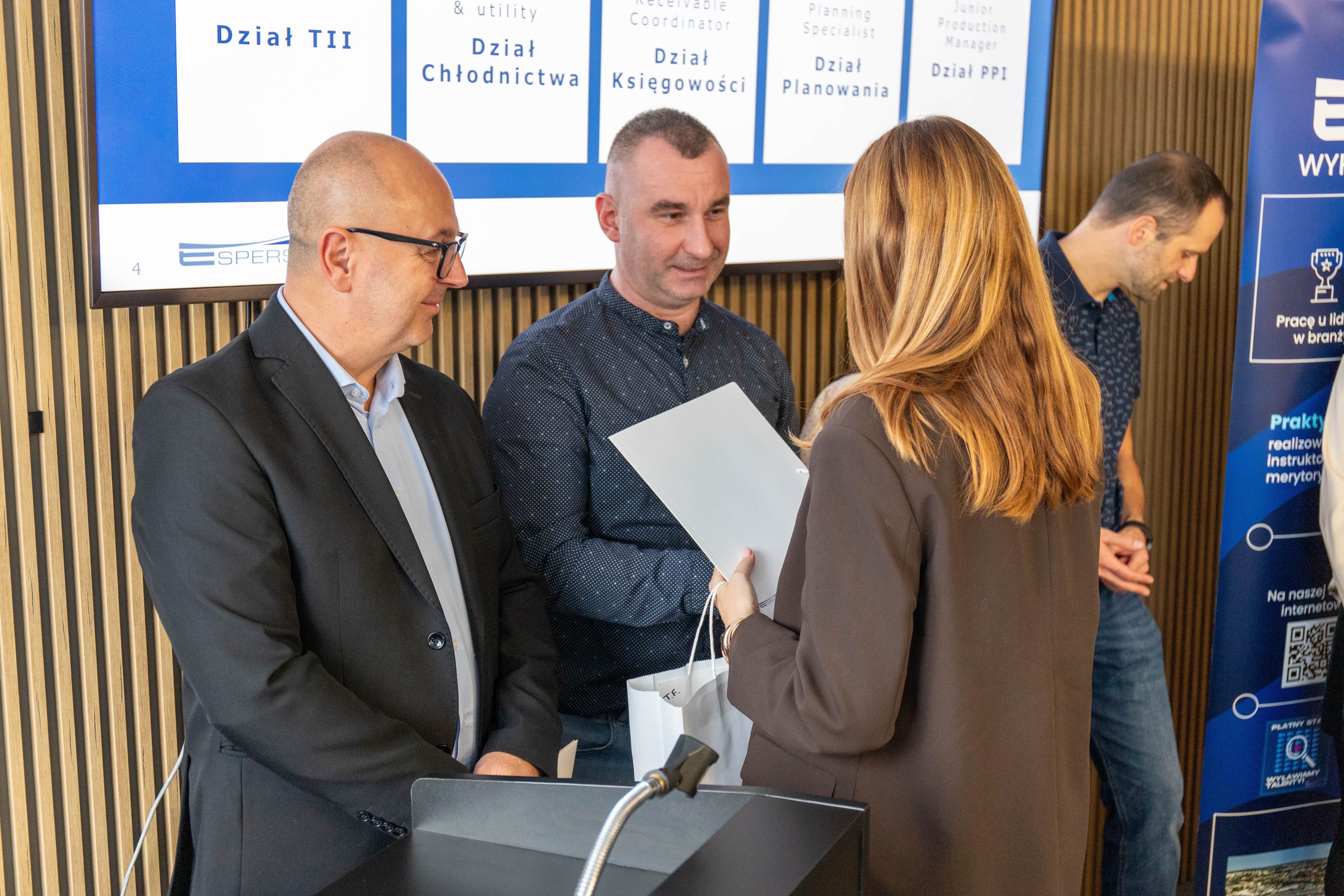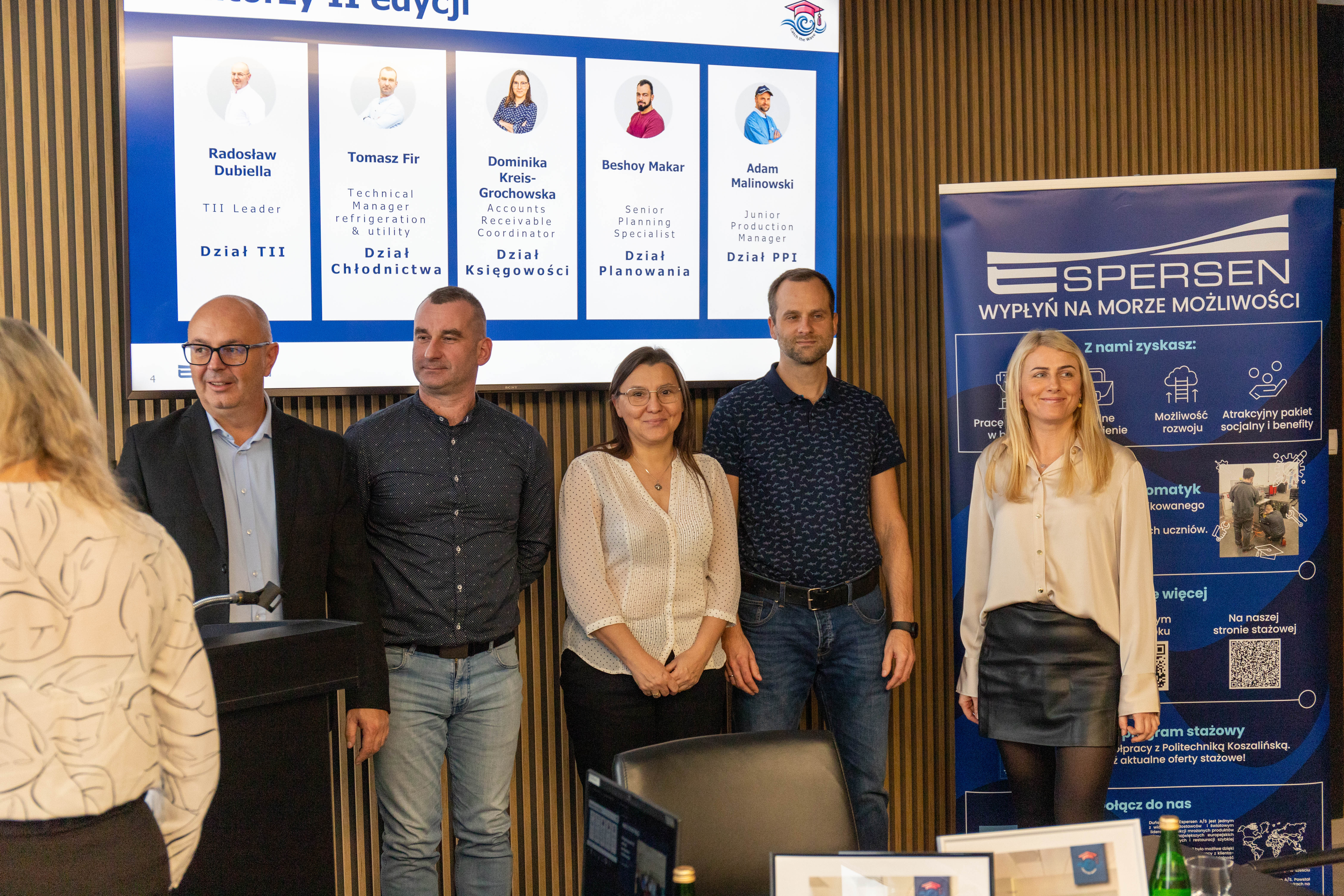 Espersen reprezentowali mentorzy: Radosław Dubiella, Technology Introduction and Improvements implementation Leader; Tomasz Fir, Technical Manager Refrigeration & Utility; Dominika Kreis-Grochowska, Accounts Receivable Coordinator; Adam Malinowski, Junior Production Manager i Joanna Kaszycka, Process Improvement Specialist . W szkoleniach studentów brali też udział Beshoy Makar, Senior Planning Specialist i Agata Długosz, Project Team Leader.