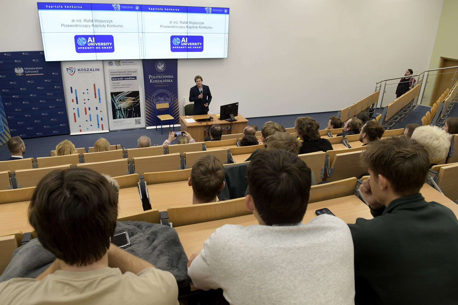 W piątek, 28 listopada w auli 202I, kampusu przy ul. Śniadeckich miało miejsce rozdanie nagród w konkursie AI UNIVERSITY # PROMPT-ME-SMART.