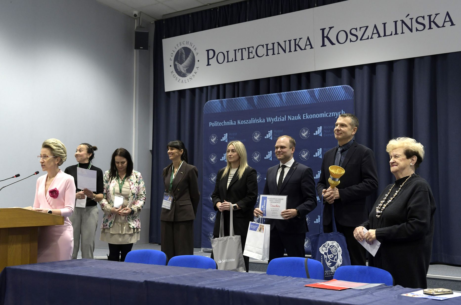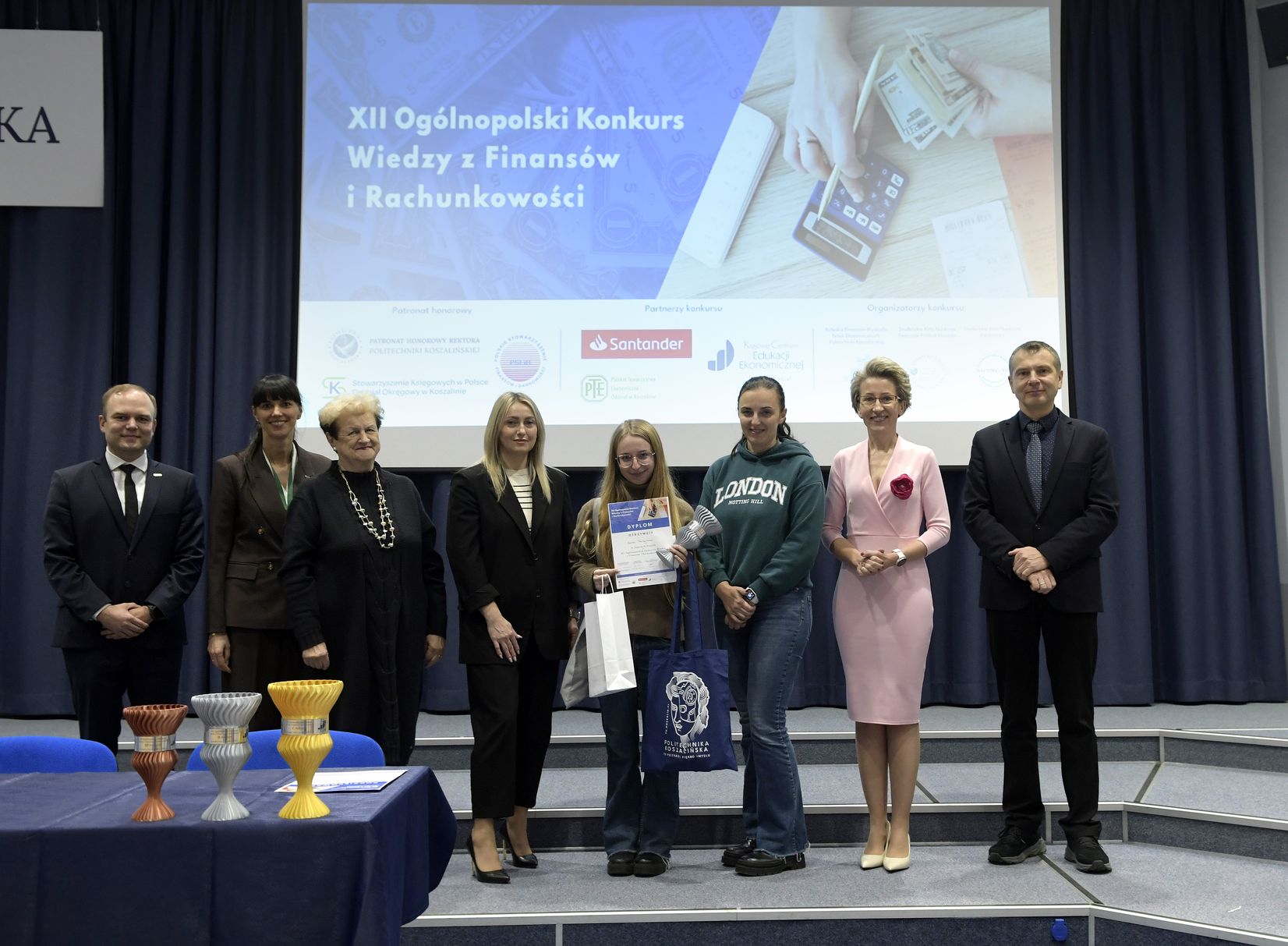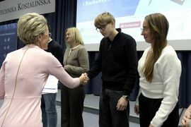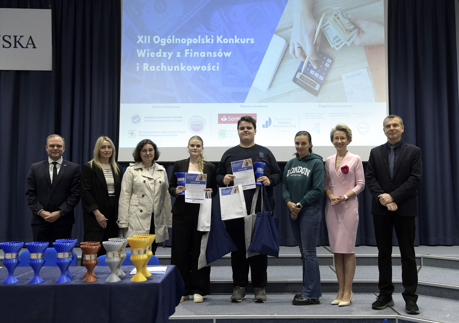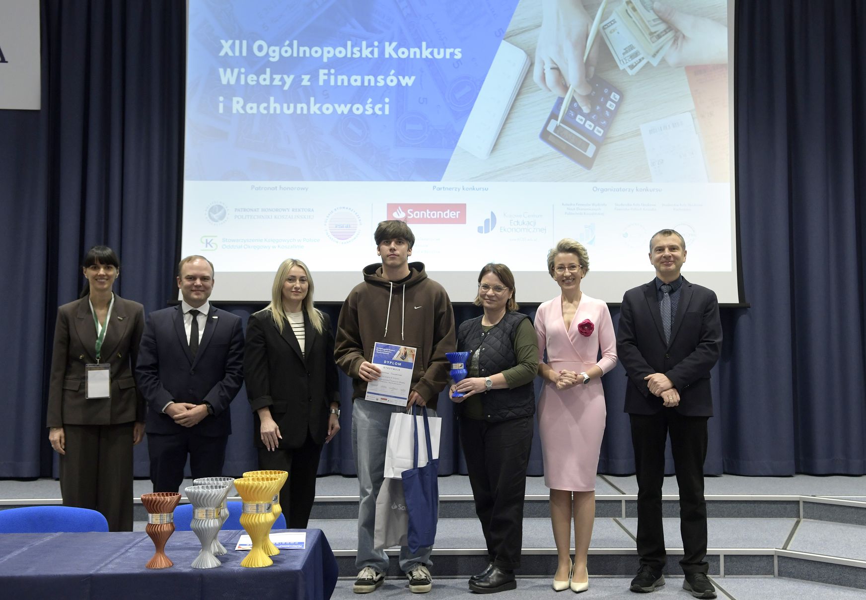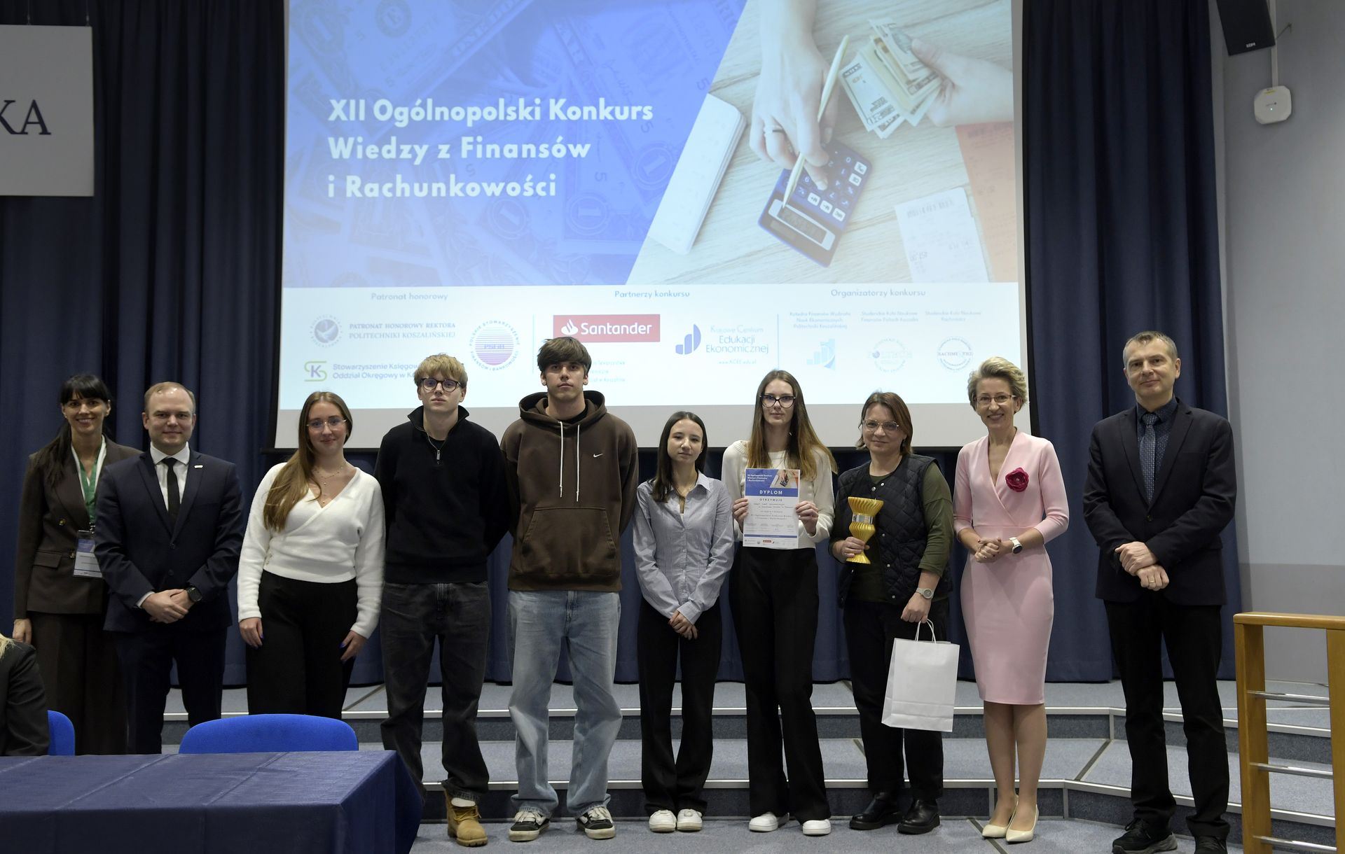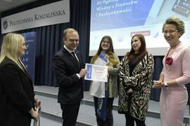We wtorek, 2 grudnia w kampusie przy ul. Kwiatkowskiego odbył się drugi etap, połączony z galą wręczenia nagród XII Ogólnopolskiego Konkursu Wiedzy z Finansów i Rachunkowości, zorganizowanego przez Katedrę Finansów Wydziału Nauk Ekonomicznych Politechniki Koszalińskiej, Poltech- studenckie koło naukowe finansów POLTECH Koszalin oraz Studenckie Koło Naukowe Rachmistrz. Wykład konkursowy pt. „Twoja przyszłość, Twoje zasady: Jak III filar może uratować nasze emerytury?” wygłosiła mgr Sandra Walkusz - tegoroczna absolwentka kierunku Finanse i rachunkowość. Pierwszym z etapów konkursu był test wiedzy teoretycznej, mający na celu ocenę znajomości wiedzy z finansów i rachunkowości. Odbywał się w szkołach, które zgłosiły akces w konkursie. Przystąpiło do niego 176 osób. Do drugiego etapu każda zgłoszona szkoła wytypowała najlepszych uczniów wyłonionych z I etapu. Zmagania podjęło 34 finalistek i finalistów z Poznania, Leszna, Lęborka, Międzychodu, Koszalina, Stargardu, Ostrzeszowa i Kołobrzegu. To wydarzenie odbywało się stacjonarnie w budynku Wydziału Nauk Ekonomicznych Politechniki Koszalińskiej i składało się z testu oraz zadań praktycznych, do rozwiązania z zakresu finansów i rachunkowości. Dla laureatów trzech pierwszych miejsc organizatorzy przewidzieli nagrody finansowe, a także nagrody rzeczowe dla zdobywców miejsc I-X. Dodatkowo przewidziano nagrodę dla nauczyciela laureata I miejsca.