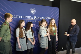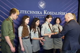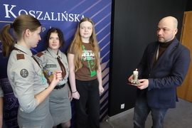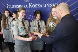 Betlejemskie Światło Pokoju dotarło dzisiaj do kampusu przy ul. Śniadeckich. Harcerze z Hufca Ziemi Koszalińskiej ZHP złożyli na ręce prorektora ds. kształcenia Politechniki Koszalińskiej dra hab. Krzysztofa Wasilewskiego, prof. PK płomień, który przebył 4280 km.