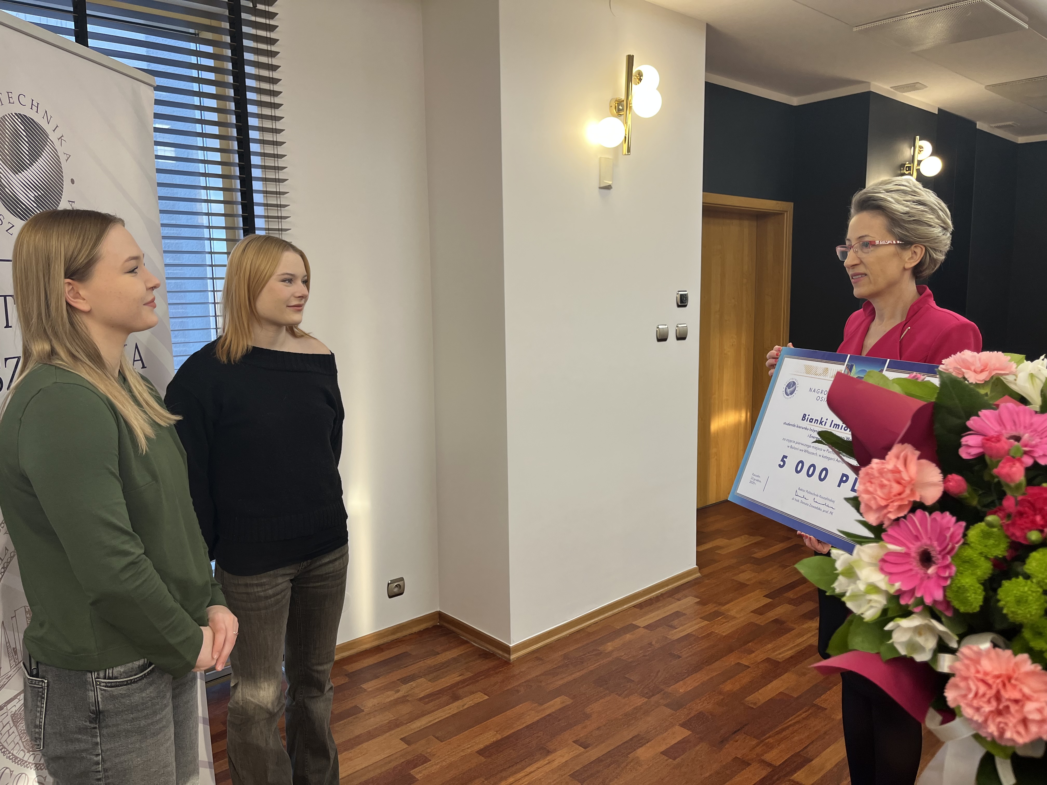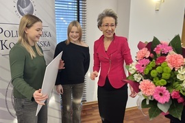 Wręczając wyróżnienie, prof. Danuta Zawadzka pogratulowała reprezentantkom dotychczasowych sukcesów, podkreślając znaczenie łączenia osiągnięć sportowych z aktywnością akademicką a także życząc kolejnych triumfów w najbliższym czasie. Do życzeń przyłączyli się obecni na spotkaniu prorektor ds. studenckich, dr hab. Tomasz Królikowski, prof. PK, oraz kanclerz uczelni, mgr inż. Adam Gawrysiak.