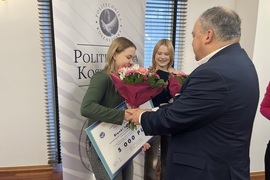 Bianka Imiołowska, studentka kierunku Inżynieria Biomedyczna na Wydziale Inżynierii Mechanicznej i Energetyki Politechniki Koszalińskiej, otrzymała dziś (23 grudnia br.) z rąk dr hab. Danuty Zawadzkiej, prof. PK, rektor Politechniki Koszalińskiej, nagrodę w wysokości 5 tys. zł za wybitne osiągnięcia sportowe.