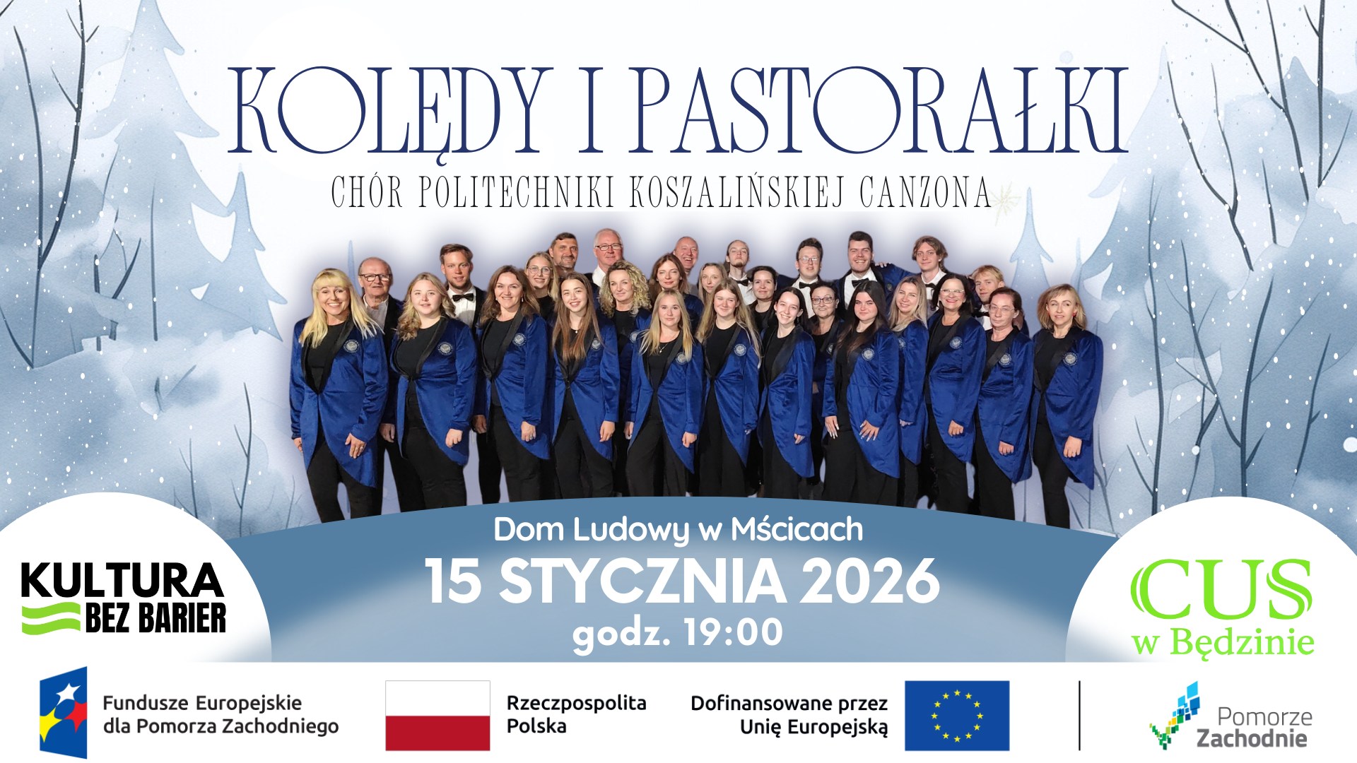 Chór Politechniki Koszalińskiej Canzona wystąpi z koncertem kolęd i pastorałek w Domu Ludowym w Mścicach pod Koszalinem (ul. Południowa 11). Koncert odbędzie się 15 stycznia o godz. 19. Wstęp wolny.