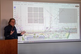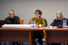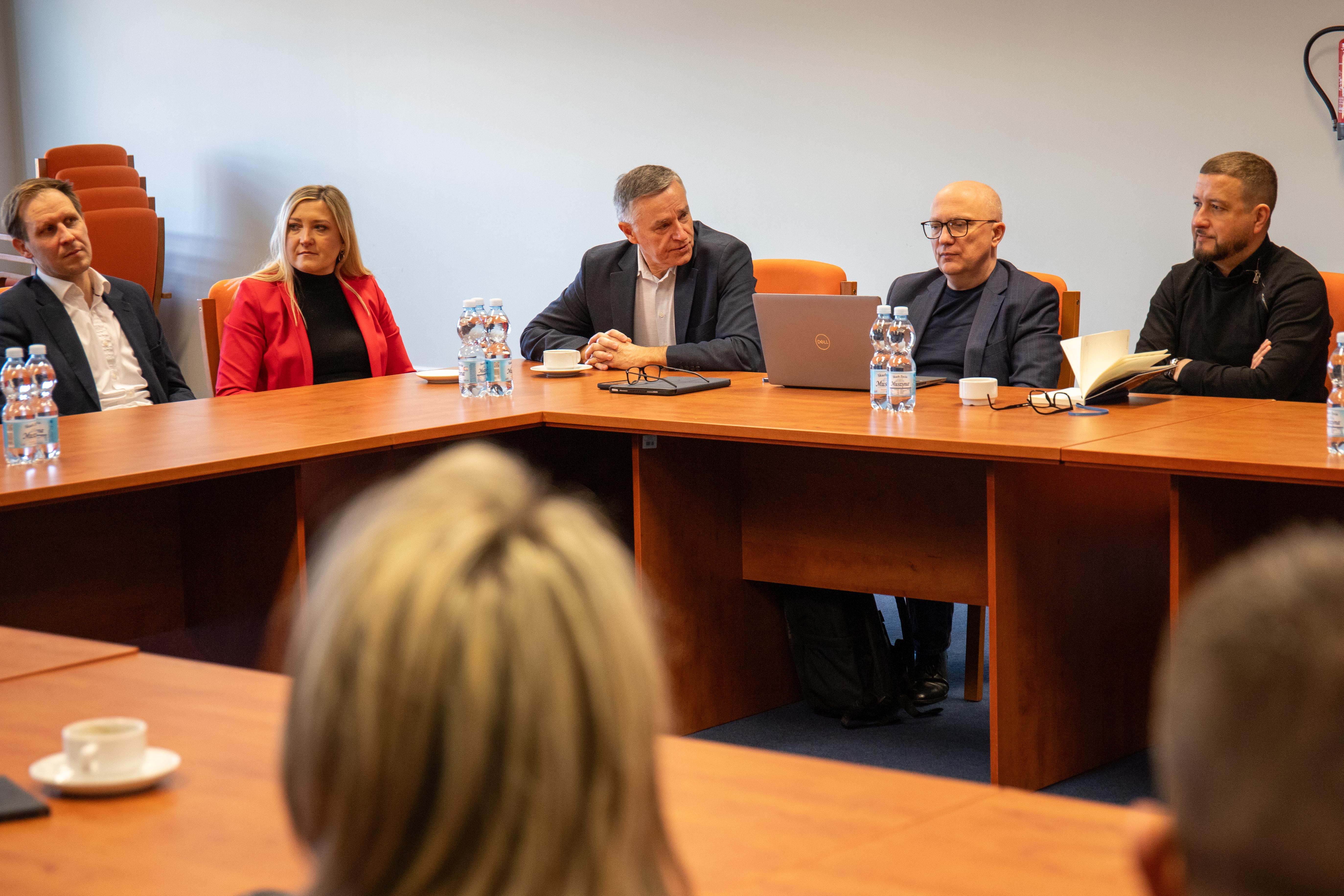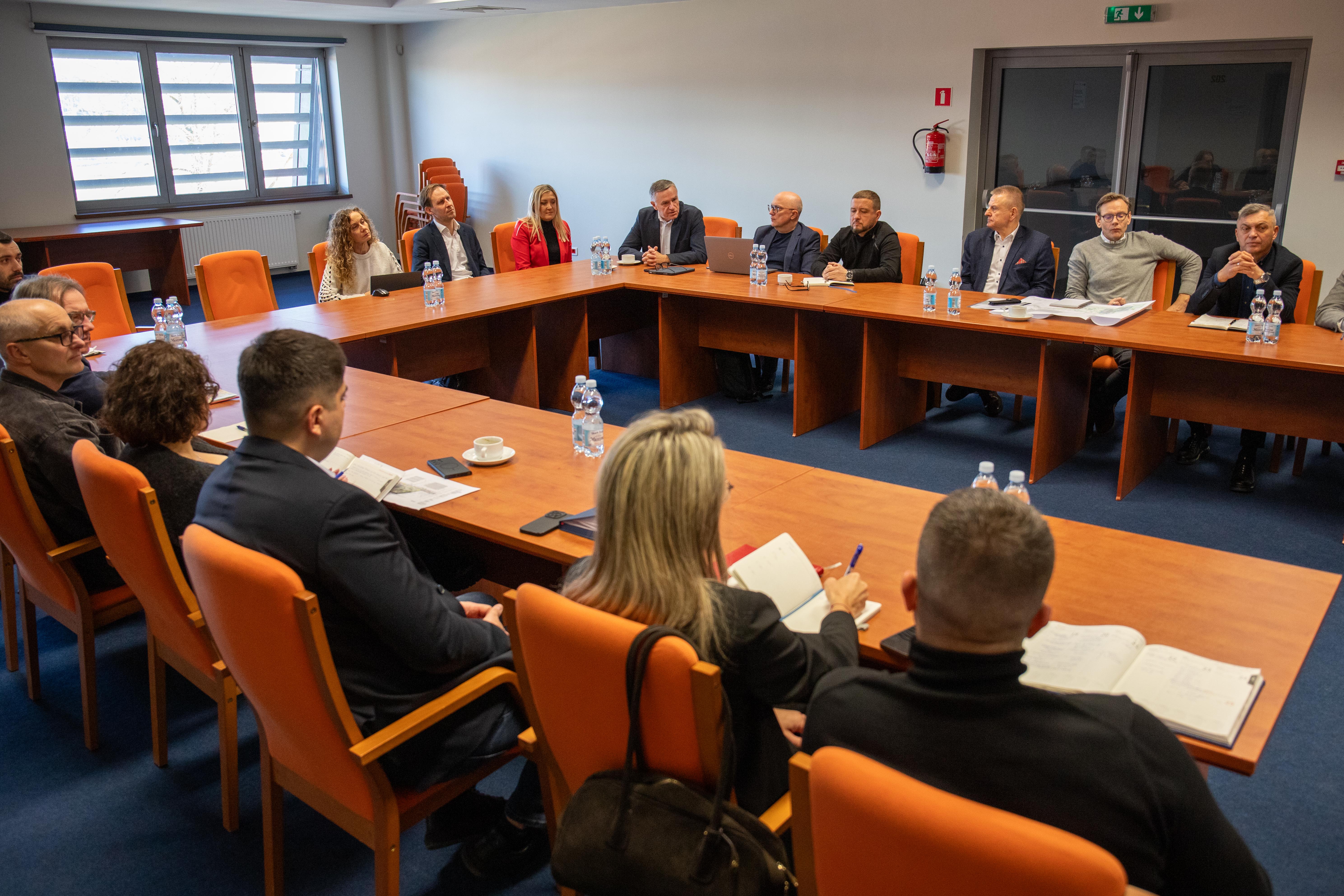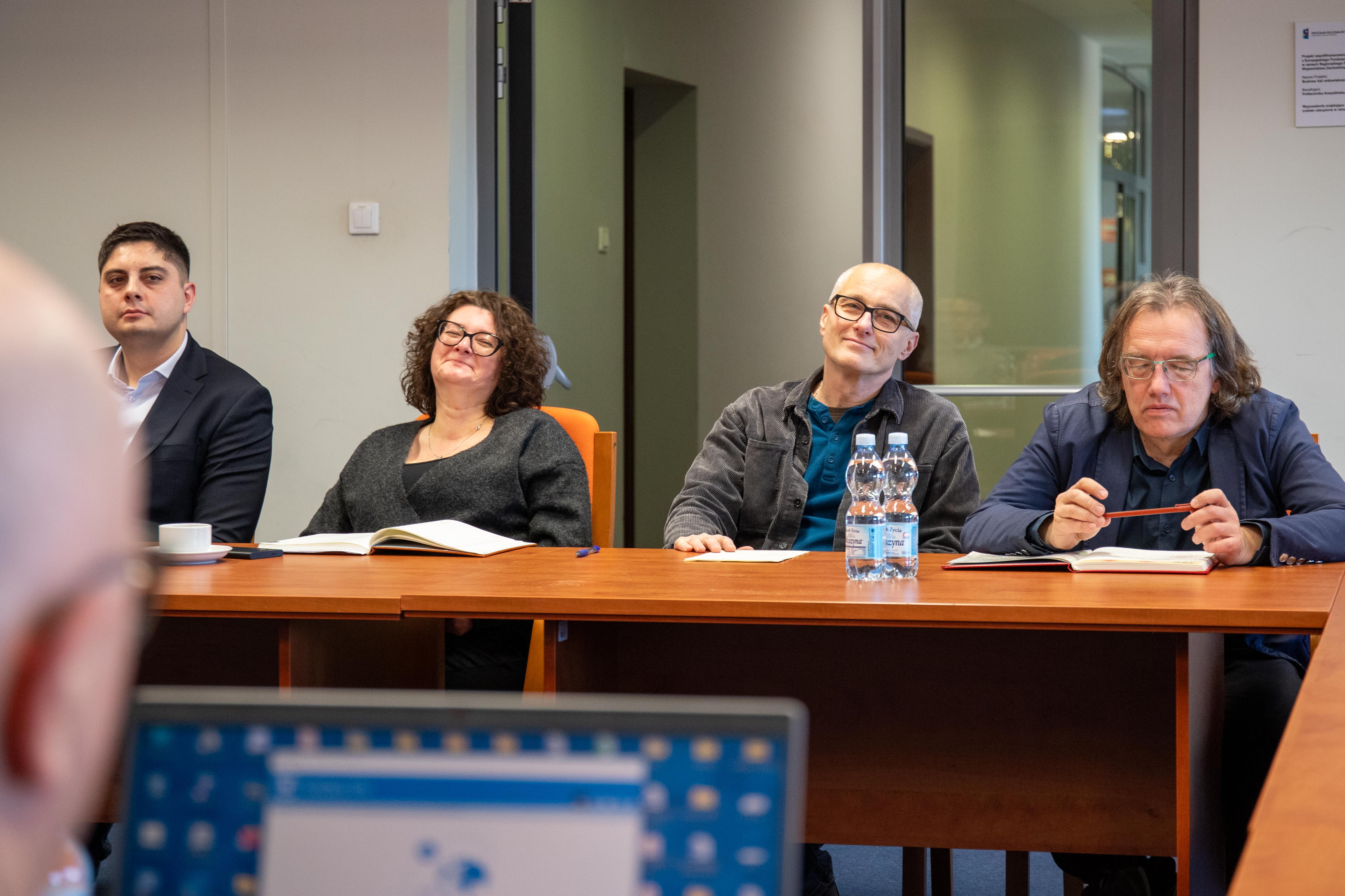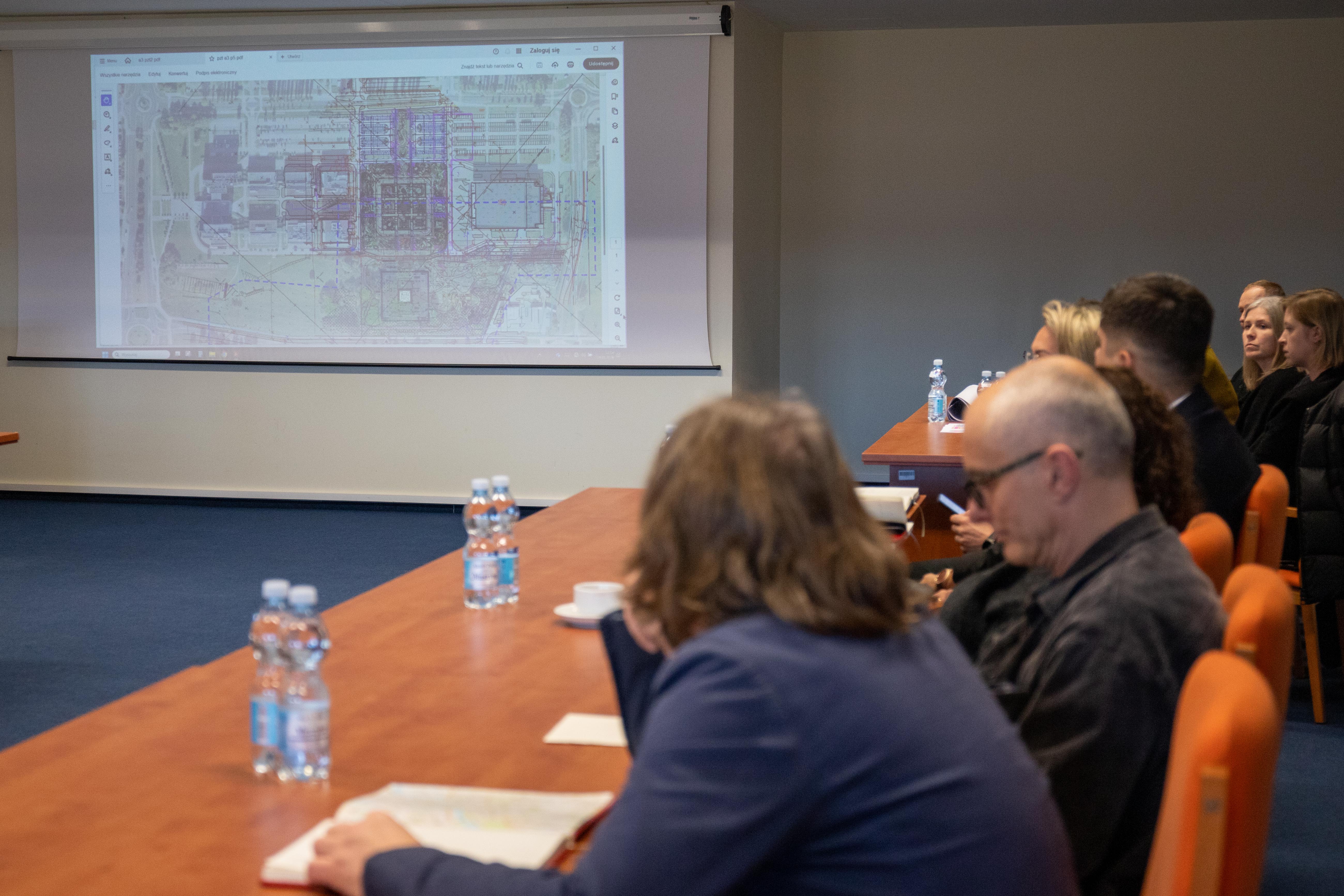 Reprezentanci Atelier Tektura odpowiedzialnego za projekt budynku Centrum Zrównoważonego Rozwoju i OVO Grąbczewscy Architekci - projektanci Centrum Wiedzy, dyskutowali na temat współpracy między inwestycjami, które maja na siebie wzajemny wpływ. Rozmowy dotyczyły współdziałania i kwestii granicznych.