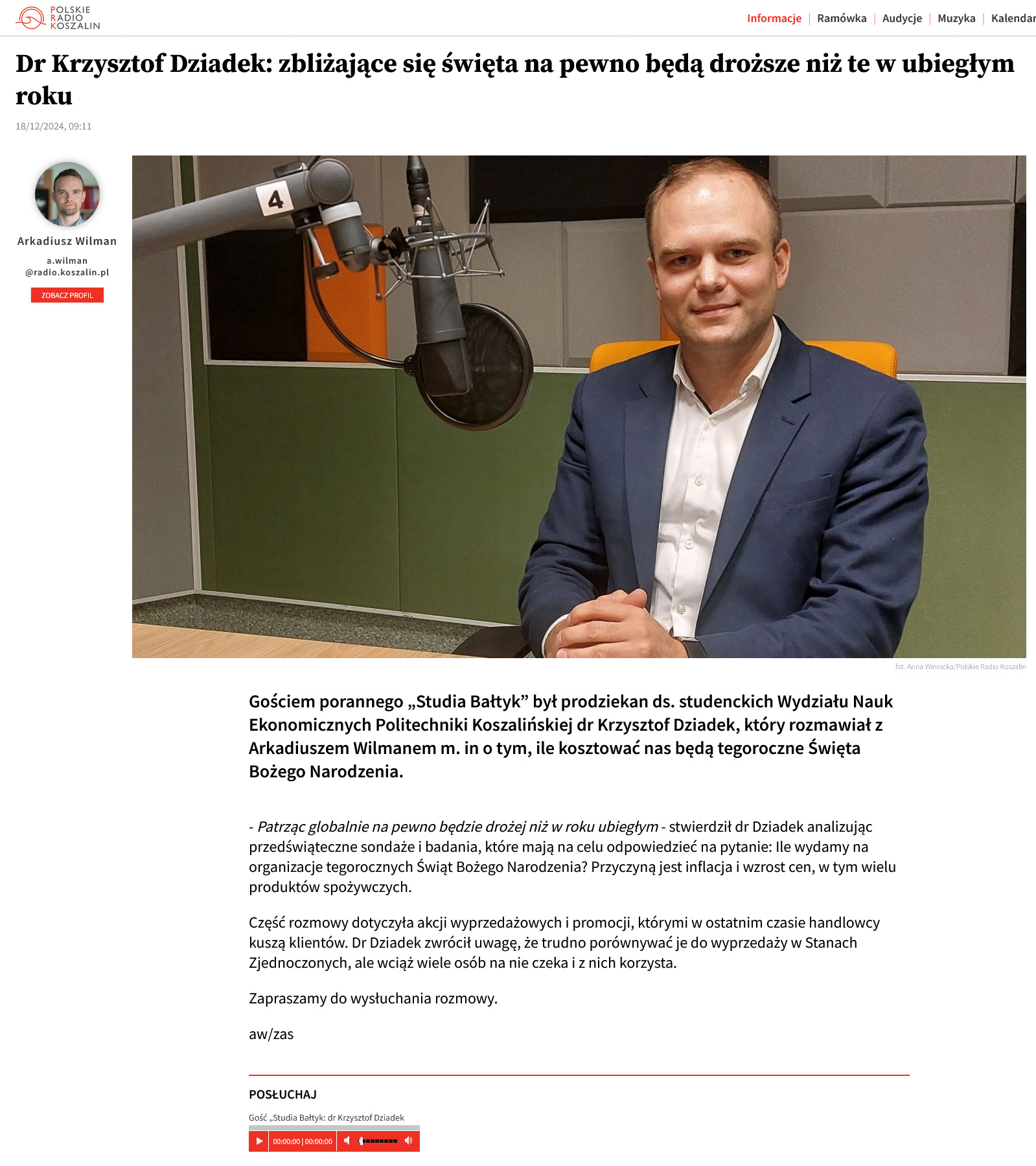 Dr Krzysztof Dziadek: zbliżające się święta na pewno będą droższe niż te w ubiegłym roku