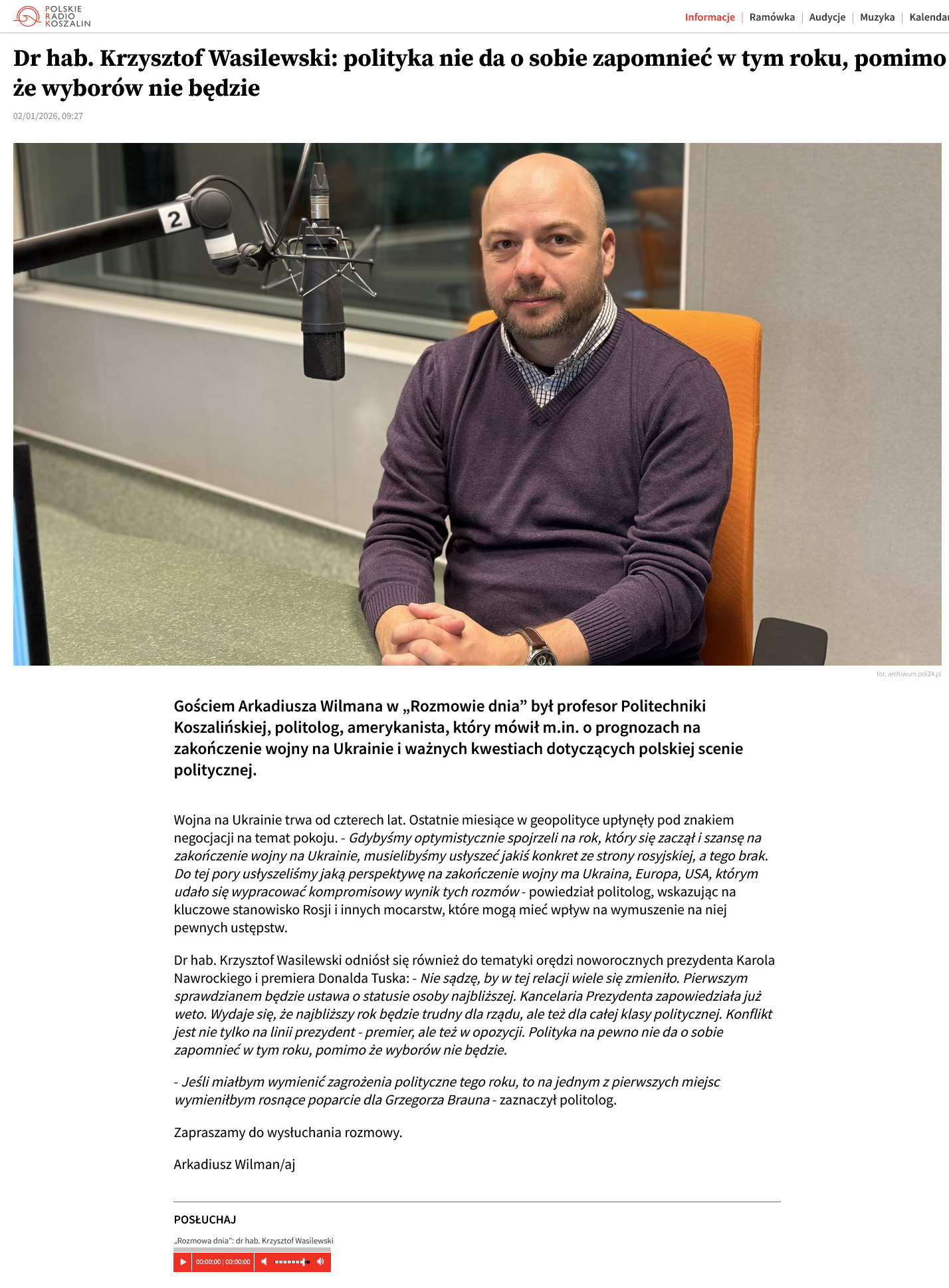 Dr hab. Krzysztof Wasilewski: polityka nie da o sobie zapomnieć w tym roku, pomimo że wyborów nie będzie
