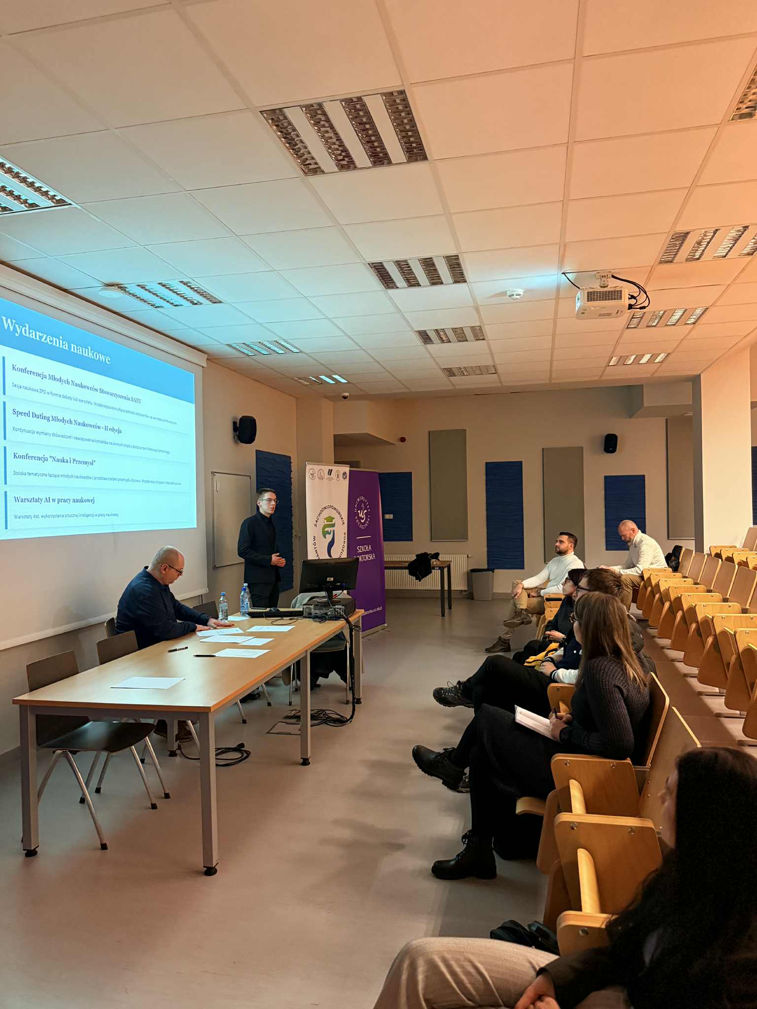 Pierwsze otwarte posiedzenie nowo wybranego zarządu poprowadził mgr inż. Arkadiusz Żuber, przewodniczący Samorządu Doktorantów Politechniki Koszalińskiej oraz doktorant Szkoły Doktorskiej Politechniki Koszalińskiej. Jego udział w prowadzeniu obrad podkreśla zaangażowanie uczelni w rozwój współpracy.