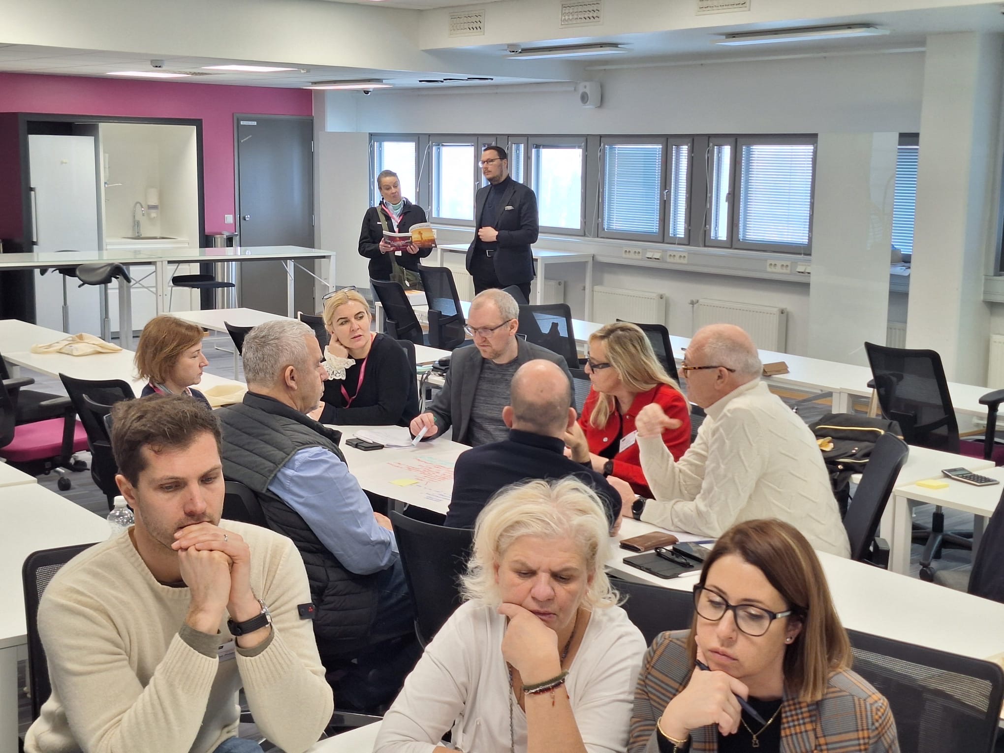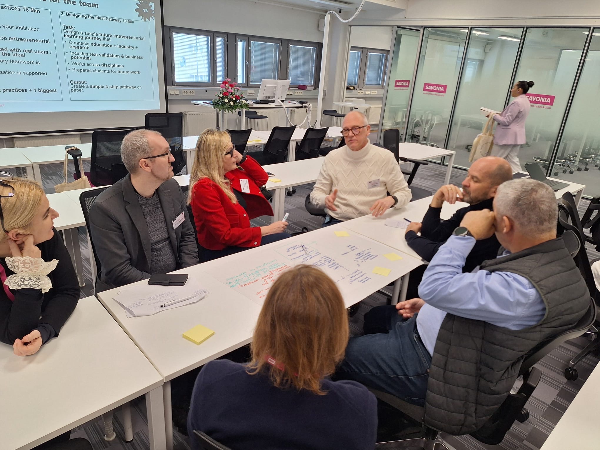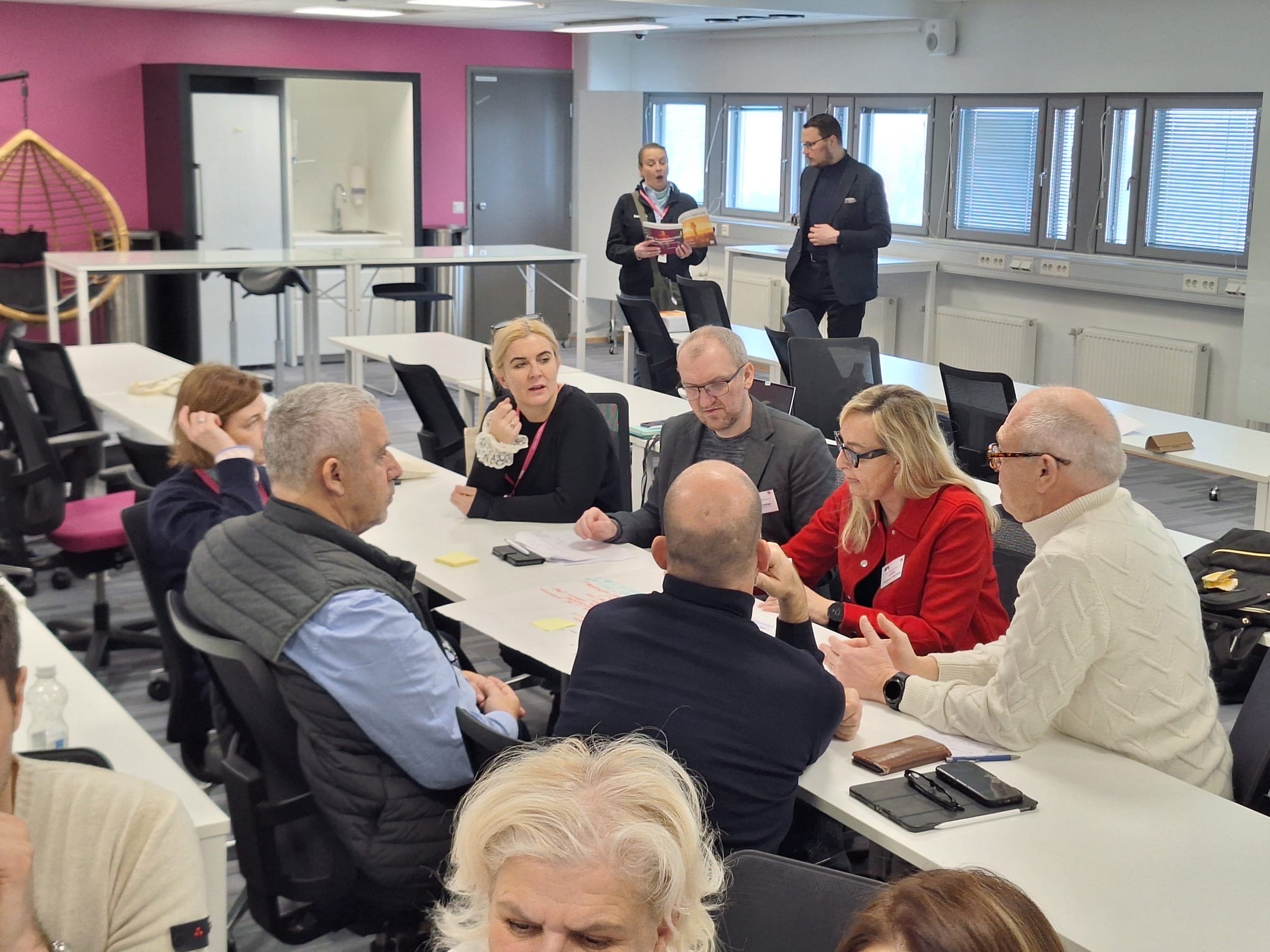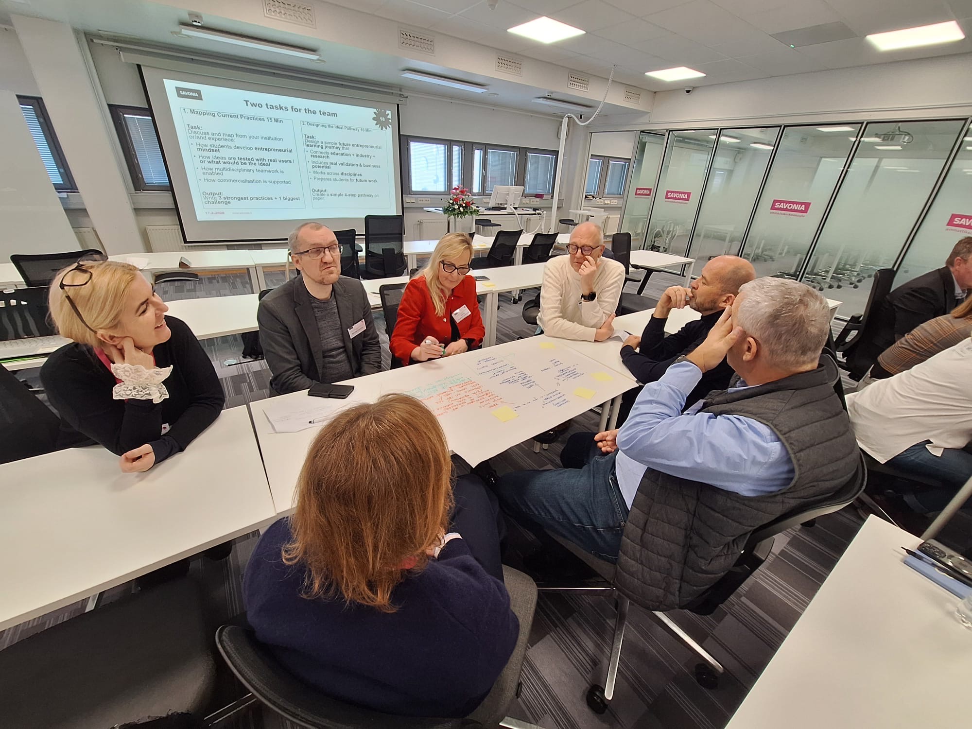 Wczoraj (17 lutego br.,) odbył się warsztat „Entrepreneurial Education and Commercialisation in Multidisciplinary Teams”, prowadzony przez specjalistę RDI Mattiego Laitinena. Spotkanie koncentrowało się na wzmacnianiu kompetencji przedsiębiorczych studentów oraz budowaniu ścieżki od pomysłu do wdrożenia rynkowego. Uczestnicy poznali praktyczne modele współpracy studentów z ekspertami i partnerami biznesowymi, a także narzędzia wspierające proces komercjalizacji innowacyjnych rozwiązań.Dużym zainteresowaniem cieszyły się również warsztaty poświęcone edukacji zdrowotnej, podczas których zaprezentowano wykorzystanie narzędzi cyfrowych w procesie praktyk klinicznych, elementy grywalizacji w dydaktyce oraz funkcjonowanie multidyscyplinarnej kliniki dydaktycznej OSKE w regionie North Savo. Przedstawione rozwiązania pokazują, jak skutecznie łączyć kształcenie, badania i realne usługi społeczne. Równolegle odbywały się zajęcia dotyczące kształtowania kompetencji przyszłości w edukacji biznesowej, podczas których uczestnicy – w formule warsztatowej – współtworzyli koncepcje nowych modułów kształcenia odpowiadających na potrzeby rynku pracy.