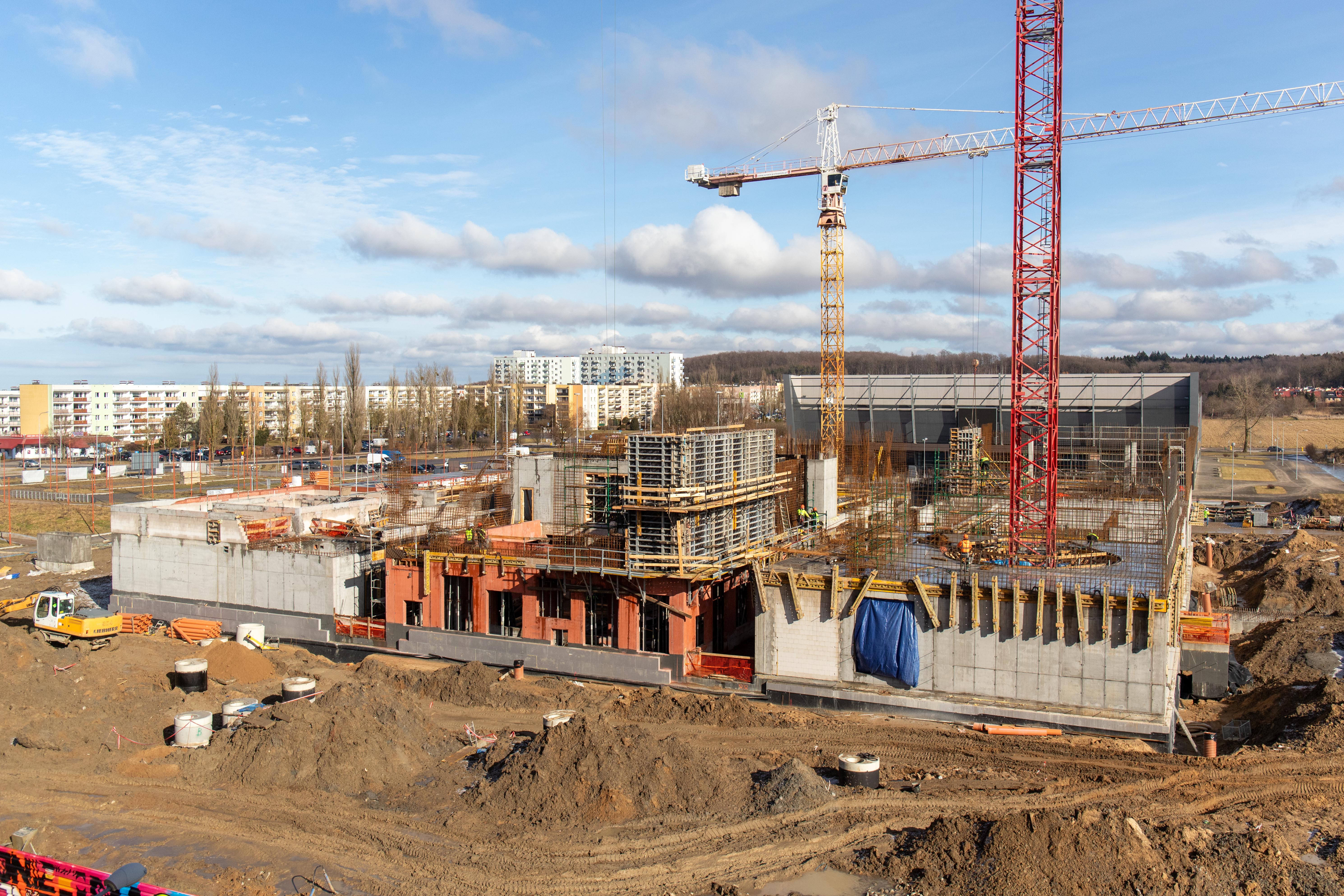 Na terenie kampusu Politechniki Koszalińskiej przy ul. Śniadeckich w Koszalinie powstaje Centrum Wiedzy Cognitarium. Przy okazji sprzyjającej pogody postanowiliśmy odwiedzić plac budowy i sprawdzić jak przebiegają prace. Mirbud S.A. i podwykonawcy nie próżnowali przez zimę. Modułowy kompleks, docelowo składający się z dziewięciu prostopadłościanów o różnej wielkości, wyrasta coraz bardziej ku górze.