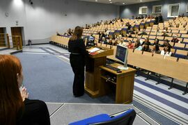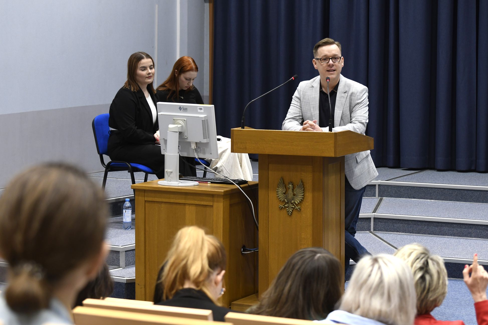 Studenci wysłuchali także relacji swoich koleżanek i kolegów, którzy podzielili się doświadczeniami związanymi z odbytymi praktykami zawodowymi i opowiedzieli o zdobytych umiejętnościach oraz możliwościach rozwoju. Wystąpili Laura Rymon – 2 rok Turystyki i Rekreacji, Mikołaj Turowicz – 2 rok Turystyki i Rekreacji oraz Tymoteusz Maliszewski – 3 rok Finansów i Rachunkowości.