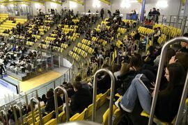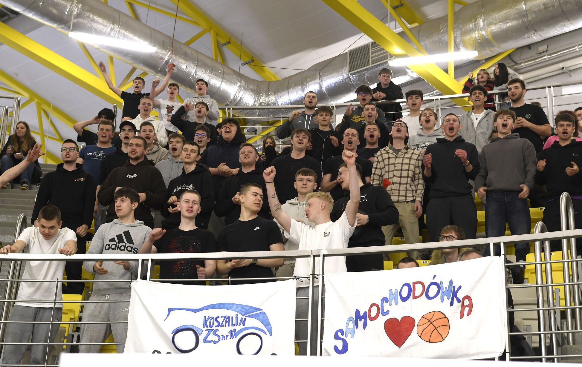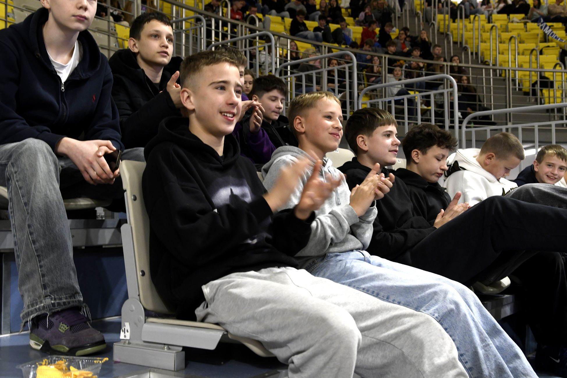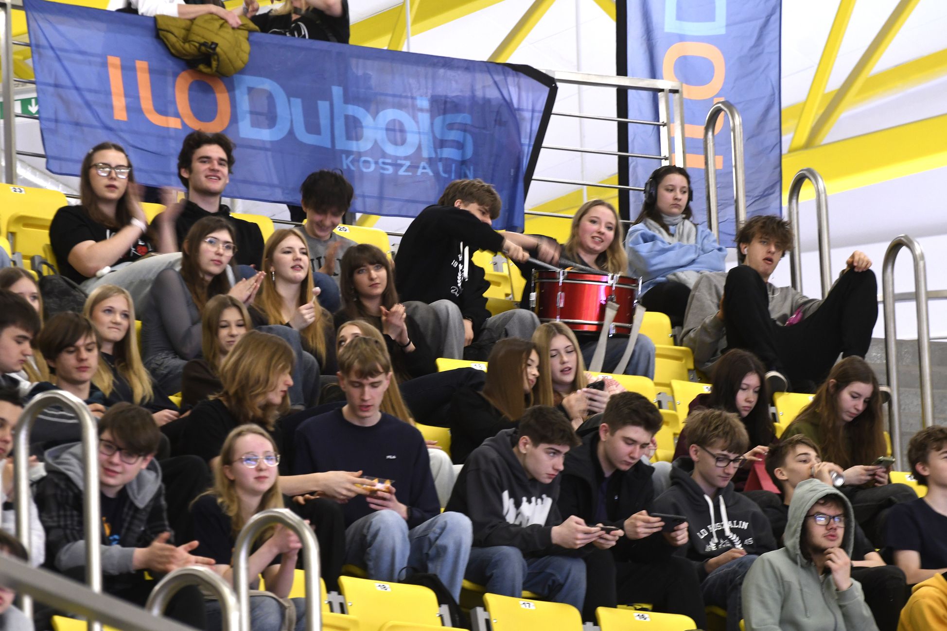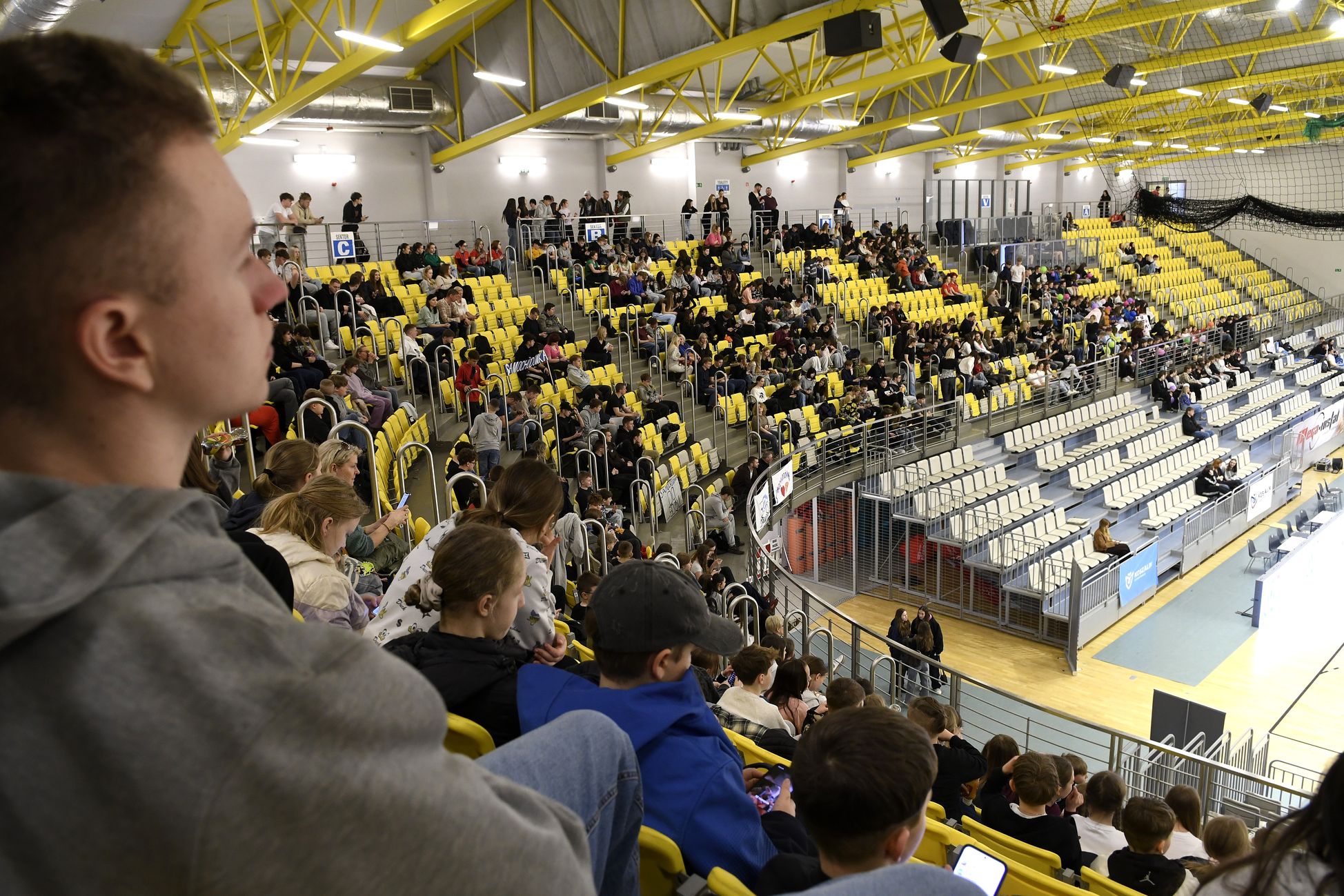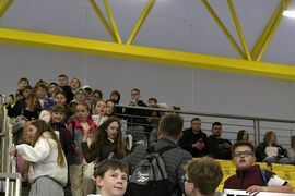 Na trybunach coraz więcej kibiców, głównie uczennic i uczniów koszalińskich szkół. Wszyscy dopingują swoim drużynom.