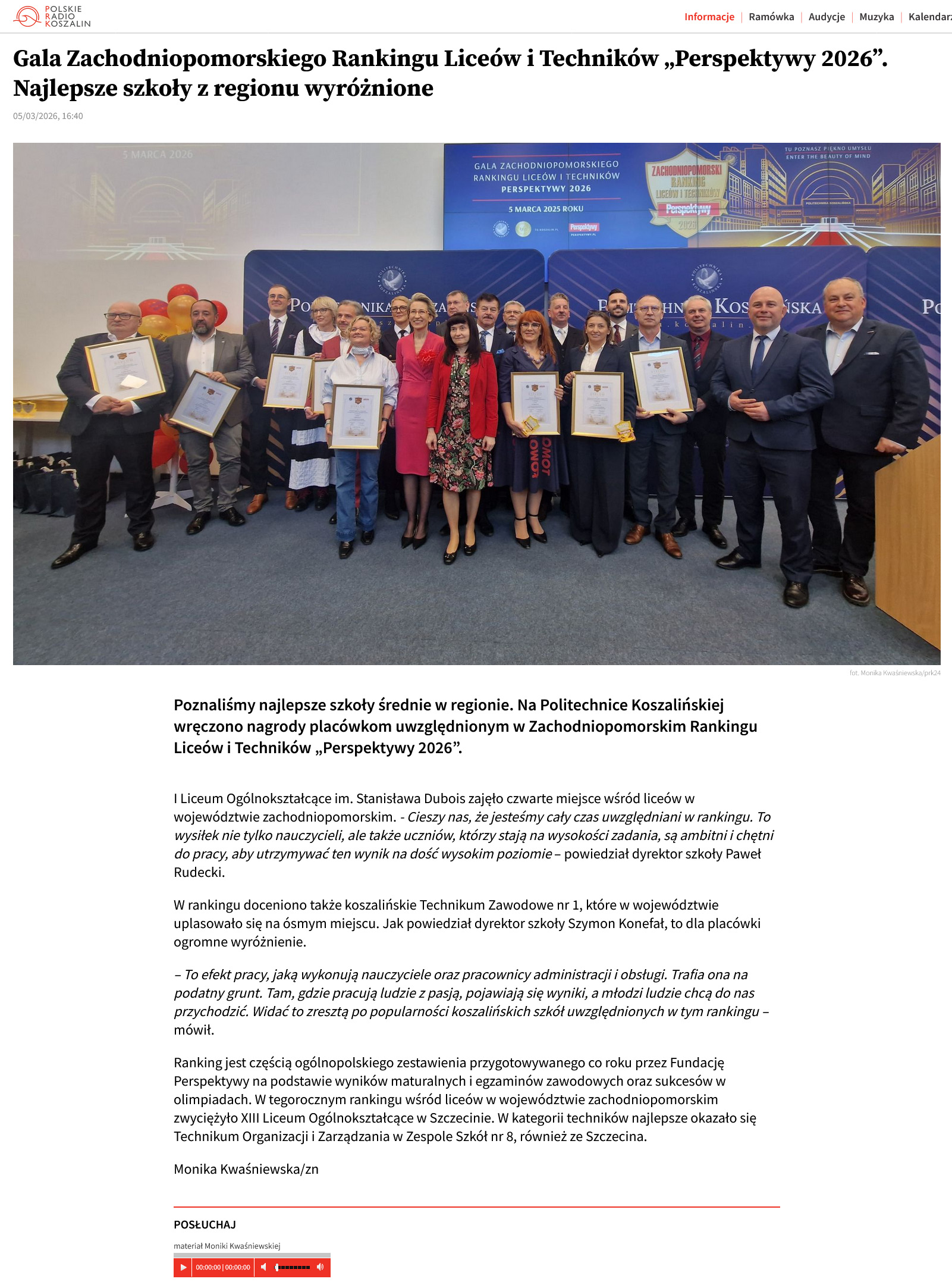 Gala Zachodniopomorskiego Rankingu Liceów i Techników "Perspektywy 2026". Najlepsze szkoły z regionu wyróżnione