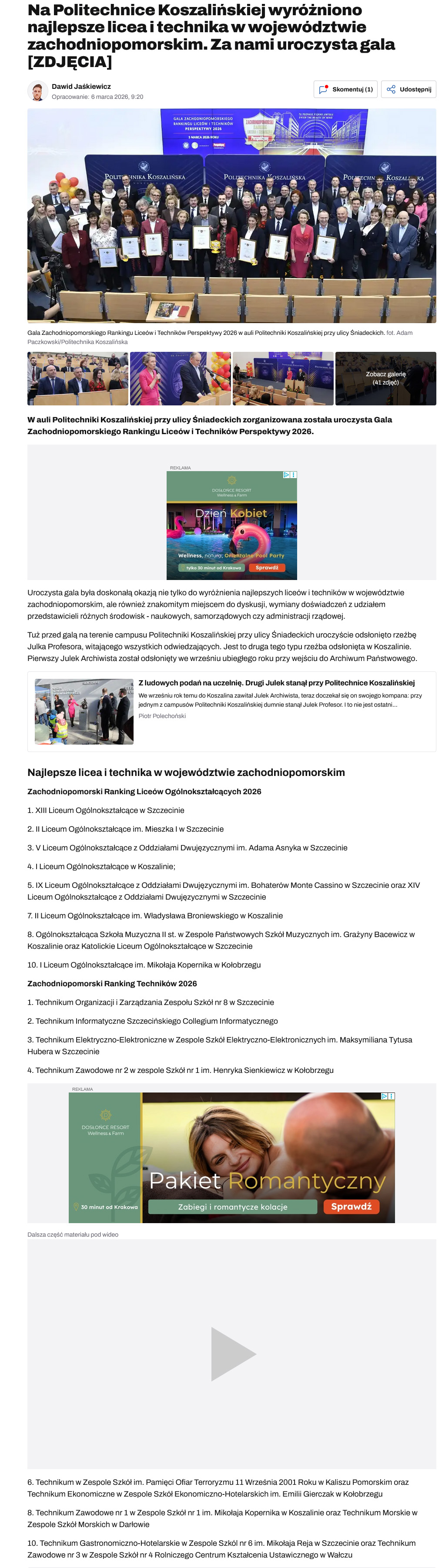 Na Politechnice Koszalińskiej wyróżniono najlepsze licea i technika w województwie zachodniopomorskim. Za nami uroczysta gala [ZDJĘCIA]