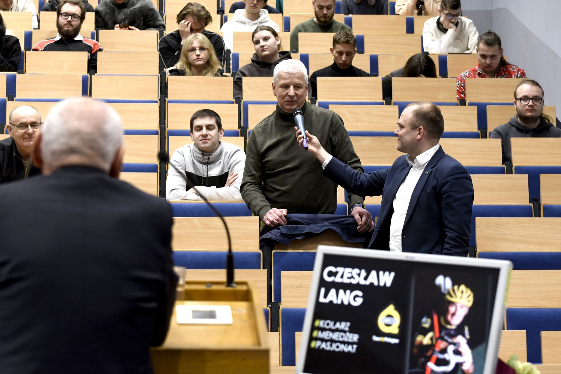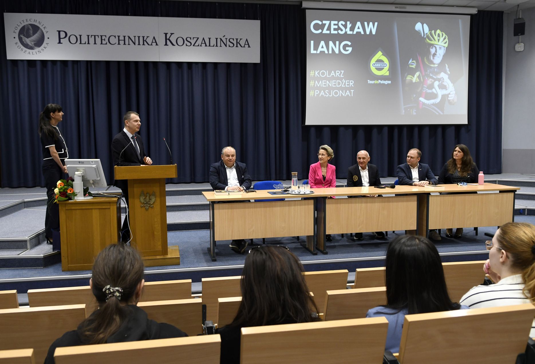 Dla studentek i studentów Czesław Lang wygłosił wykład, dzieląc się doświadczeniami w sporcie i biznesie. Trasa pierwszego etapu Tour de Pologne 2026 (start: 2 sierpnia br.) będzie wiodła z Gdyni (na 100-lecie miasta) do Koszalina (22 ekip, 170 zawodników, 240 km do przejechania). Czesław Lang nazwał go sentymentalnym, z uwagi na wybór miejscowości kaszubskich, skąd pochodzi, gdzie rozpoczynał karierę i dokąd chętnie wraca.