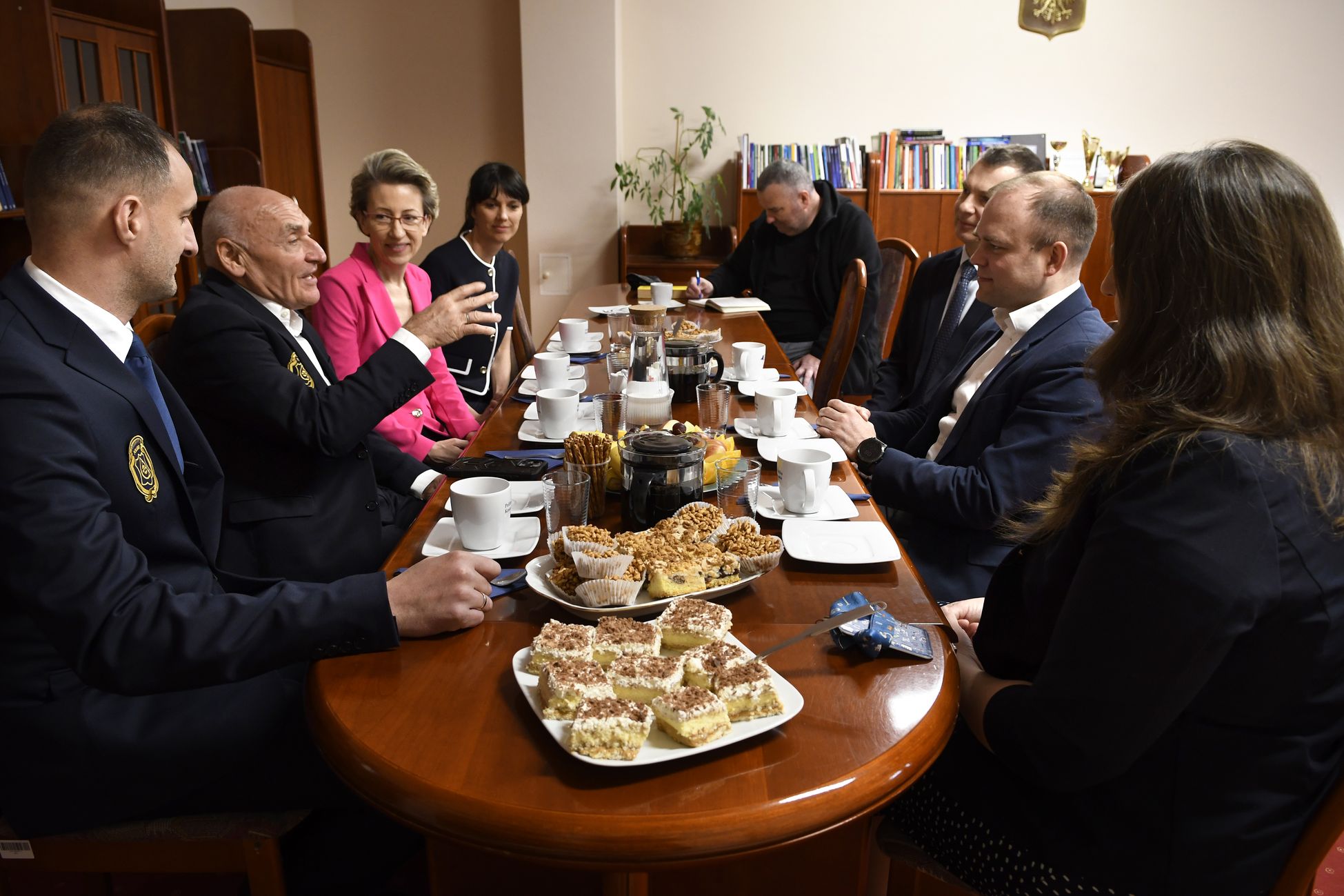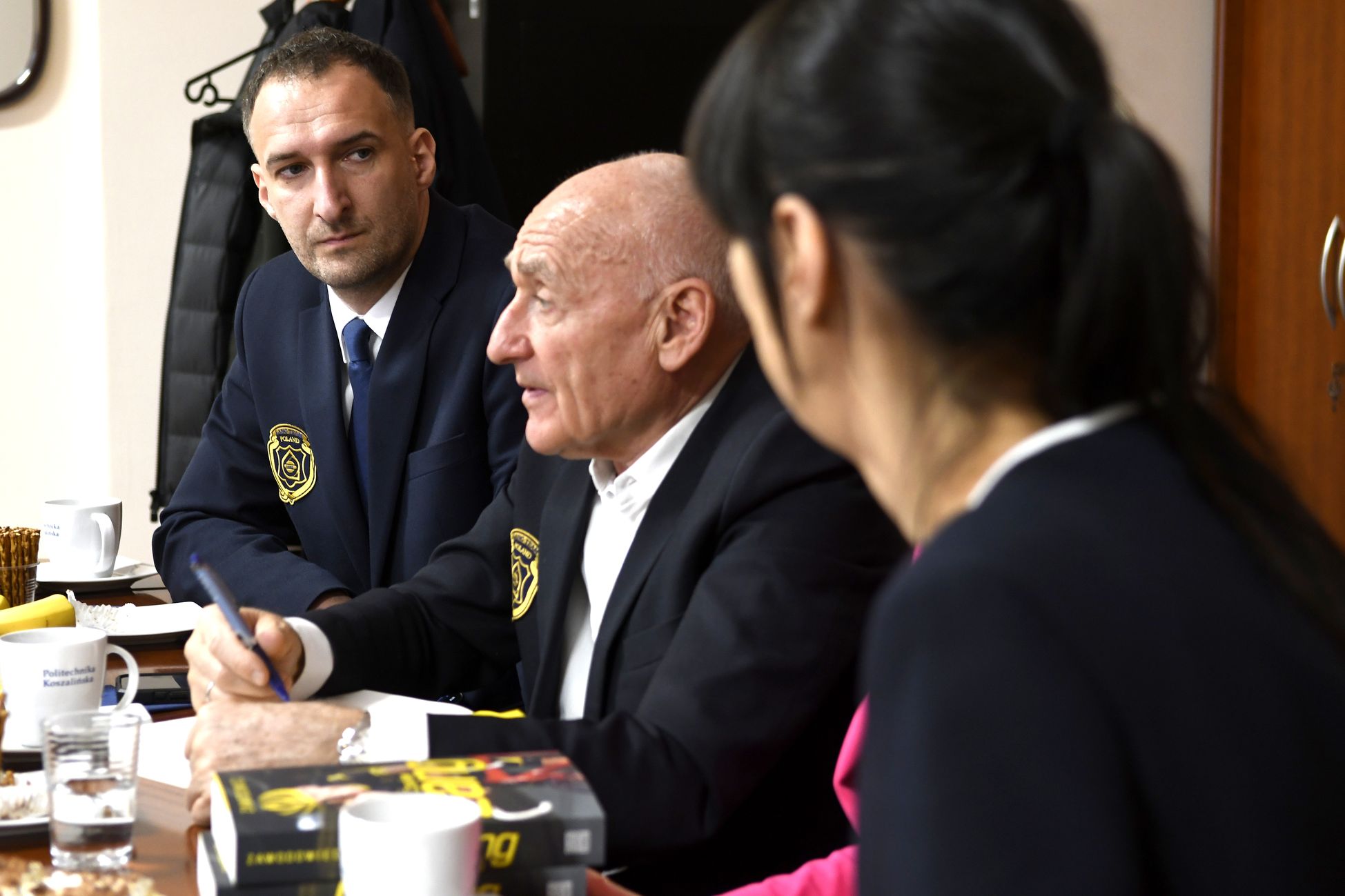 Czesławowi Langowi towarzyszył Janusz Siluta z Lang Team. Poza prof. Danutą Zawadzką, w rozmowach wzięli udział: dr hab. inż. Tomasz Królikowski, prof. PK, prorektor ds. studenckich; dr hab. Grzegorz Przekota, prof. PK, dziekan WNE; dr Agnieszka Strzelecka, prodziekan ds. kształcenia WNE; dr Ewa Szafraniec-Siluta z WNE; dr Krzysztof Dziadek, prodziekan ds. studenckich WNE, prezes Klubu Kibica PK, który sam biega i jeździ rowerem, a teraz przypomniał, że wśród studentów są osoby próbujące sił w kolarstwie.