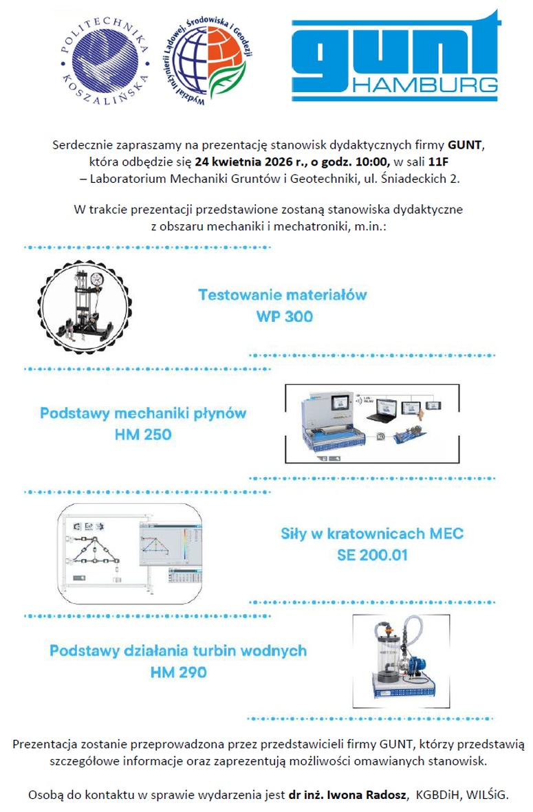 Zaprosznie na prezentację stanowisk dydaktycznych firmy GUNT