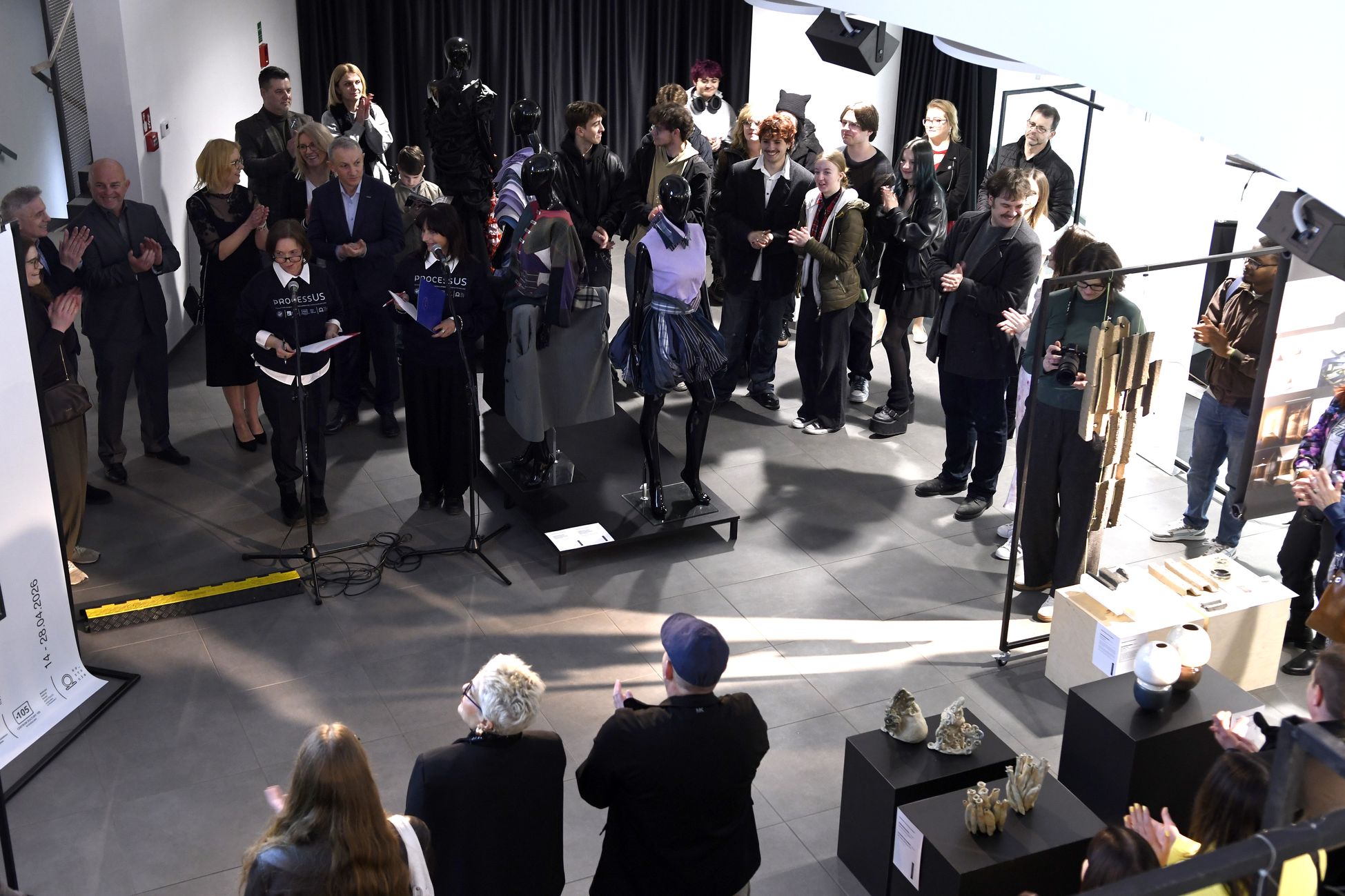 Wczoraj (14.04.2026 r.) w Galerii Amfiteatr i prywatnej instytucji kultury Ko_Stacja odbył się wernisaż wystawy "Mistrz i Uczeń" prezentujący dorobek projektowy wykładowców, absolwentów, studentów i przyjaciół Wydziału Architektury i Wzornictwa Politechniki Koszalińskiej. W tegorocznej odsłonie bierze udział 67 twórców, którzy prezentują swoje prace i projekty, opowiadają o współpracy i wymieniają się doświadczeniami. Hasłem przewodnim wydarzenia jest PROCESSUS. Uczestnicy odnoszą się do procesu twórczego, ale też rejestracji powstawania dzieła, rejestracji jego odbioru, rejestracji czasu, degradacji, tworzenia i rodzenia się nowych idei. Na wystawie prezentowane są projekty z zakresu sztuk projektowych, wizualnych i pięknych. Wystawa potrwa do 29 kwietnia 2026 r.