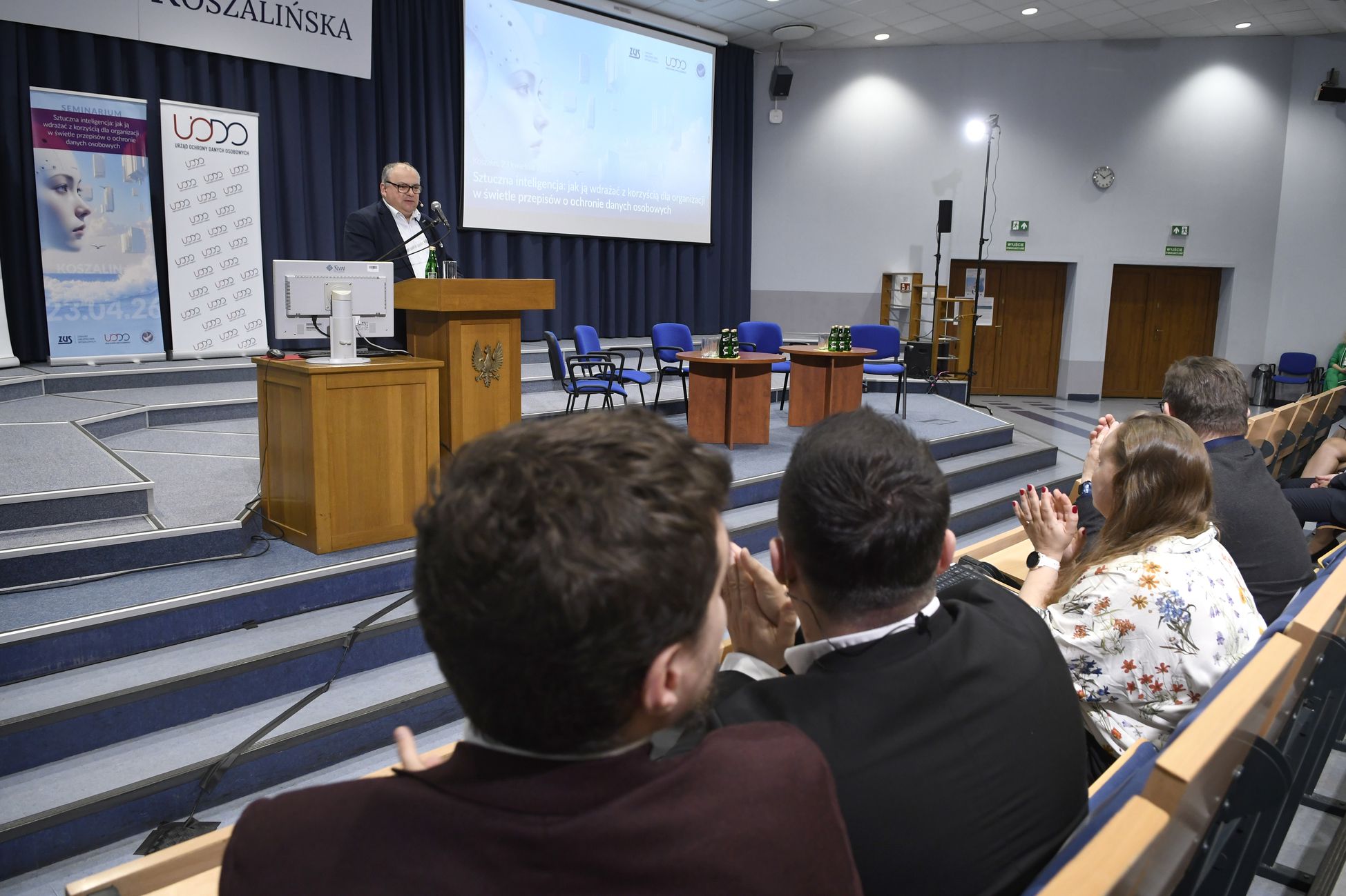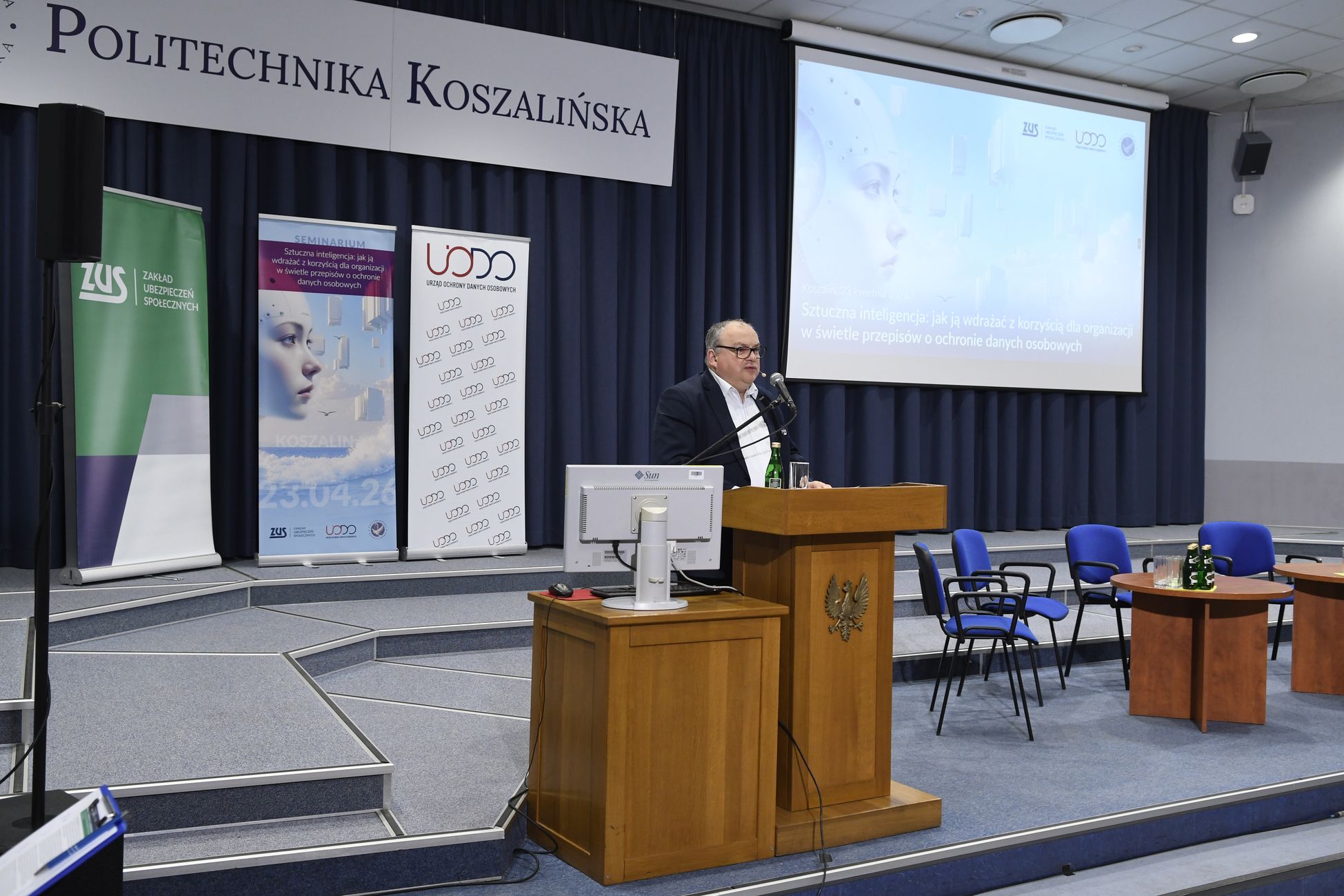 W czwartek, 23 kwietnia w auli Politechniki Koszalińskiej przy ul. Kwiatkowskiego 6e odbyło się seminarium pt. „Sztuczna inteligencja: jak ją wdrażać z korzyścią dla organizacji w świetle przepisów o ochronie danych osobowych”. Wydarzenie zostało zorganizowane przez Biuro Ochrony Danych Osobowych w ZUS, Oddział ZUS w Koszalinie oraz Urząd Ochrony Danych Osobowych. Partnerem spotkania była Politechnika Koszalińska.