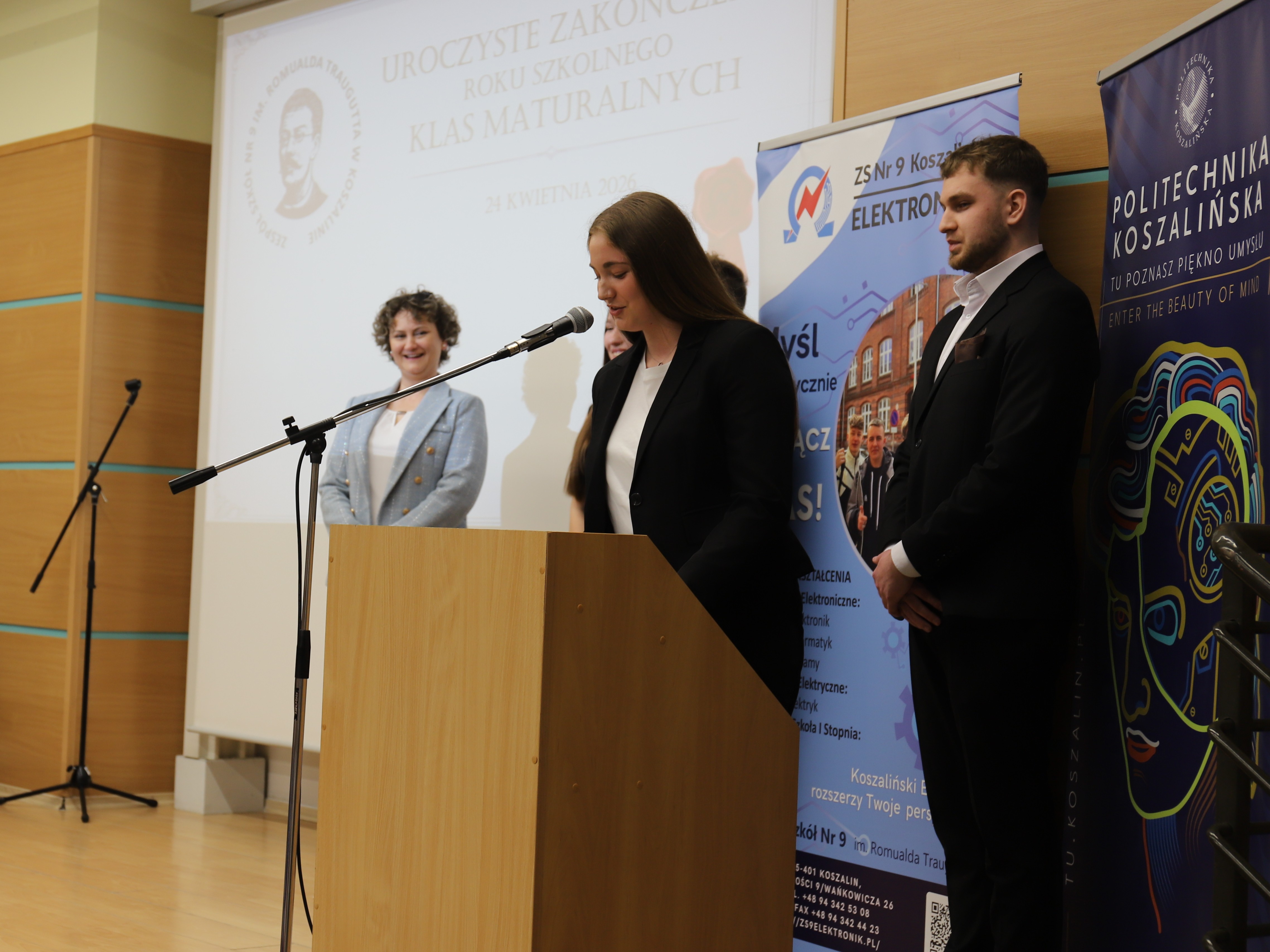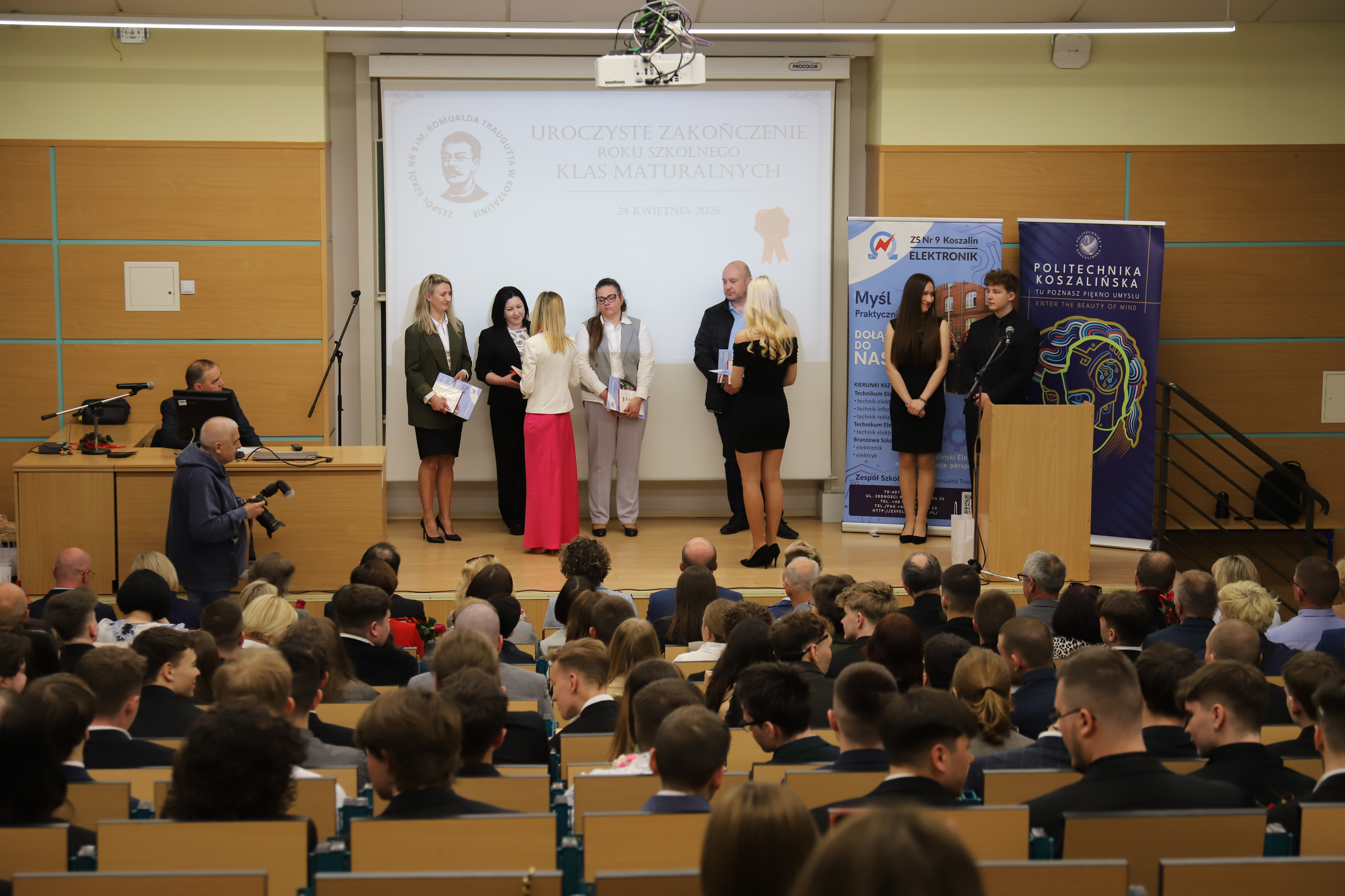 W piątek, 24 kwietnia w Auli Politechniki Koszalińskiej przy ul. Śniadeckich odbyło się uroczyste zakończenie roku szkolnego dla klas maturalnych Zespołu Szkół nr 9 im. gen. Romualda Traugutta w Koszalinie.