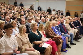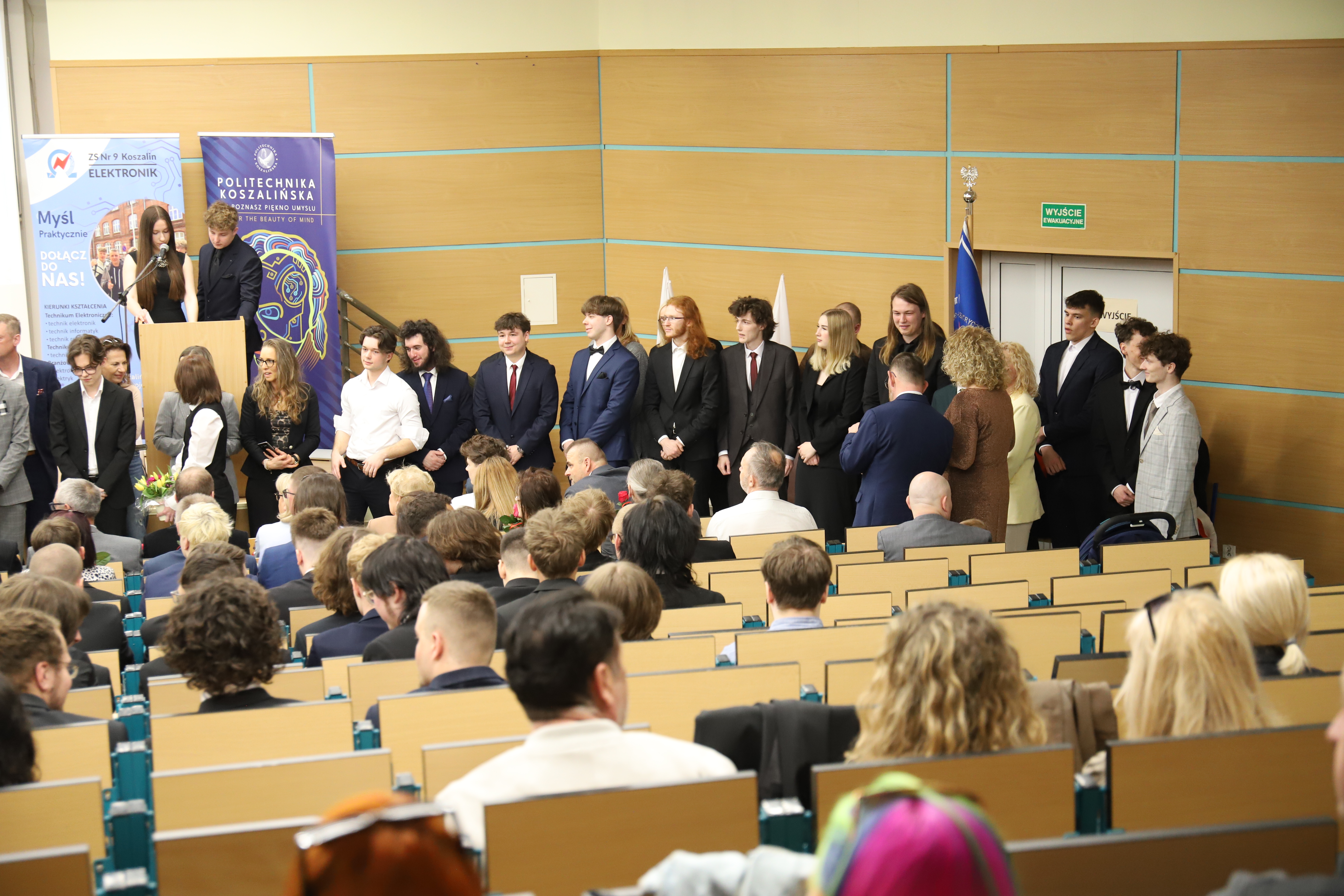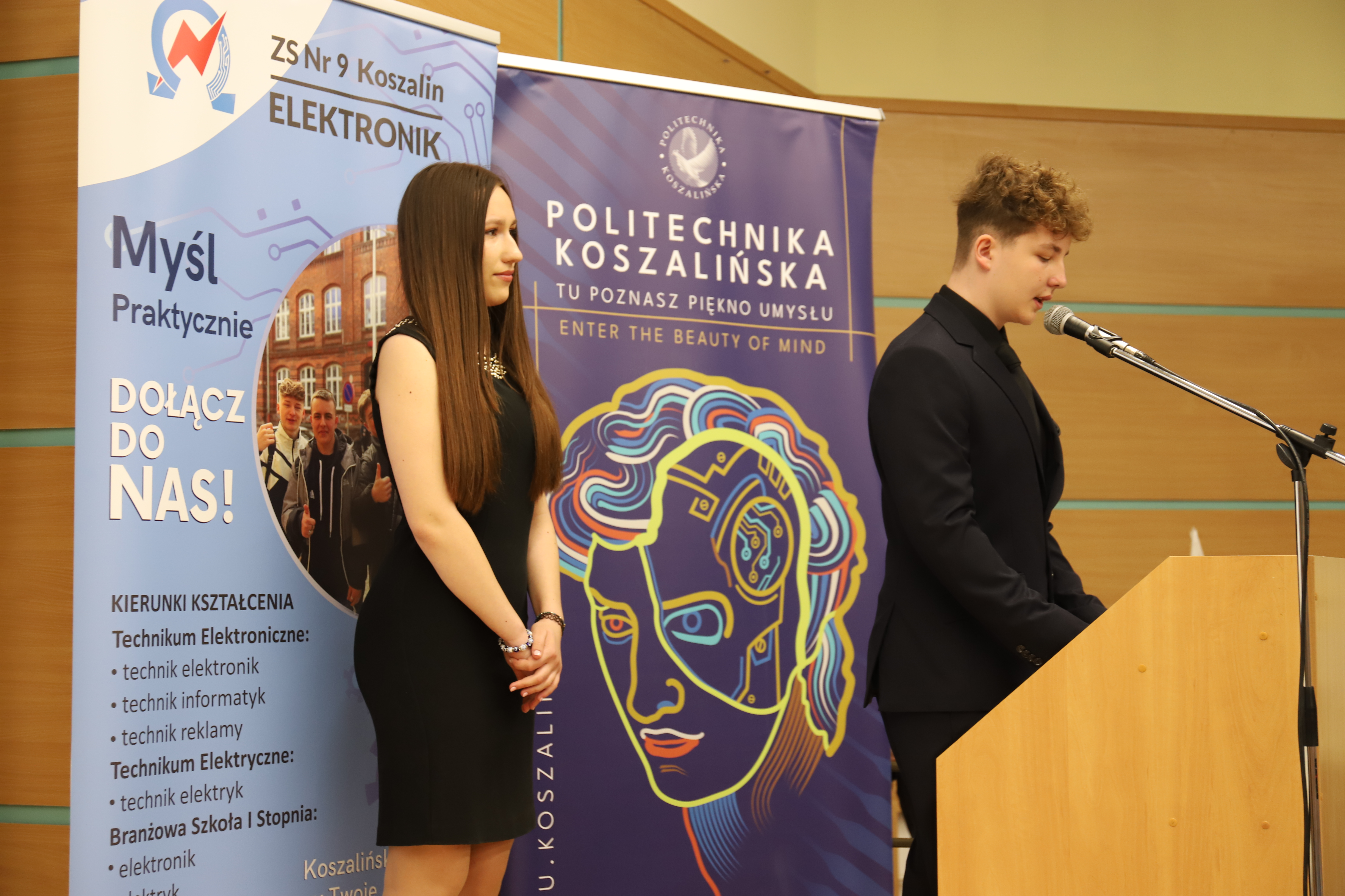 W wydarzeniu uczestniczyli maturzyści, nauczyciele, rodzice oraz zaproszeni goście. Uroczystość rozpoczęła się od oficjalnego powitania zebranych przez dyrektor placówki Anettę Wilk. Głos zabrali także przedstawiciele Politechniki Koszalińskiej dziekan Wydziału Elektroniki i Informatyki , prof. dr hab. inż. Krzysztof Rokosz i prodziekan ds. kształcenia Wydziału Architektury i Wzornictwa, dr hab. Anna Szklińska, prof. PK.