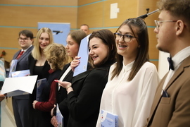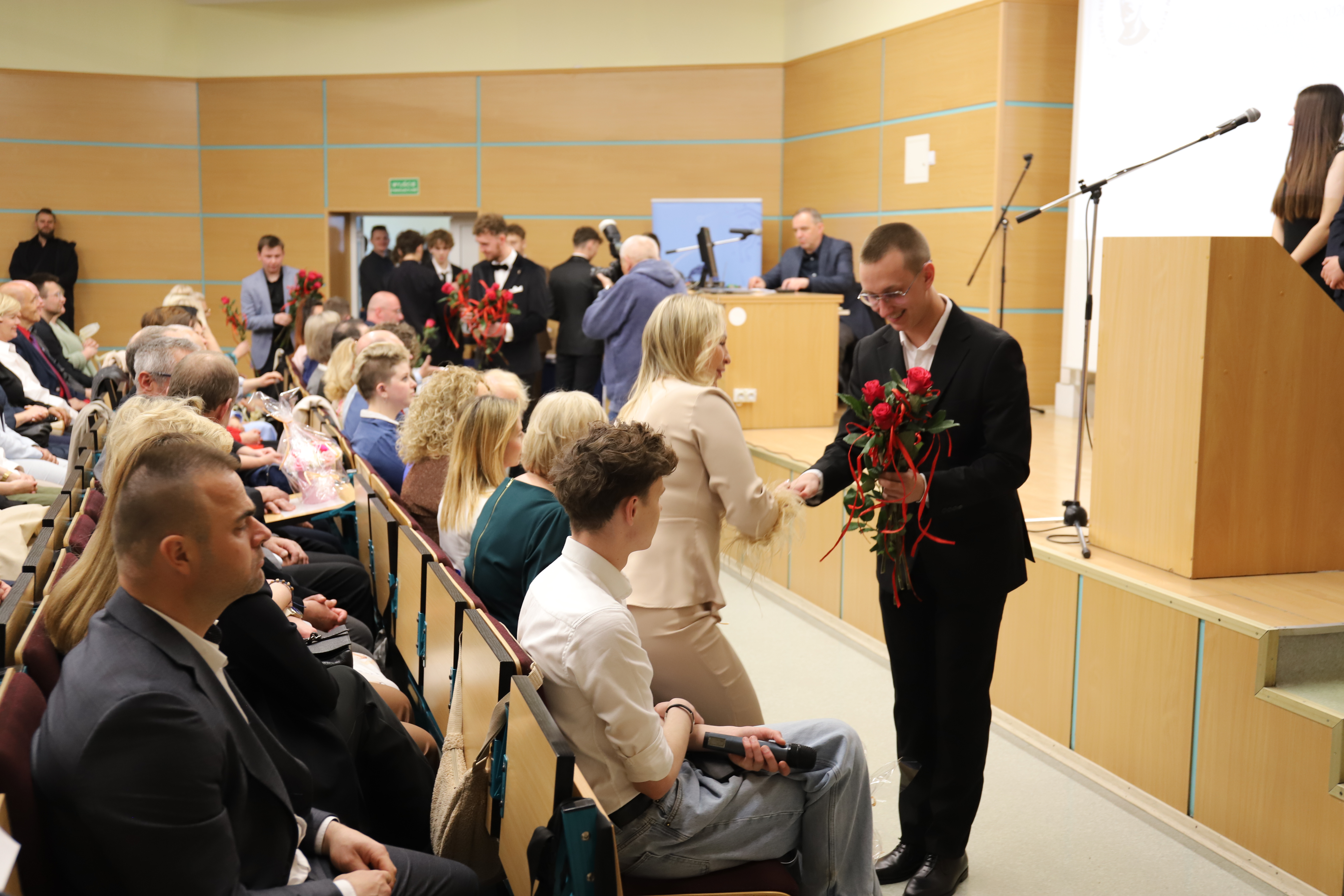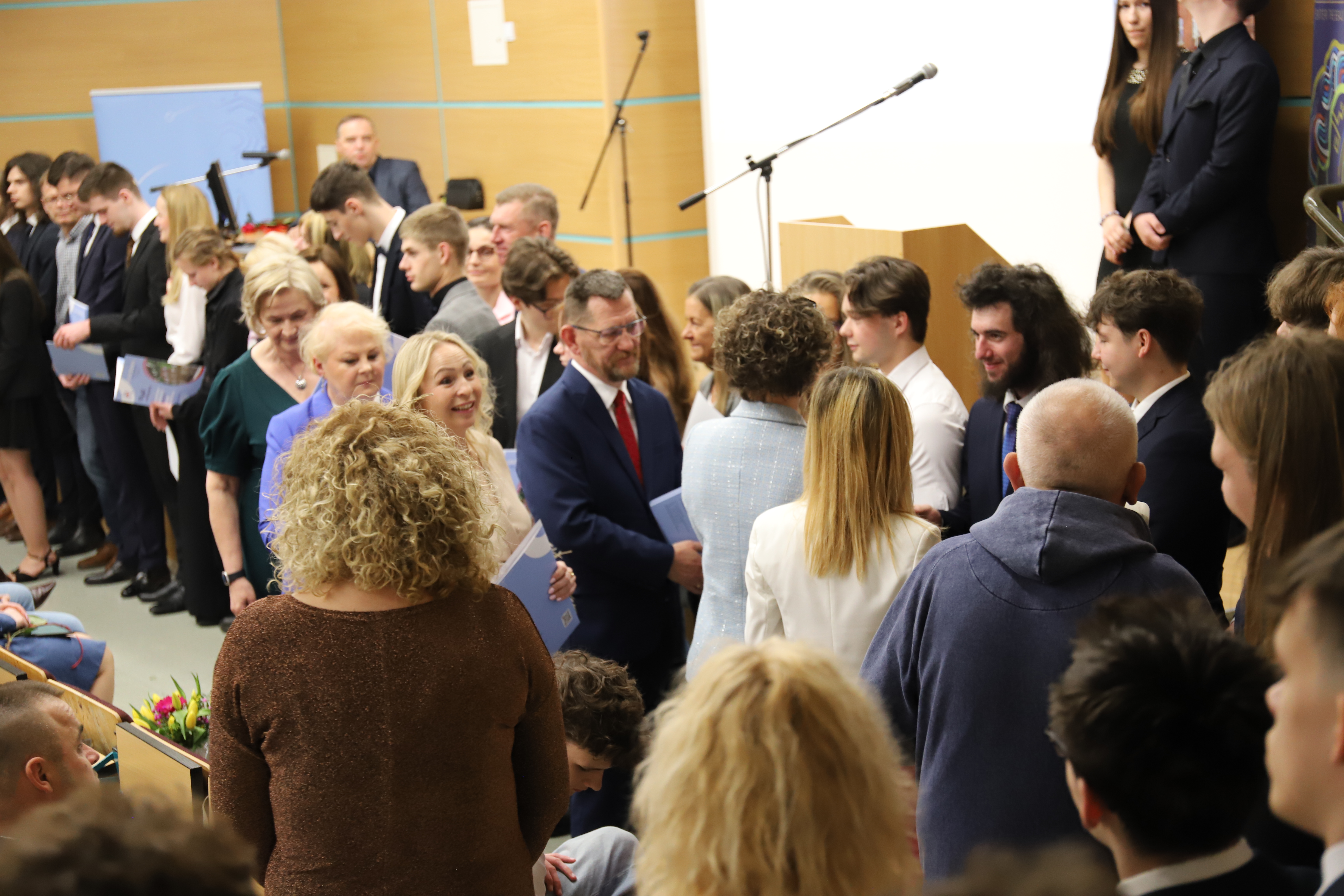Szczególnym momentem akademii było wręczenie wyróżnień dla uczniów, którzy osiągnęli wysokie wyniki w nauce, aktywnie reprezentowali szkołę w konkursach i olimpiadach oraz angażowali się w życie społeczności szkolnej. Doceniono również sportowców, którzy z sukcesami reprezentowali Zespół Szkół nr 9 podczas zawodów i turniejów na różnych szczeblach rywalizacji. Warto dodać, że puchary dla sportowców zostały wydrukowane przez Centrum Druku 3D Politechniki Koszalińskiej.