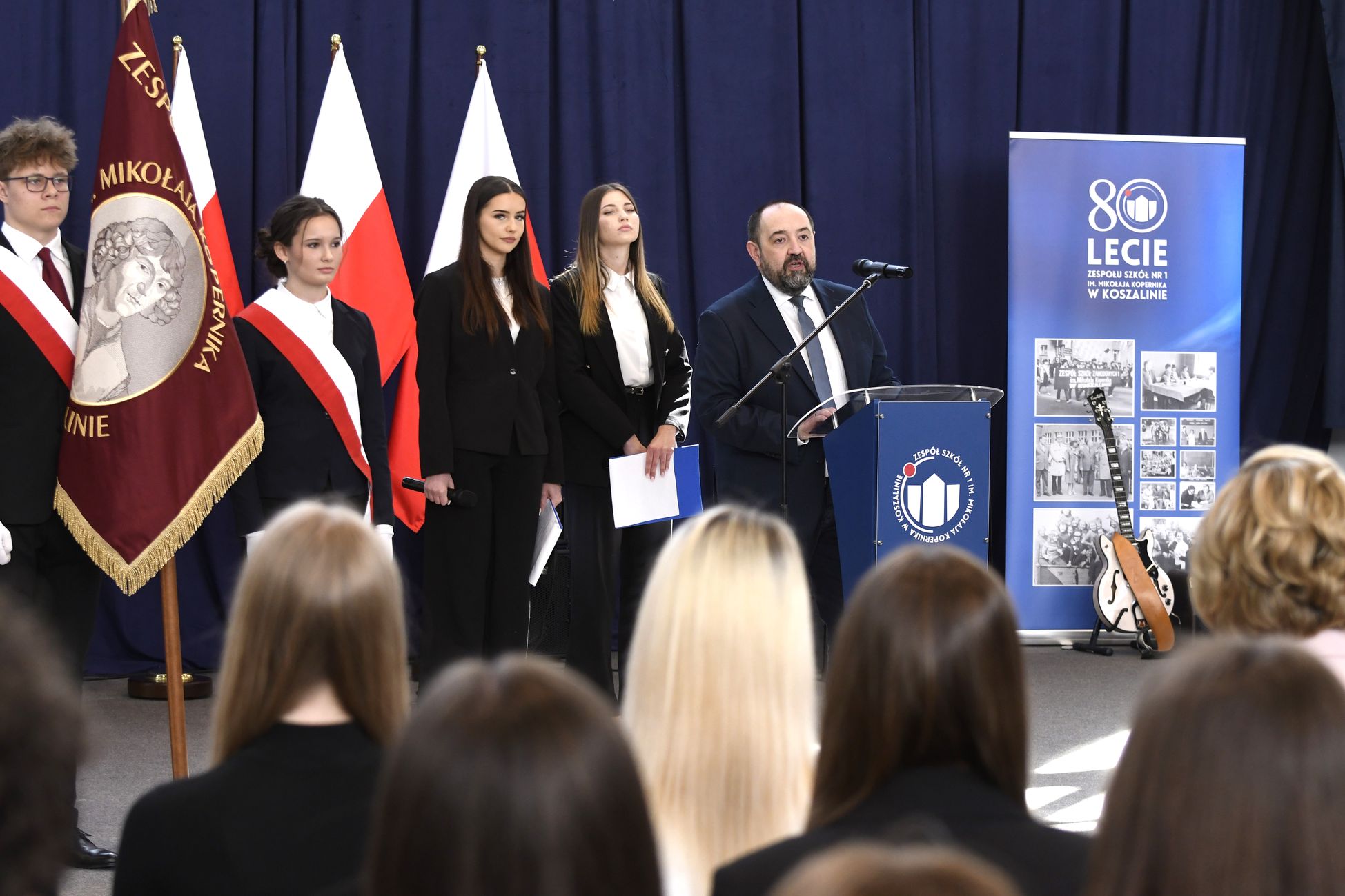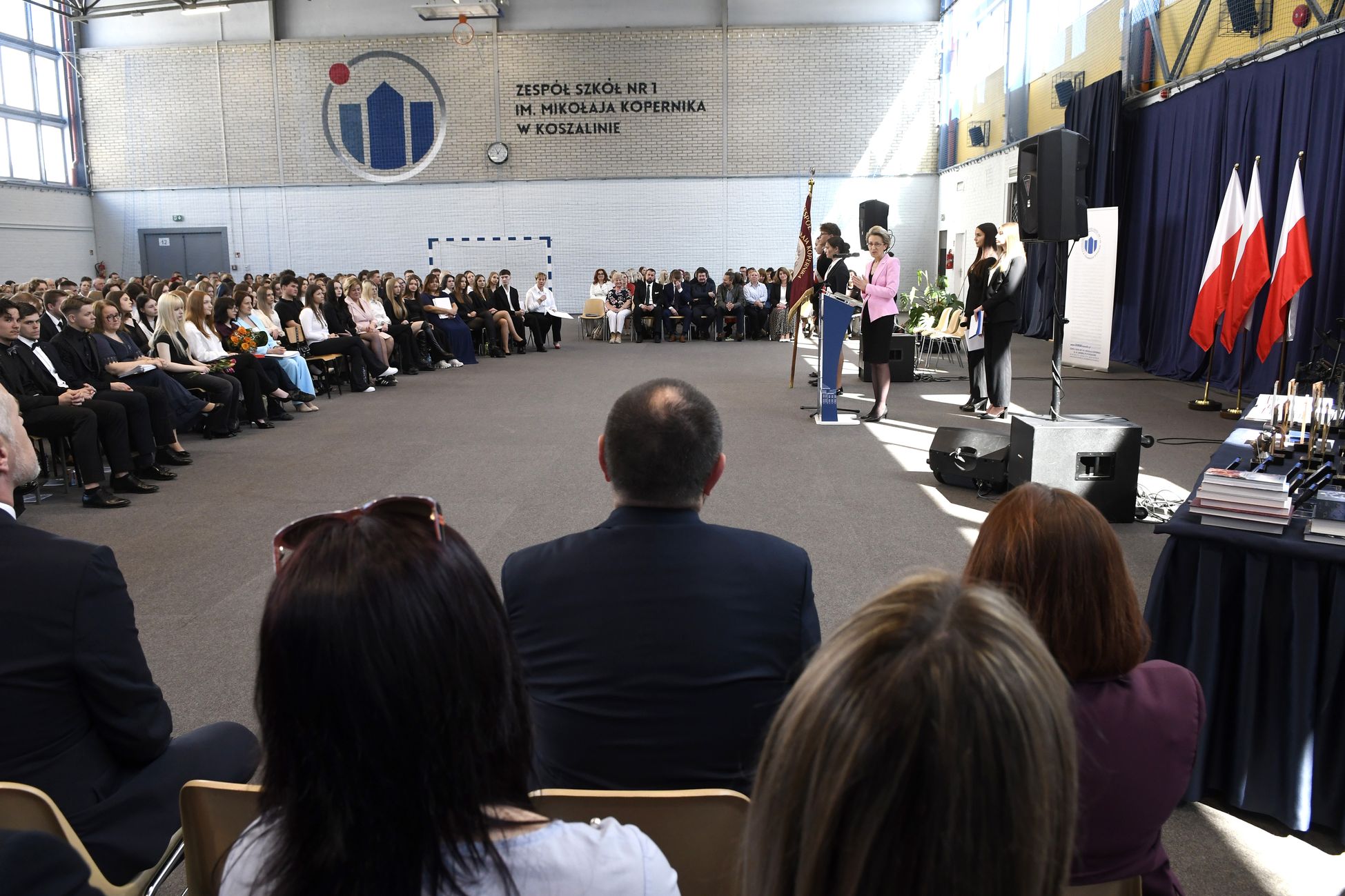 W piątek, 24 kwietnia, w siedzibie Zespołu Szkół nr 1 im. Mikołaja Kopernika w Koszalinie odbyła się uroczystość zakończenia roku szkolnego uczniów klas maturalnych. Dla absolwentów był to dzień szczególny, zamykający ważny etap nauki i otwierający drogę do kolejnych życiowych decyzji. Spotkaniu towarzyszyły emocje, wspomnienia oraz poczucie dumy z osiągniętych rezultatów. W wydarzeniu uczestniczyli tegoroczni maturzyści, dyrekcja szkoły, grono pedagogiczne, rodzice, zaproszeni goście. Obecni byli: rektor Politechniki Koszalińskiej dr hab. Danuta Zawadzka, prof. PK i Piotr Huzar, prezes Koszalińskiej Izby Przemysłowo-Handlowej i przewodniczący Rady Uczelni.