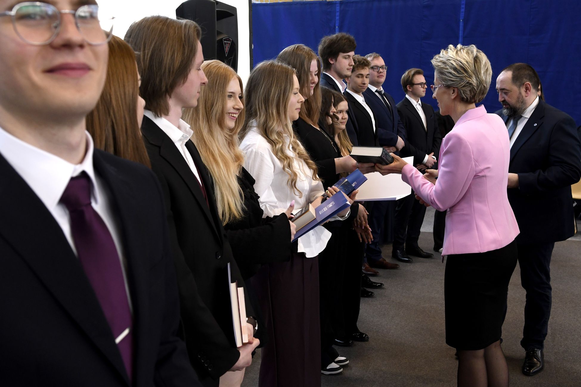 Podczas uroczystości wyróżniono uczniów osiągających bardzo dobre wyniki w nauce. Doceniono osoby, które z zaangażowaniem rozwijały zainteresowania, brały udział w konkursach przedmiotowych, olimpiadach i projektach edukacyjnych. Ich postawa była przykładem ambicji, pracowitości oraz konsekwencji w dążeniu do wyznaczonych celów. Nie zabrakło również miejsca na uhonorowanie młodzieży odnoszącej sukcesy sportowe.