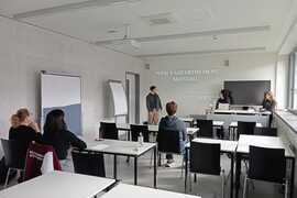 Zajęcia prowadzone były w formule warsztatowej, mgr Małgorzata Merkis i mgr Joanna Stankiewicz-Majkowska poprowadziły blok zajęć Multi-cultural Communication - Case Studies. Równolegle mgr Marzena Hus uczestniczyła w spotkaniach roboczych wspólnie z Juttą Helmus w LehrLernZentrum RheinMain oraz z kierowniczką centrum Louise Klein, co dodatkowo wzmacnia współpracę instytucjonalną i wymianę praktyk dydaktycznych.