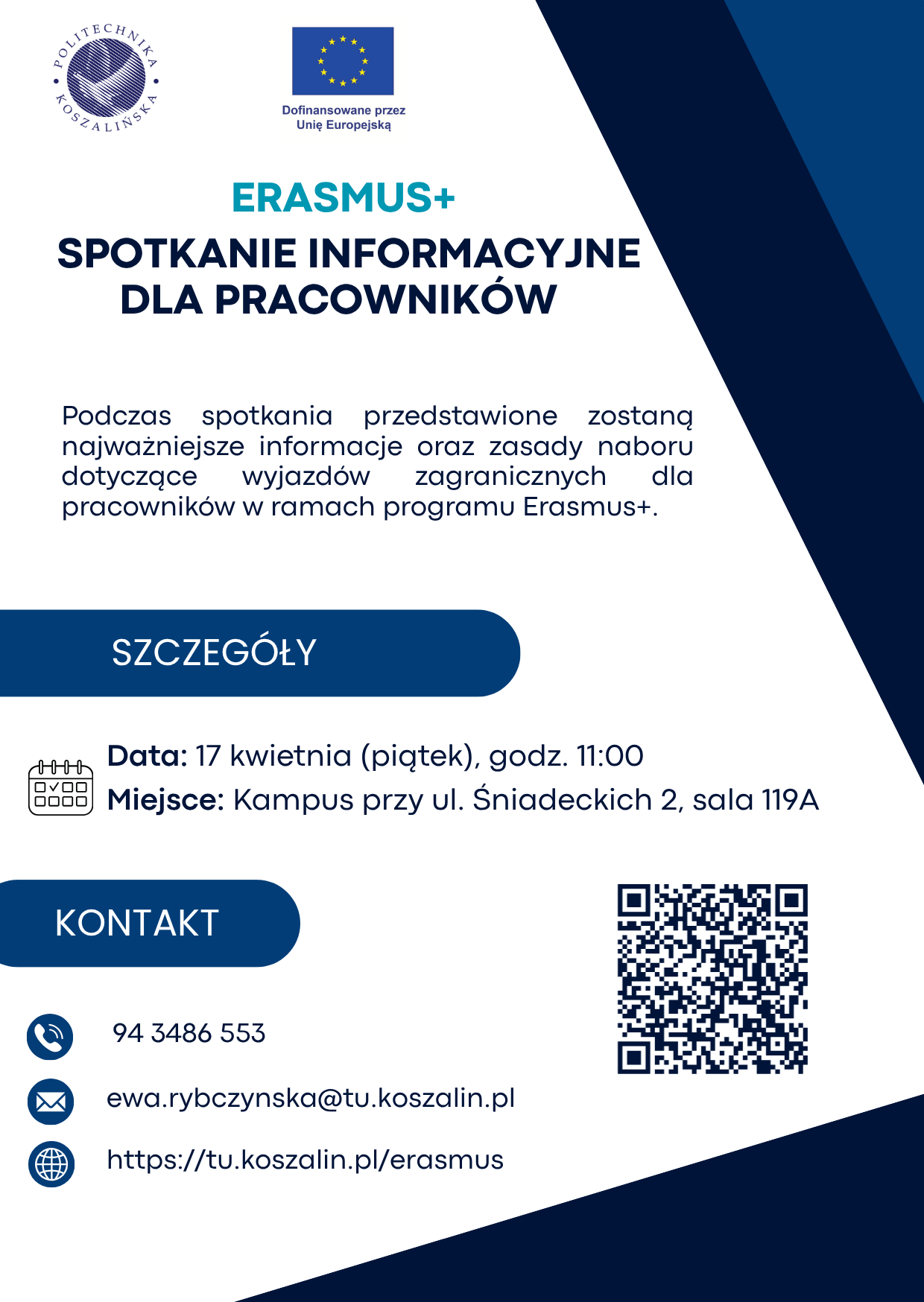 w związku z najnowszym naborem na wyjazdy zagraniczne dla pracowników uczelni w ramach programu Erasmus+, zapraszamy wszystkich zainteresowanych pracowników na spotkanie informacyjne, które odbędzie się 17 kwietnia (piątek) o godzinie 11:00 w kampusie przy ul. Śniadeckich - sala 119A.