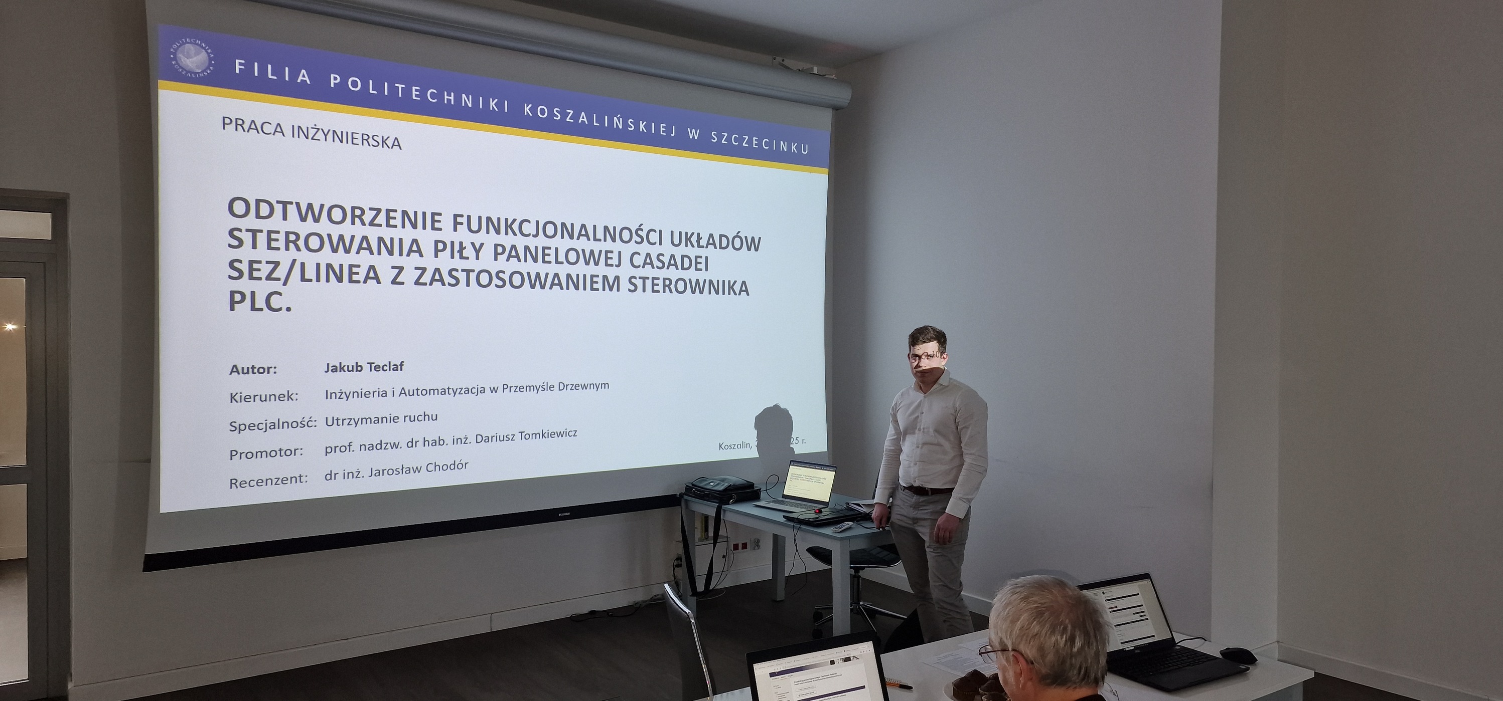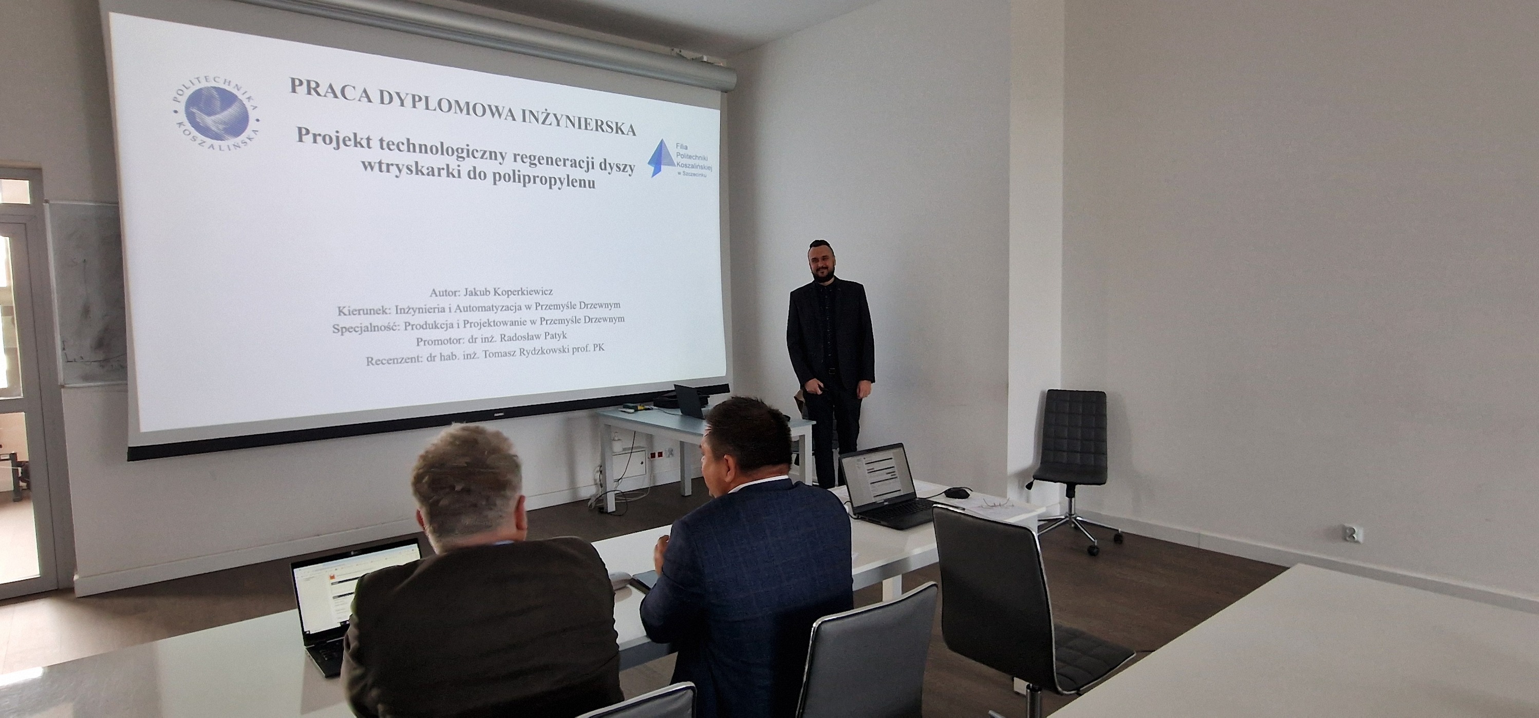 W dniach 17 i 30 października oraz 4 listopada w Filii Politechniki Koszalińskiej w Szczecinku odbyły się obrony prac dyplomowych studentów kierunku Inżynieria i Automatyzacja w Przemyśle Drzewnym. Absolwenci zaprezentowali wyniki swoich badań oraz projekty inżynierskie związane z nowoczesnymi technologiami stosowanymi w przemyśle drzewnym, automatyzacją procesów produkcyjnych i innowacyjnymi rozwiązaniami technicznymi. Komisje egzaminacyjne wysoko oceniły przygotowanie merytoryczne studentów oraz praktyczny charakter przedstawionych prac. Obrony stanowiły zwieńczenie kilkuletniego kształcenia, potwierdzając kompetencje absolwentów do podjęcia pracy w nowoczesnym sektorze przemysłu drzewnego.