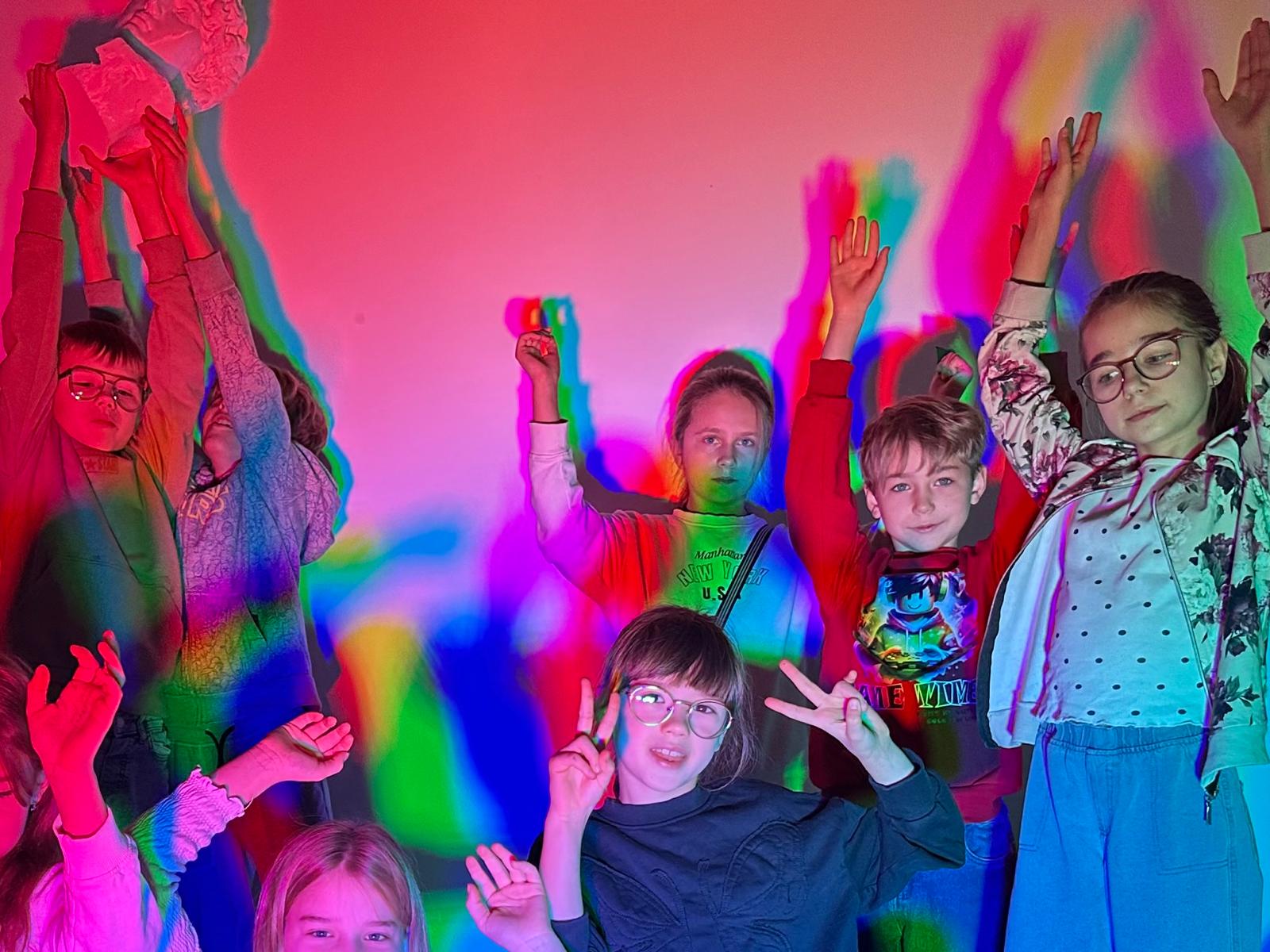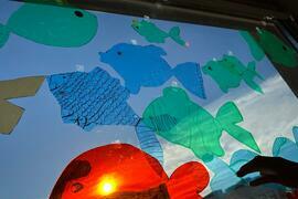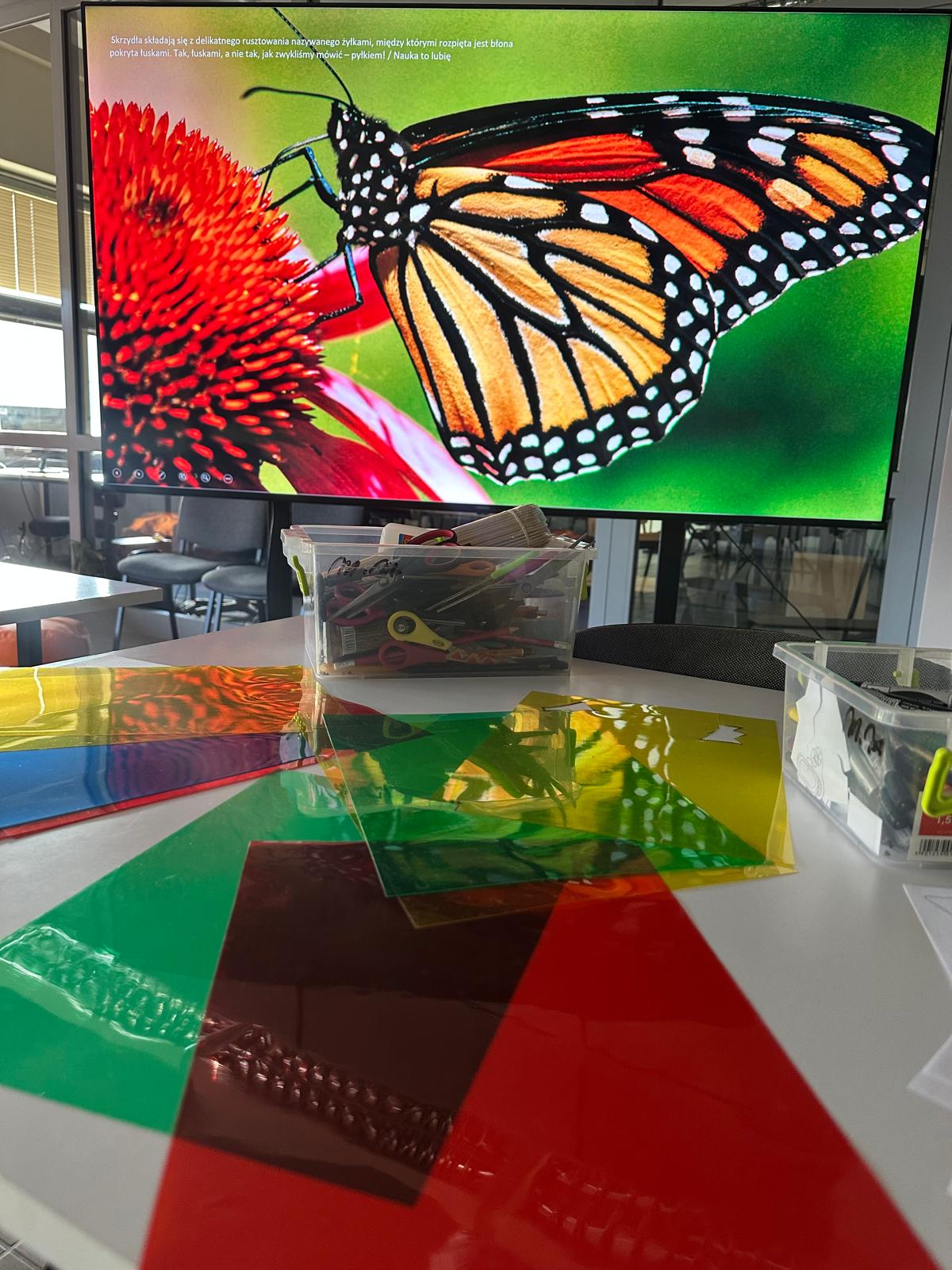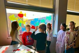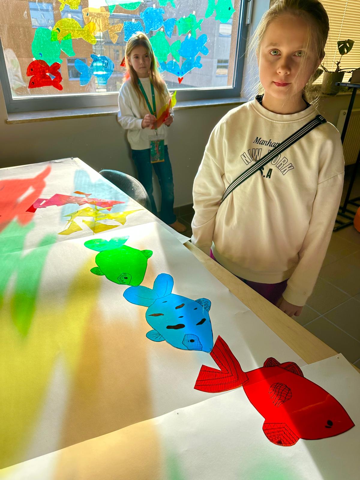 Dr Monika Madej z Katedry Architektury Wnętrz Wydziału Architektury i Wzornictwa, przygotowała warsztaty artystyczne - tworzenie witraży. Młodzi studenci przygotowali z kolorowych folii formy, które nakleili na oknie w pracowni. Mogli obserwować grę świateł i mieszania barw.