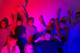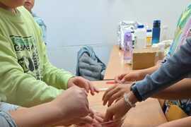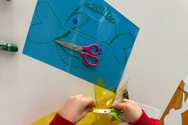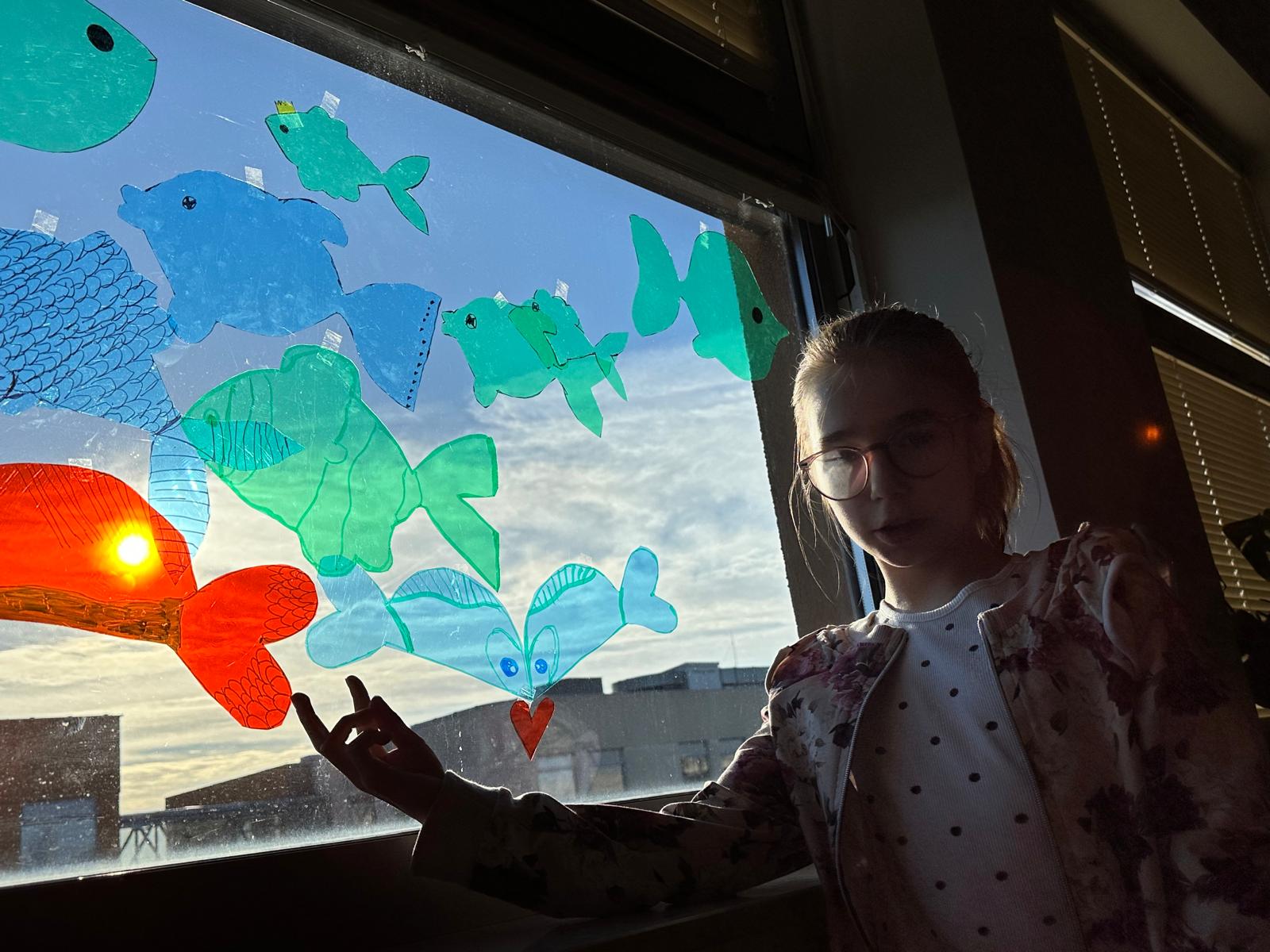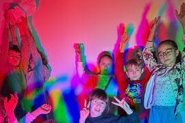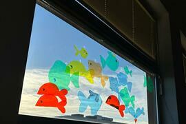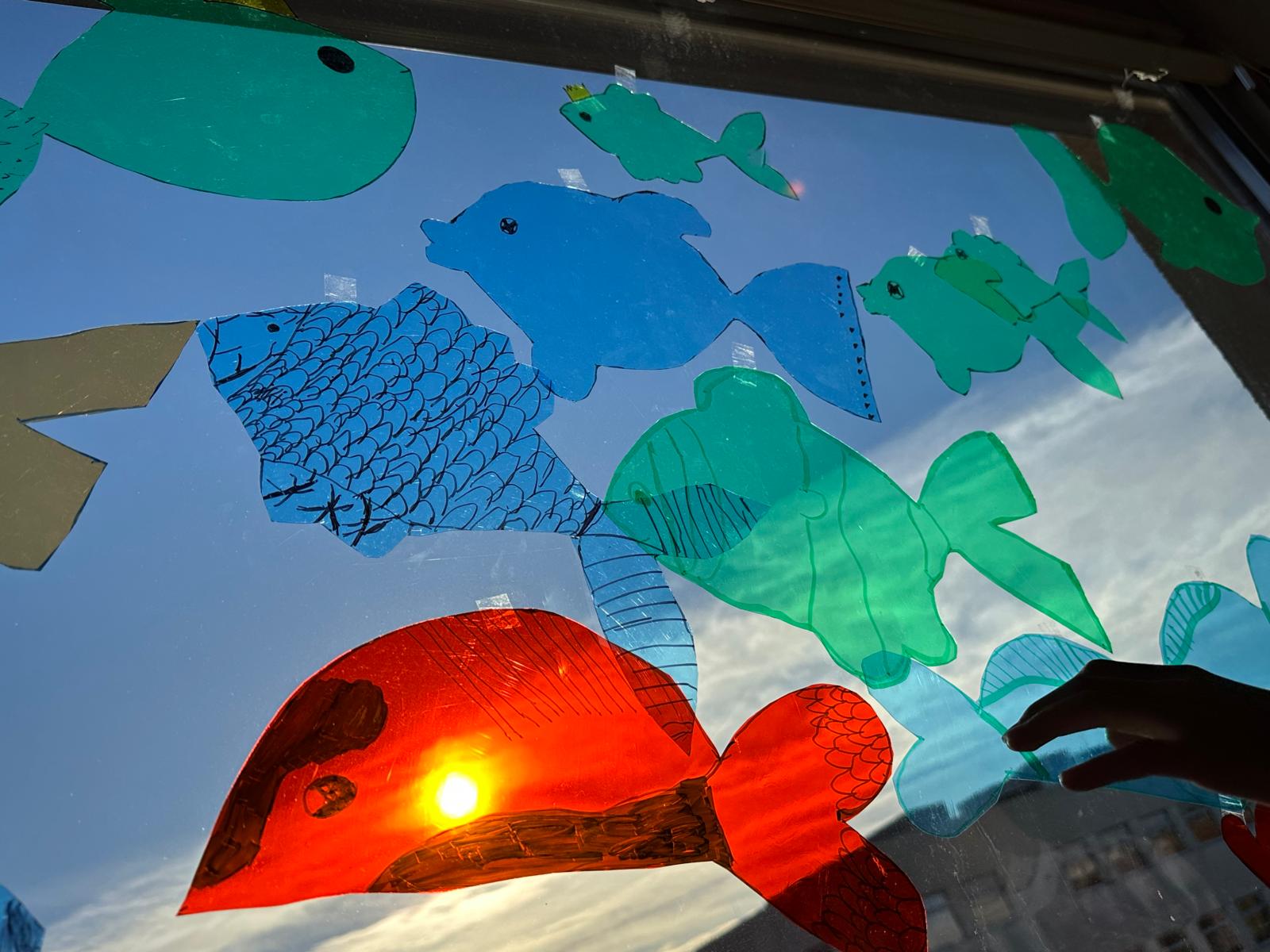 Dr Monika Madej z Katedry Architektury Wnętrz Wydziału Architektury i Wzornictwa, przygotowała warsztaty artystyczne - tworzenie witraży. Młodzi studenci przygotowali z kolorowych folii formy, które nakleili na oknie w pracowni. Mogli obserwować grę świateł i mieszania barw.